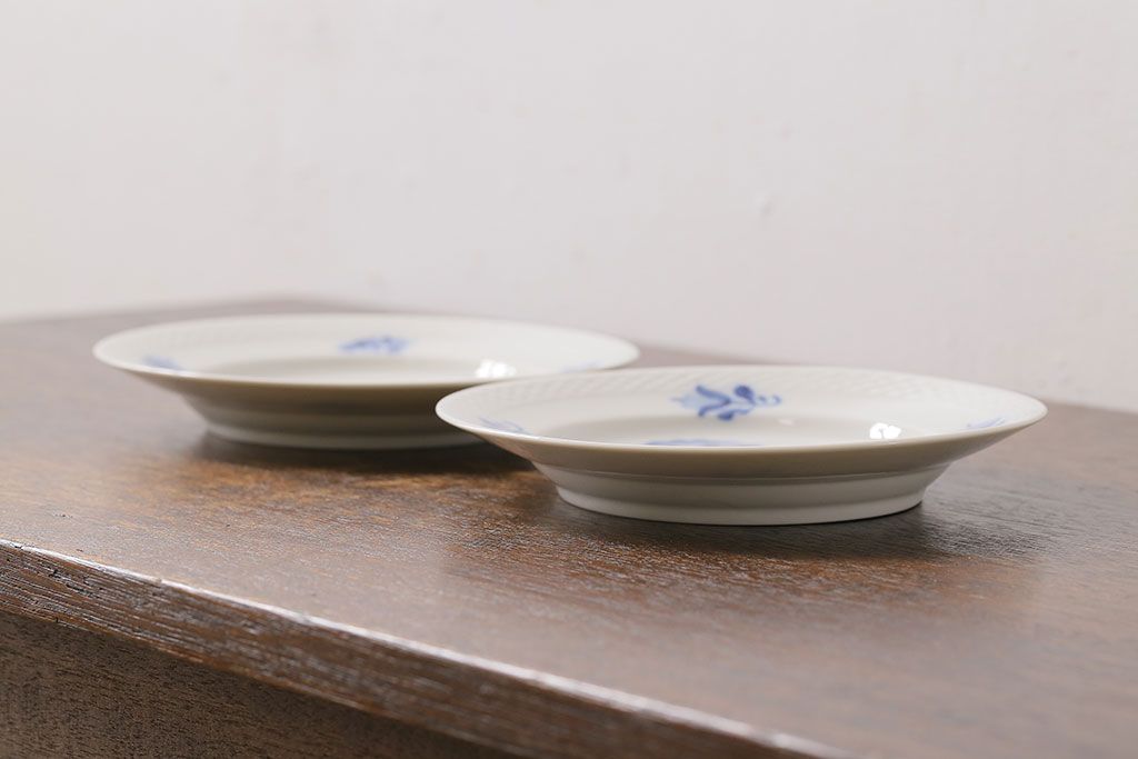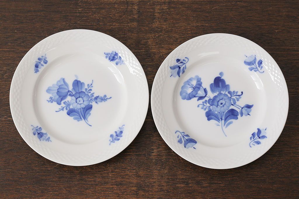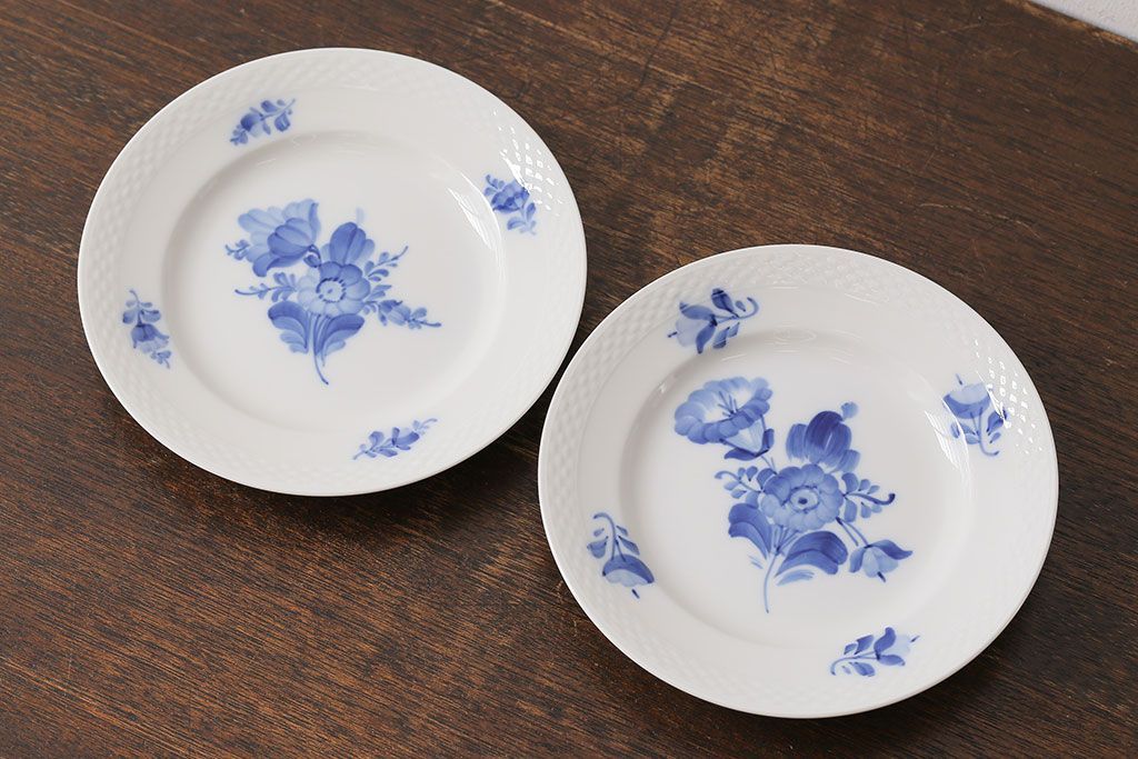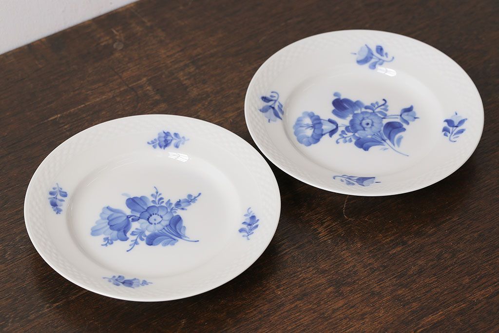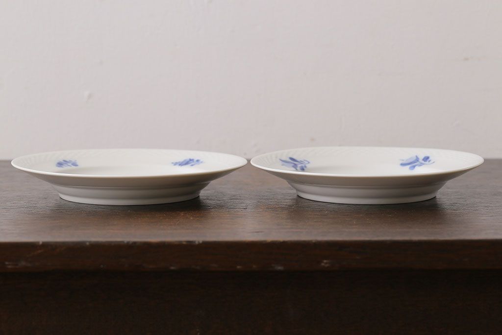 アンティーク雑貨 中古 ROYAL COPENHAGEN(ロイヤルコペンハーゲン) ブルーフラワー プレイン 17.5cmディーププレート(プレート、洋食器)2枚セット(1)