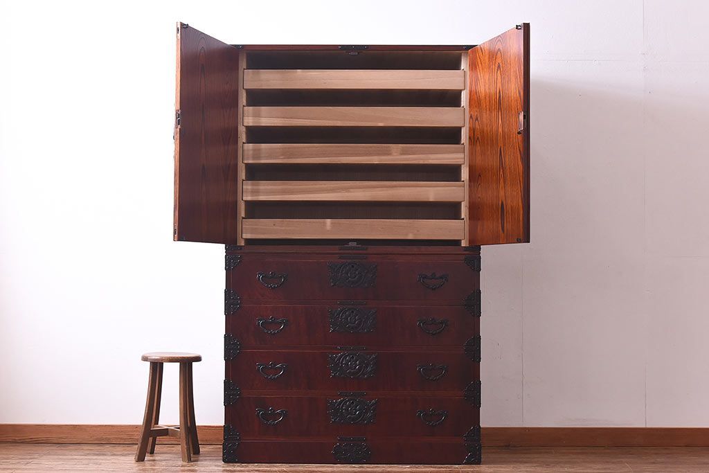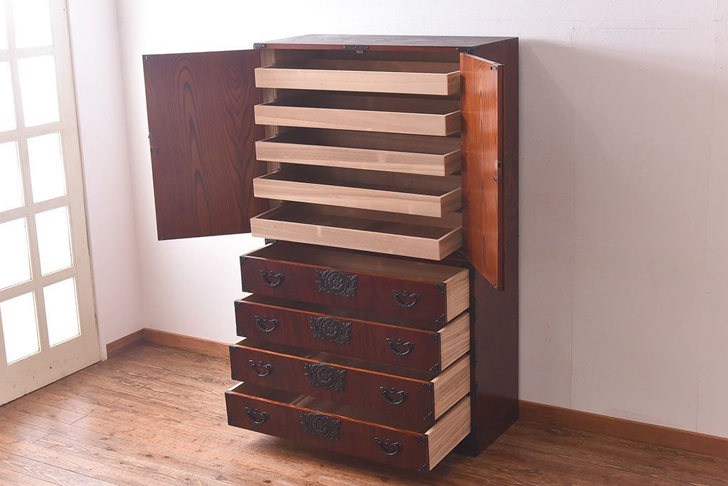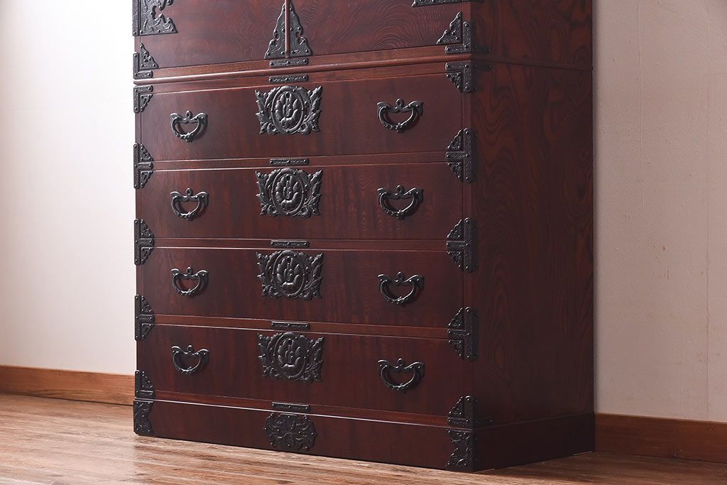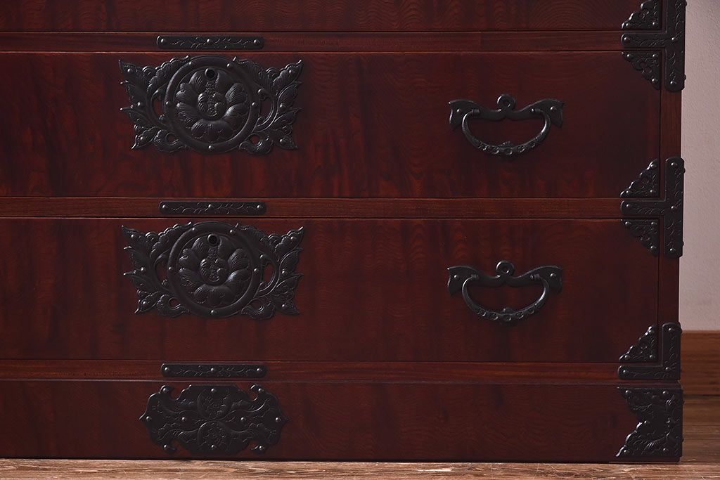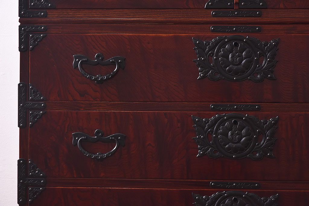 ラフジュ工房> 和箪笥> 衣装箪笥 > 中古 岩谷堂箪笥 開き牡丹・羽牡丹 みちのくA2型衣装箪笥(和タンス、整理箪笥)