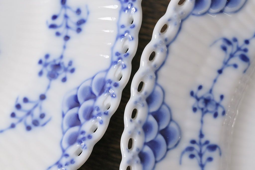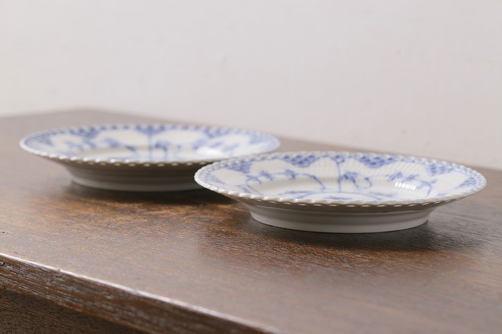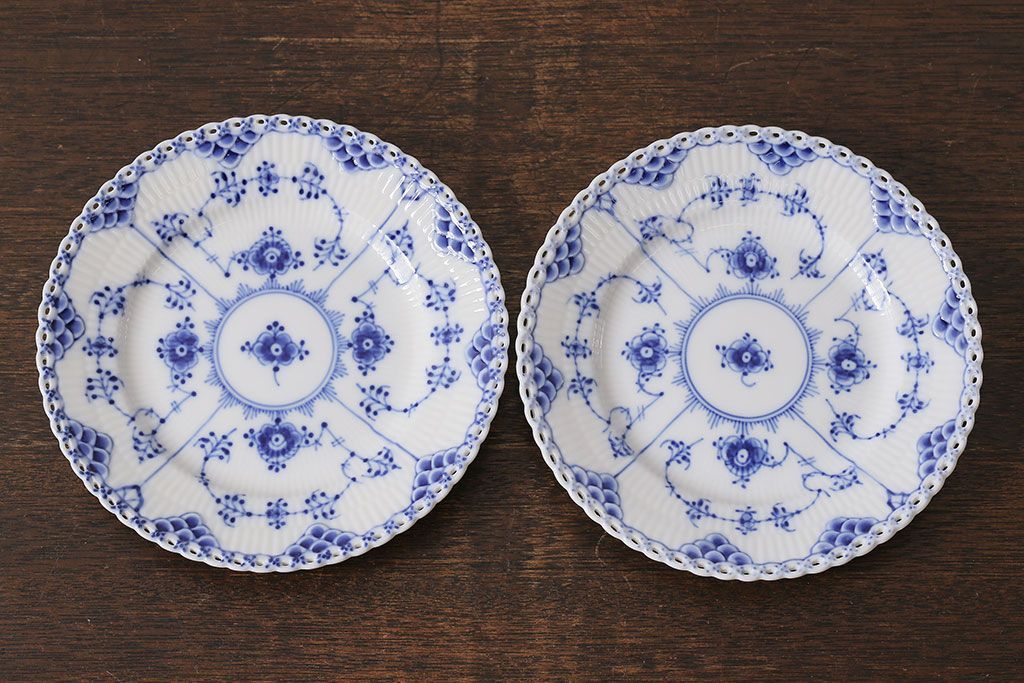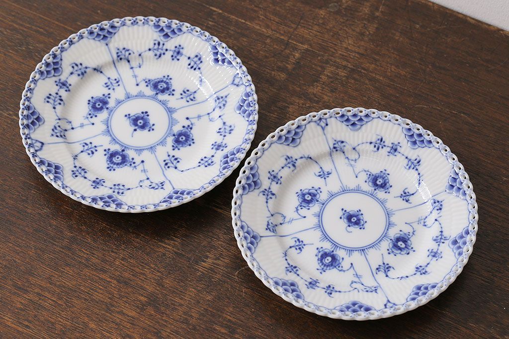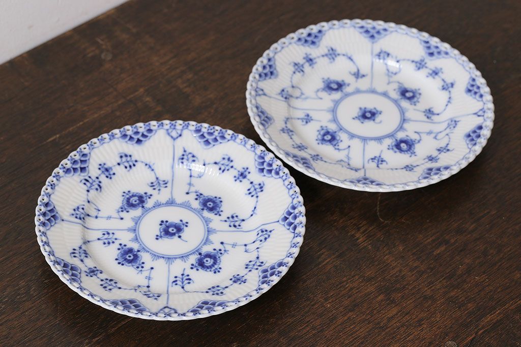 中古 ROYAL COPENHAGEN(ロイヤルコペンハーゲン) 17.5cm ブルーフルーテッドフルレース プレート2枚セット(洋食器)(定価約6万5千円)(1)