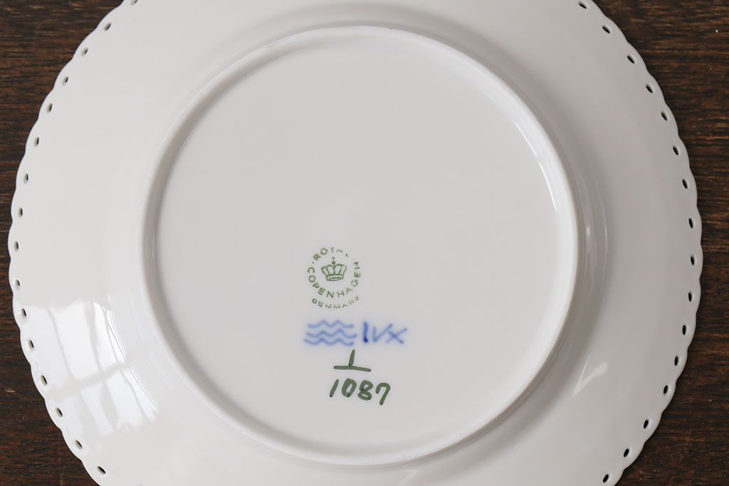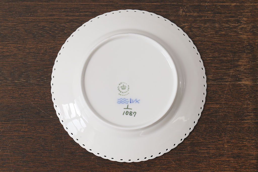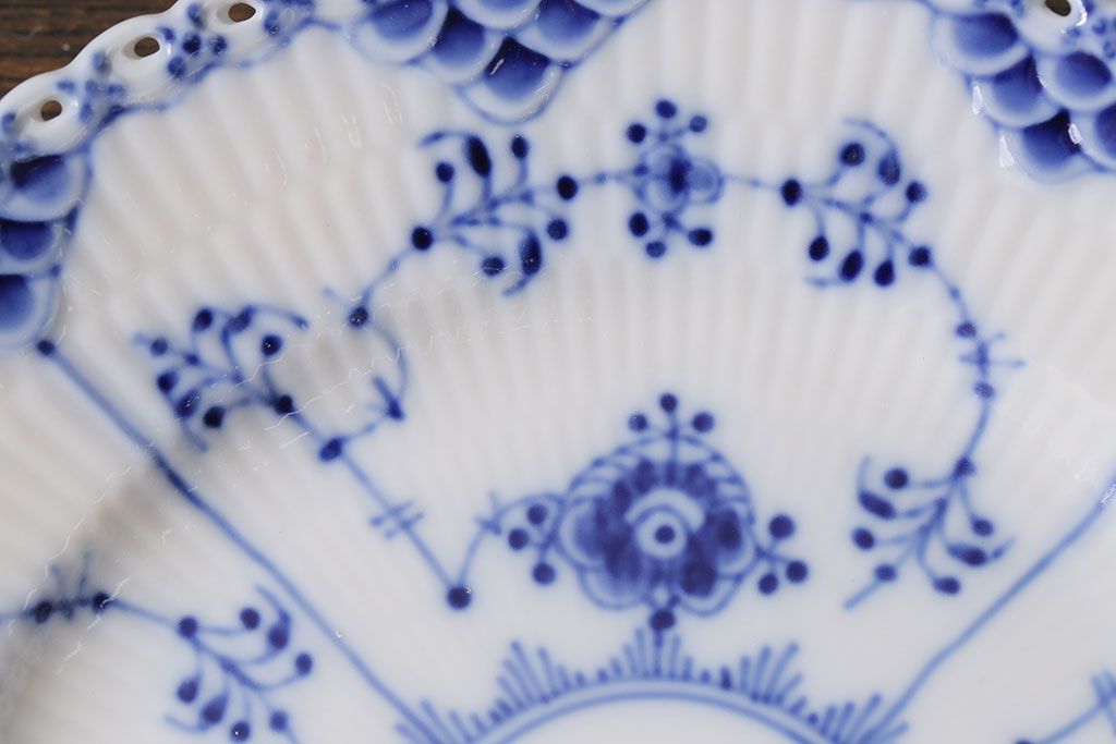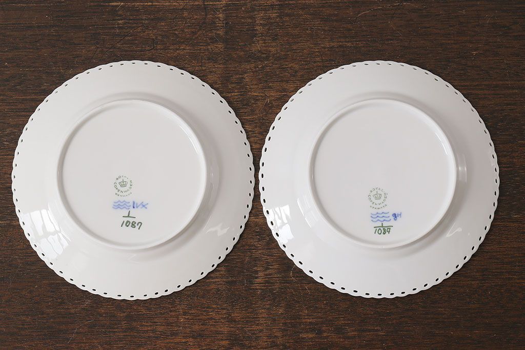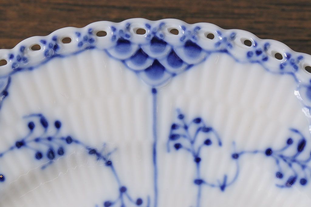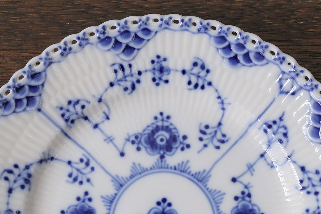 中古 ROYAL COPENHAGEN(ロイヤルコペンハーゲン) 17.5cm ブルーフルーテッドフルレース プレート2枚セット(洋食器)(定価約6万5千円)(1)