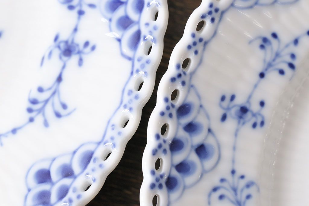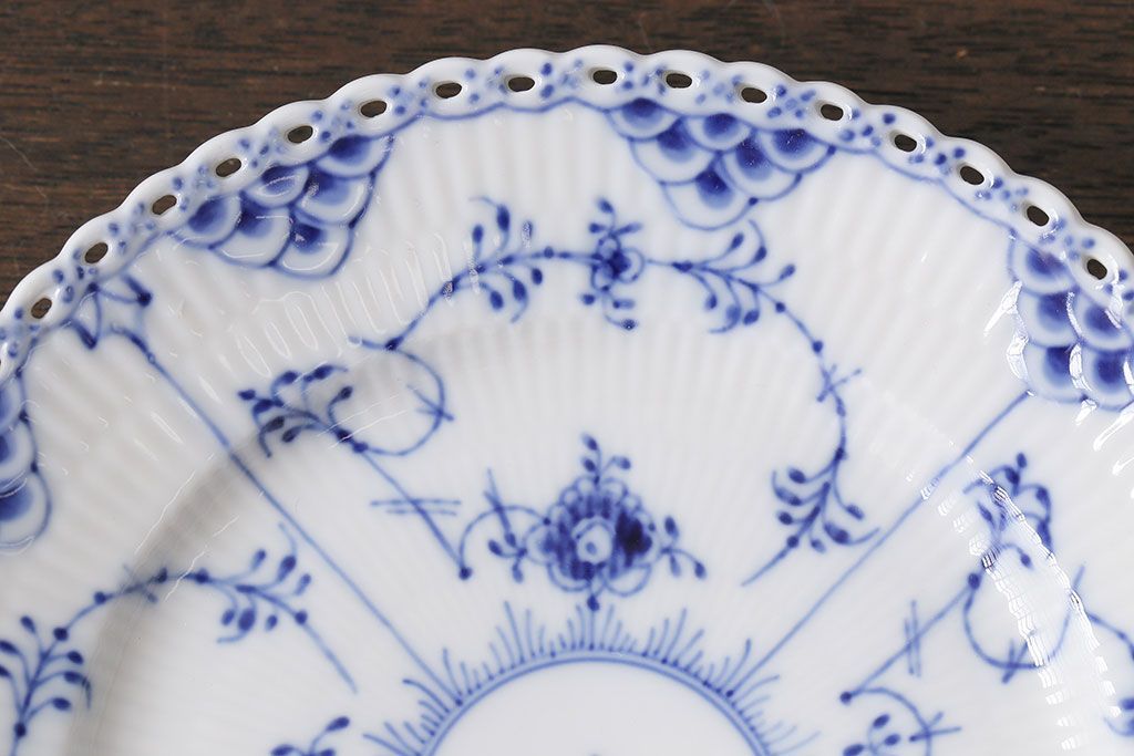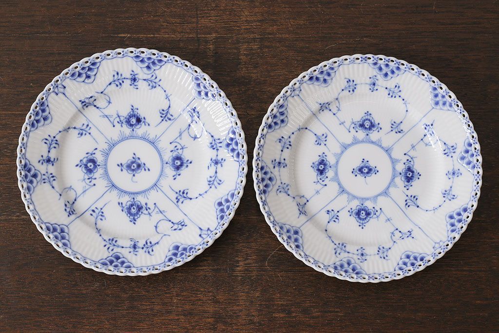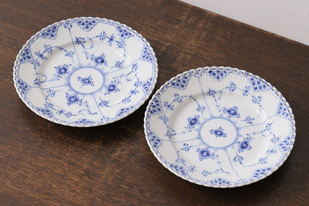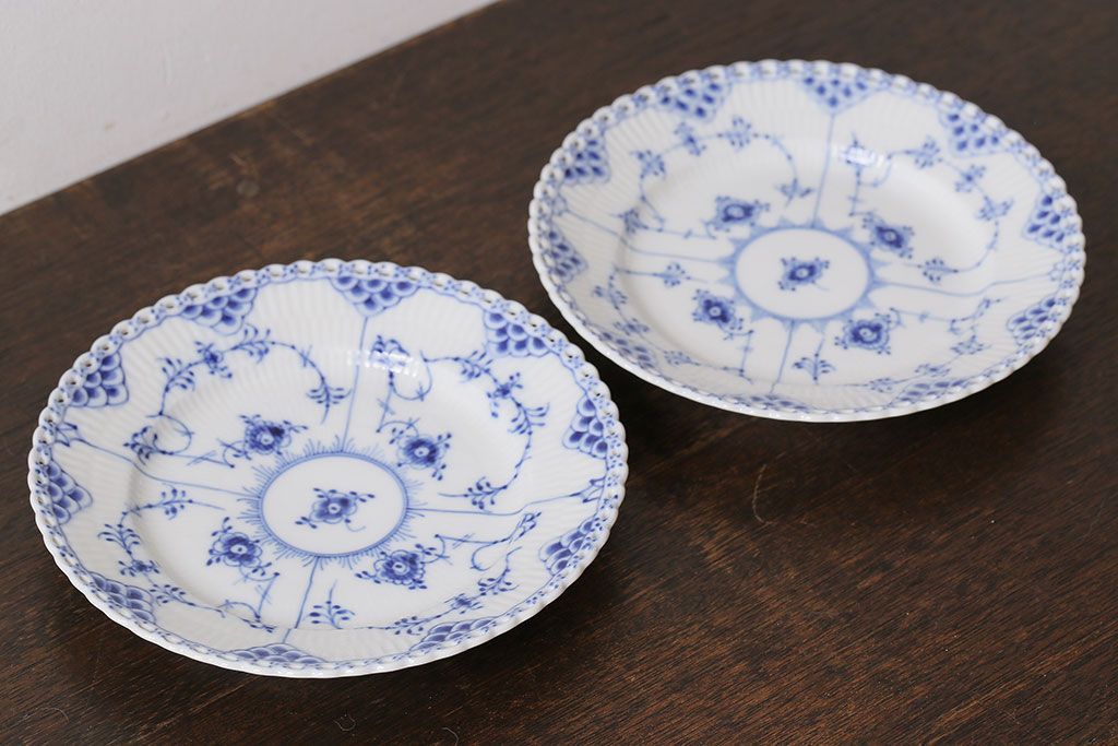 ラフジュ工房> 洋食器・キッチン用品> 皿・プレート > アンティーク雑貨 中古 ROYAL COPENHAGEN(ロイヤルコペンハーゲン) ブルーフルーテッド フルレース 19.5cmディーププレート2枚セット(プレート、洋食器)(定価約6万5千円)(1)