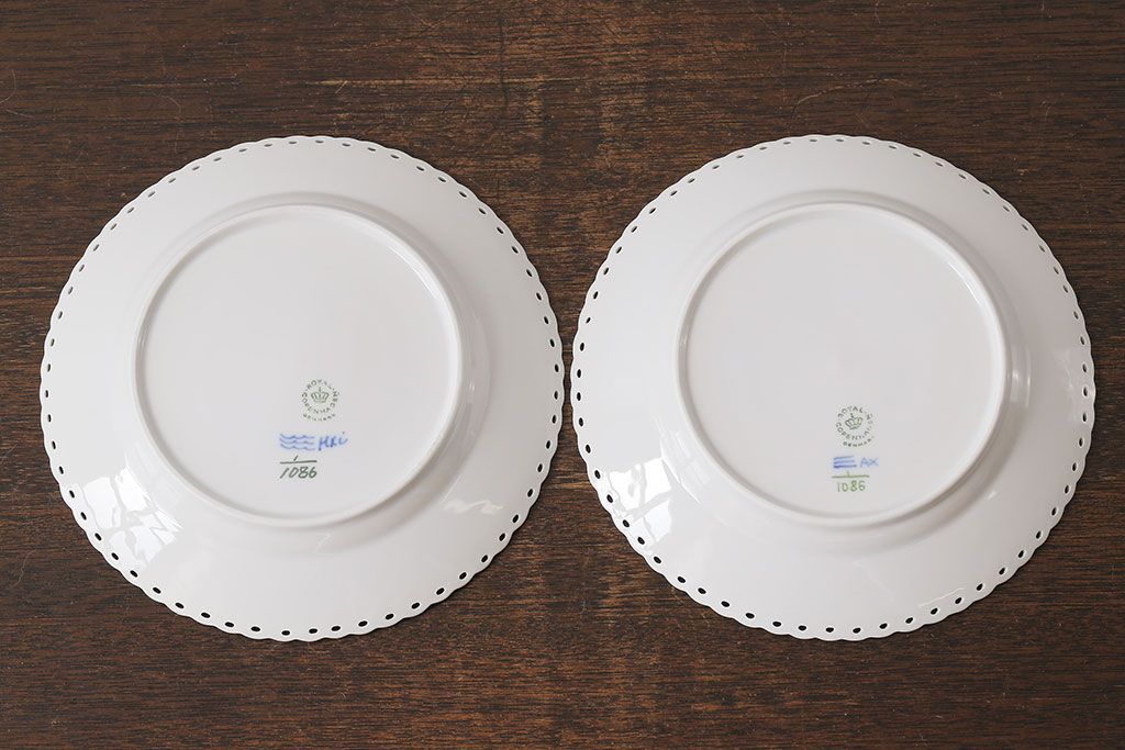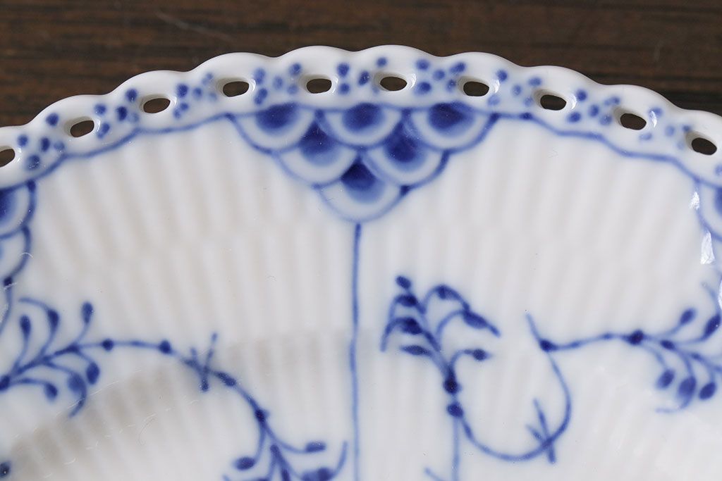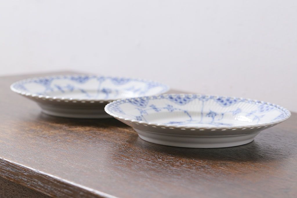 アンティーク雑貨 中古 ROYAL COPENHAGEN(ロイヤルコペンハーゲン) ブルーフルーテッド フルレース 19.5cmディーププレート2枚セット(プレート、洋食器)(定価約6万5千円)(1)