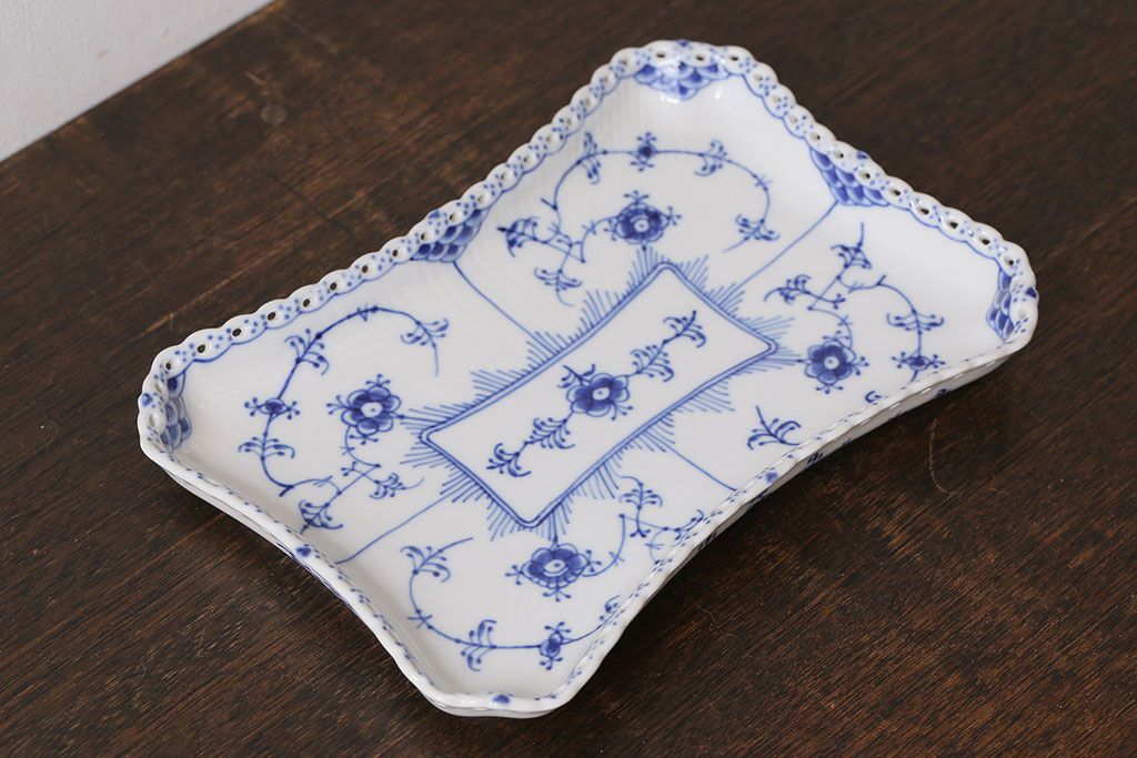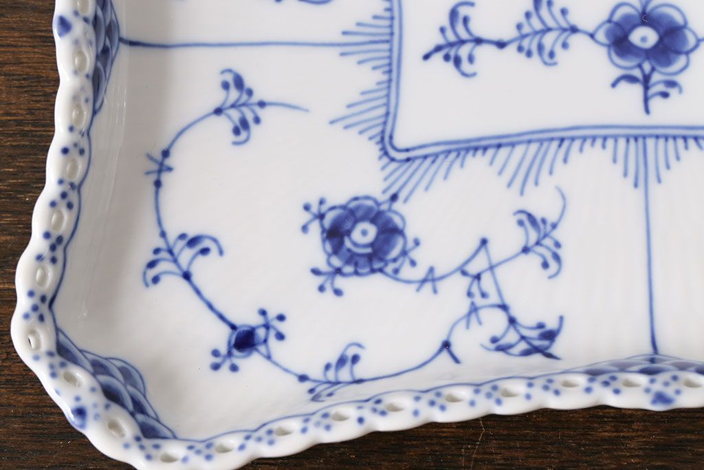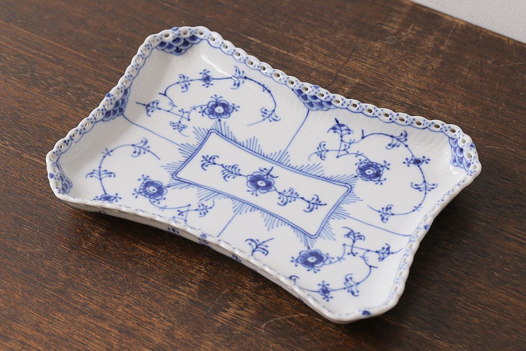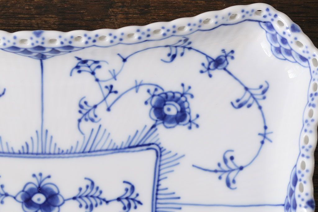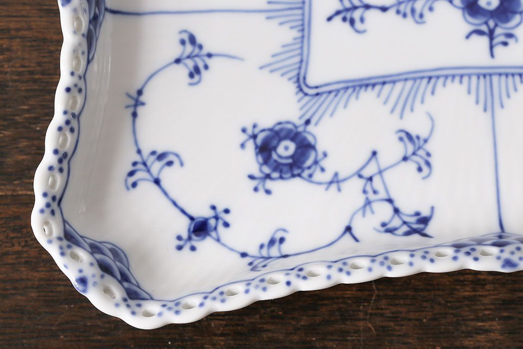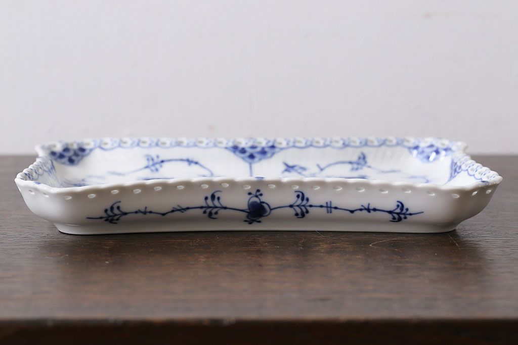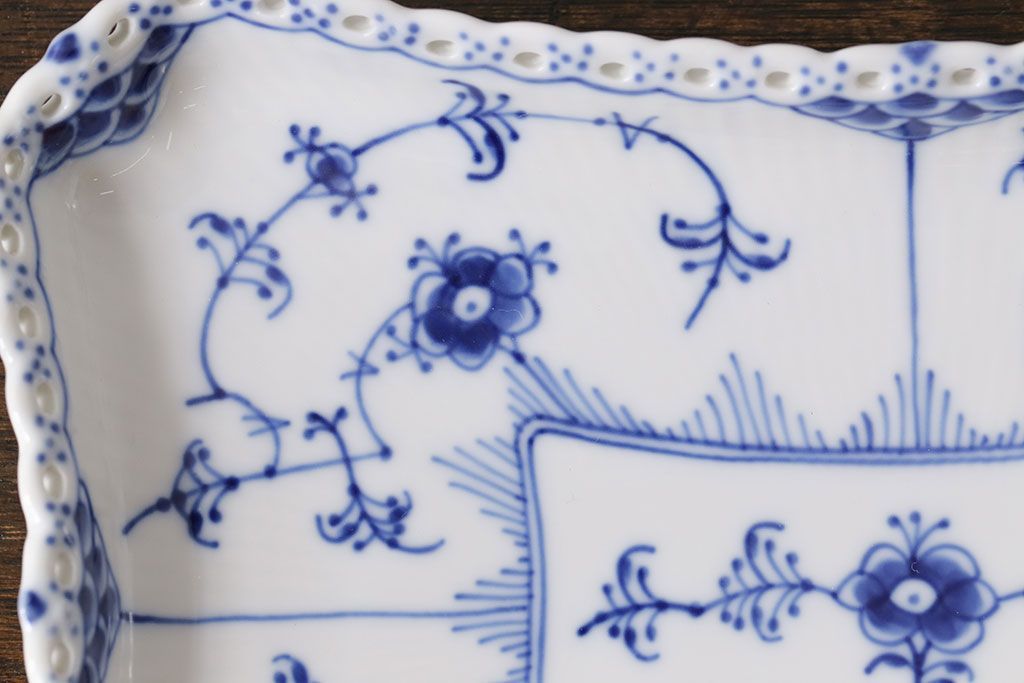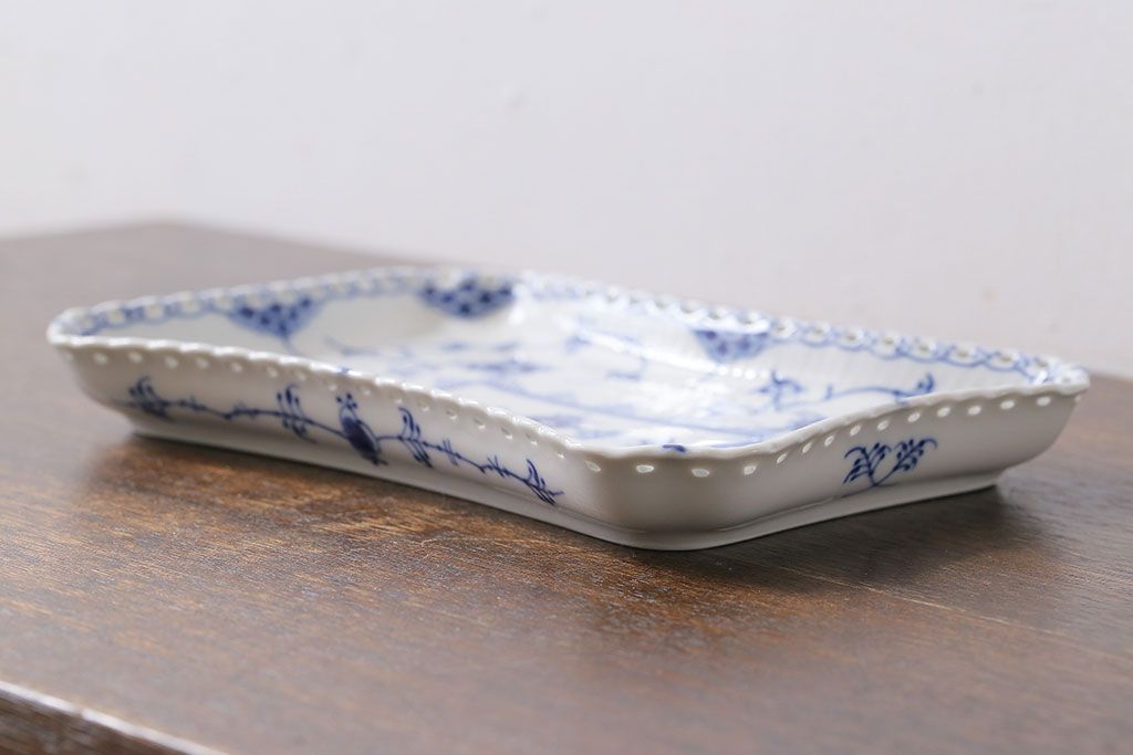 アンティーク雑貨 中古 ROYAL COPENHAGEN(ロイヤルコペンハーゲン) ブルーフルーテッド フルレース スクエアプレート(トレイ、洋食器)(定価約4万8千円)(2)