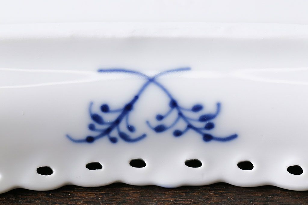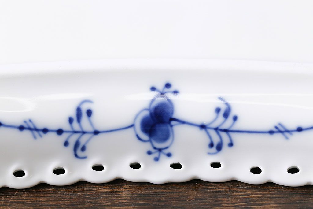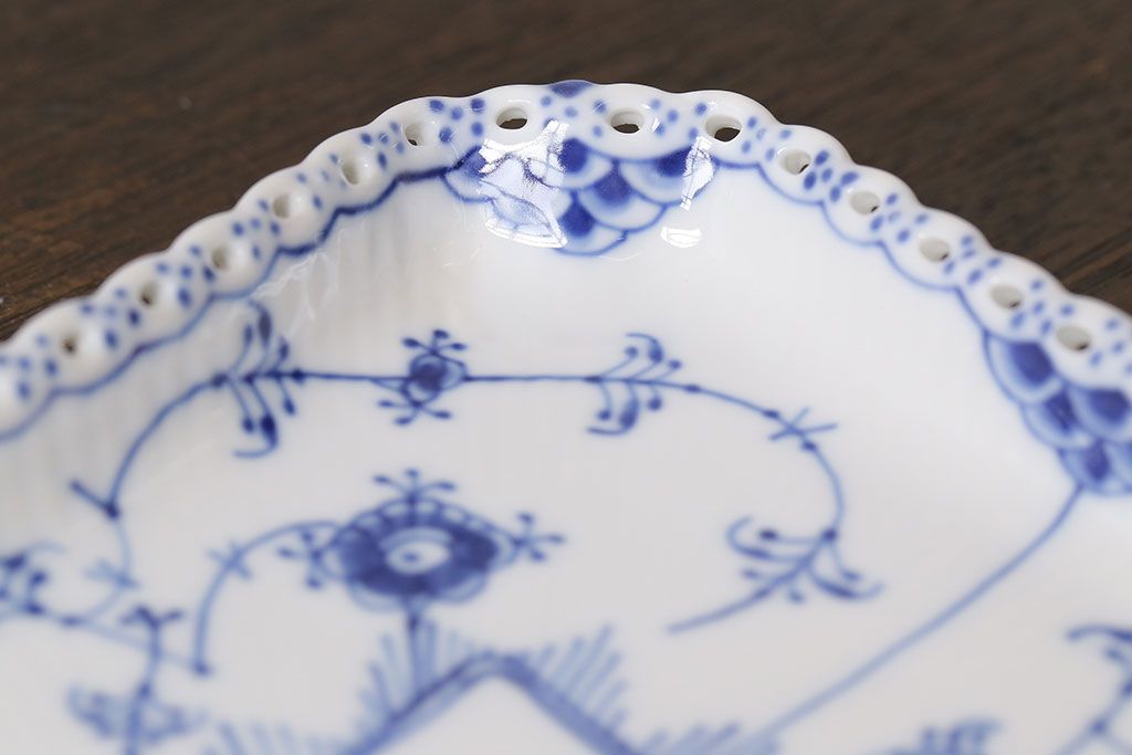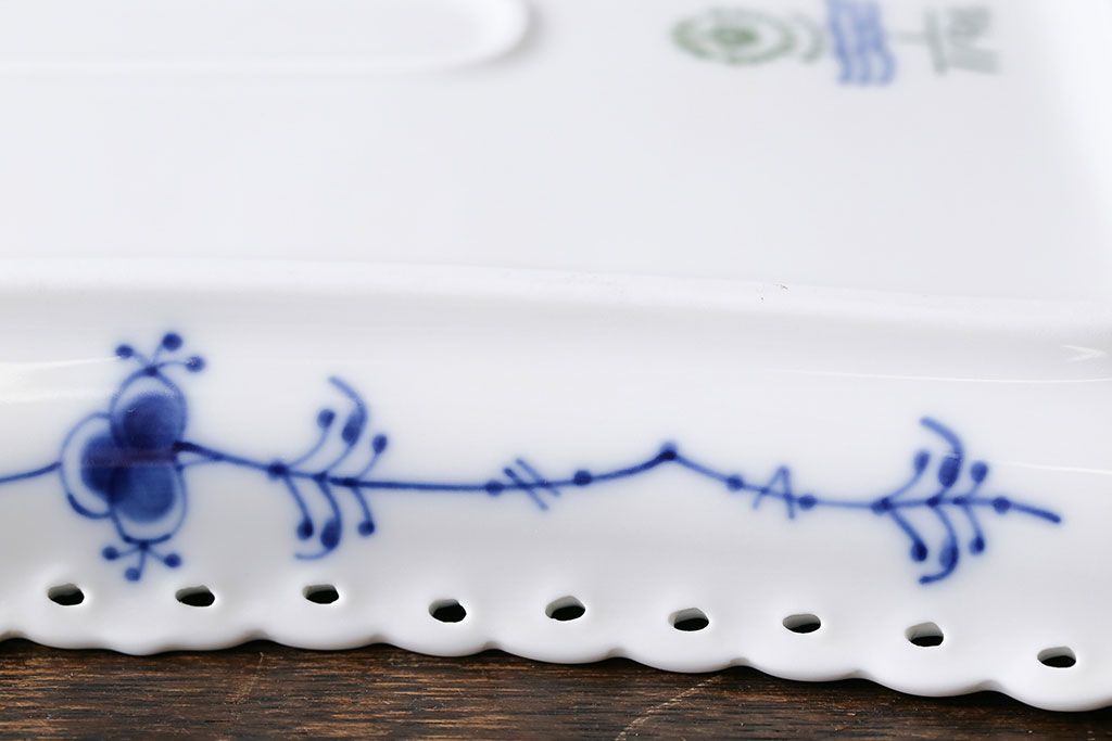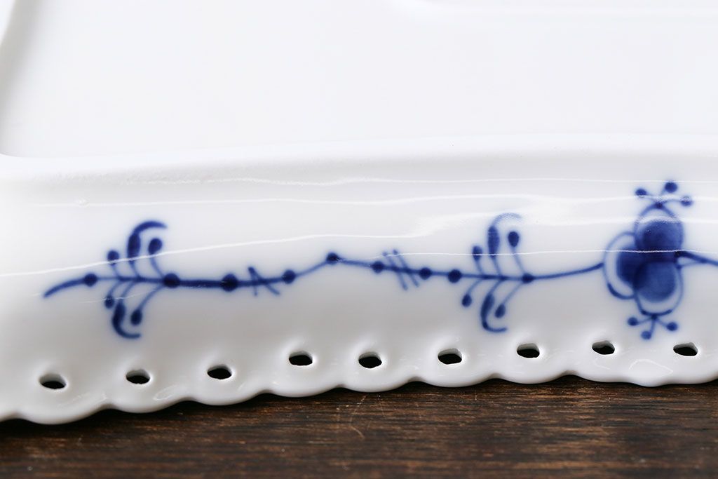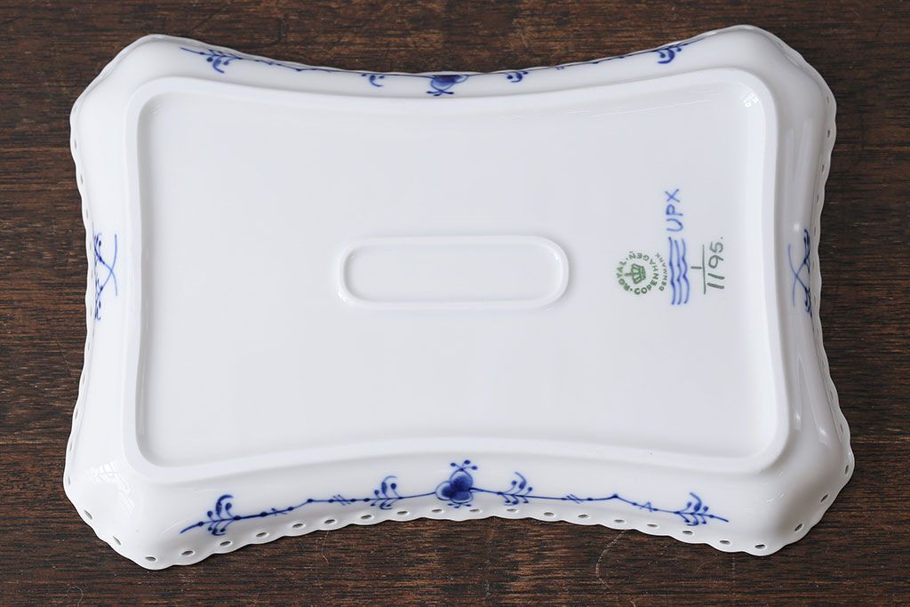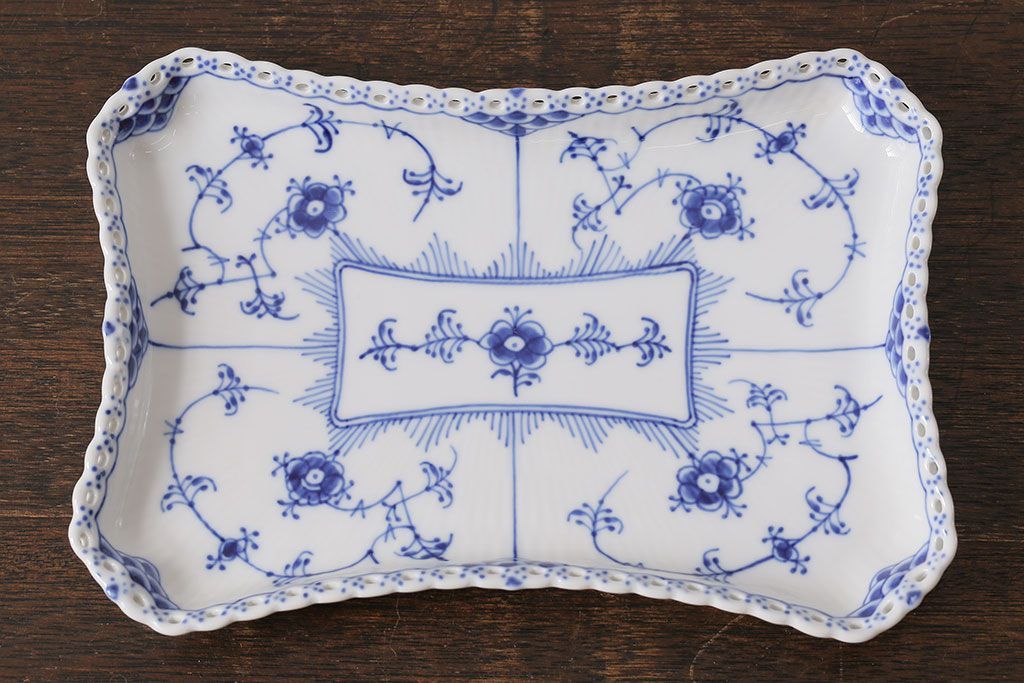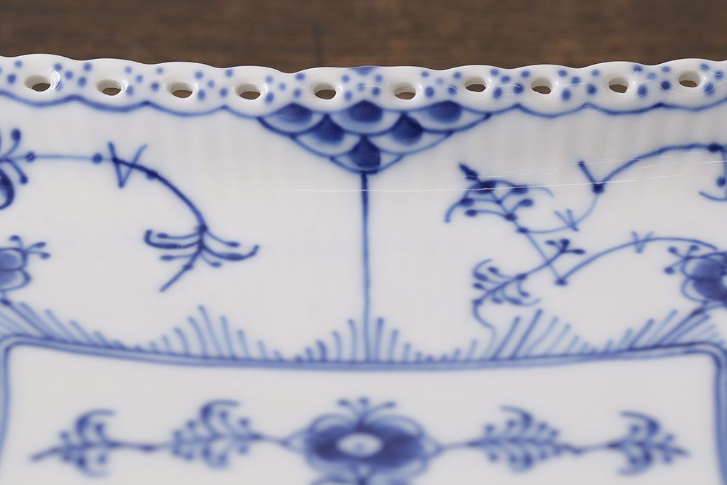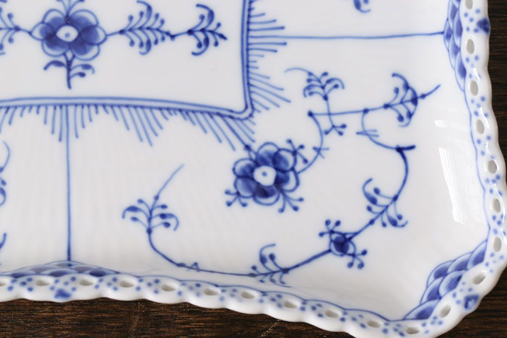 アンティーク雑貨 中古 ROYAL COPENHAGEN(ロイヤルコペンハーゲン) ブルーフルーテッド フルレース スクエアプレート(トレイ、洋食器)(定価約4万8千円)(2)