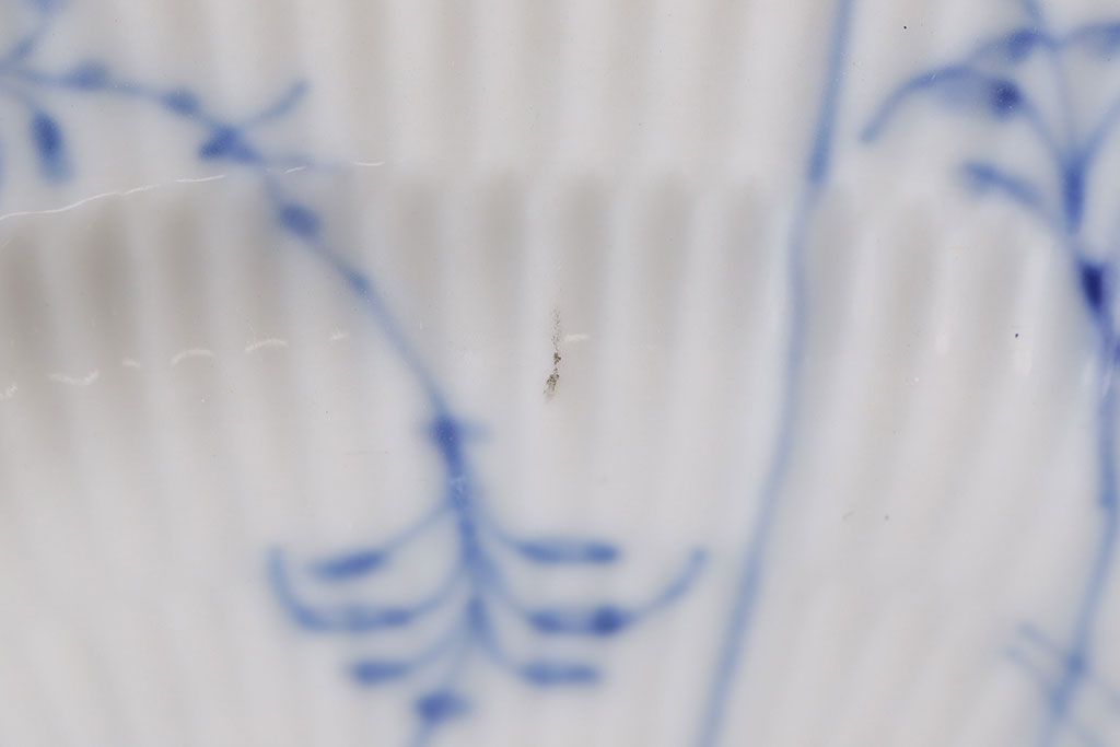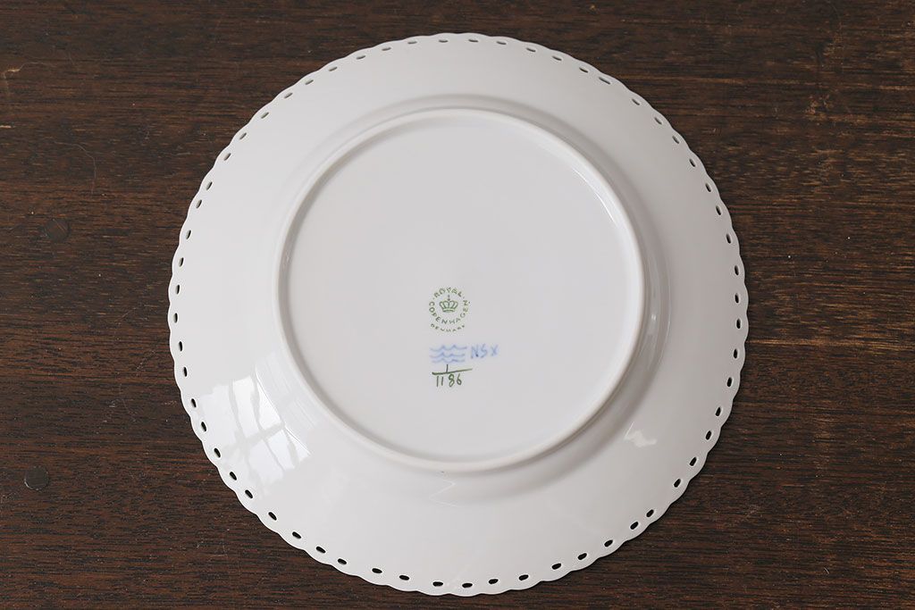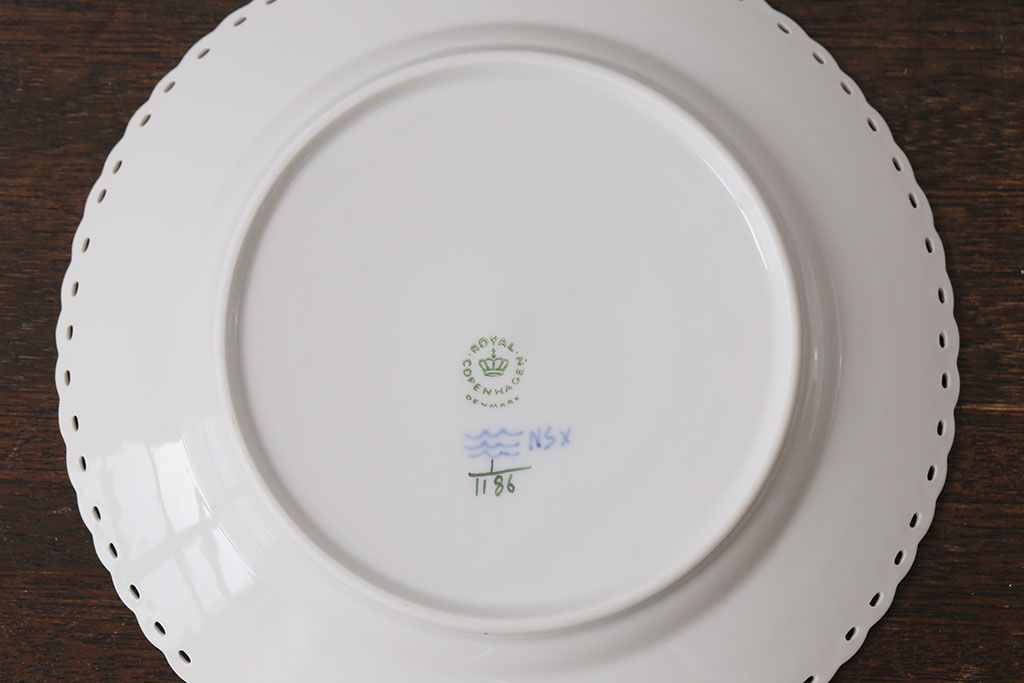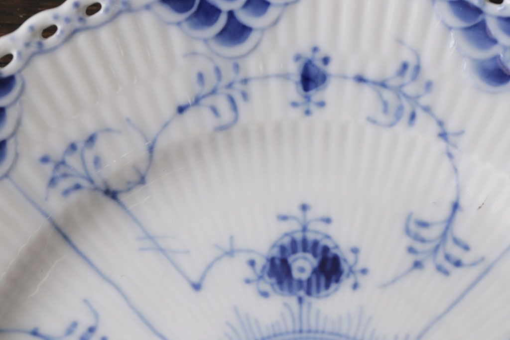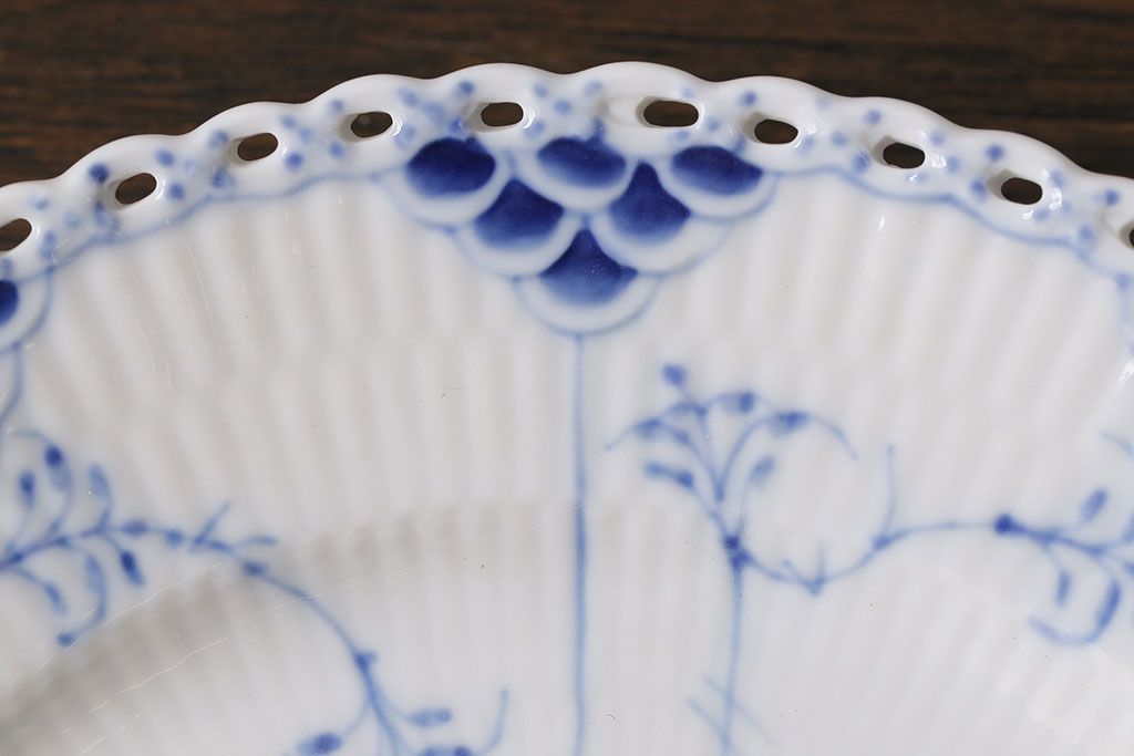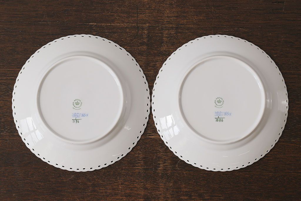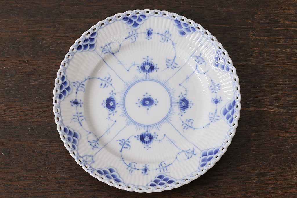 アンティーク雑貨 中古 ROYAL COPENHAGEN(ロイヤルコペンハーゲン) ブルーフルーテッド フルレース 19.5cmプレート2枚セット(ディーププレート、洋食器)(定価約6万5千円)(2)