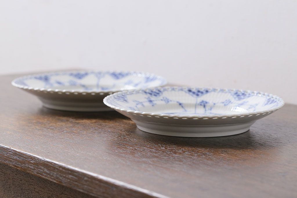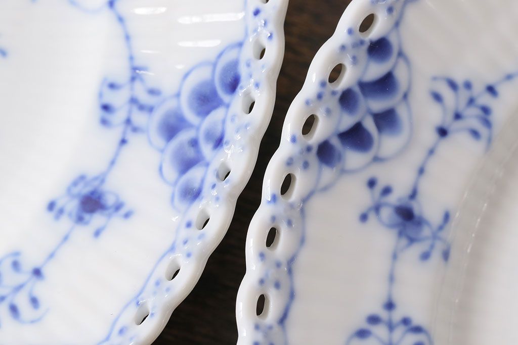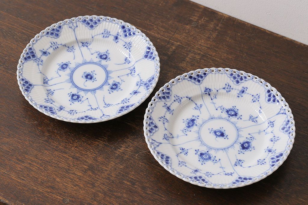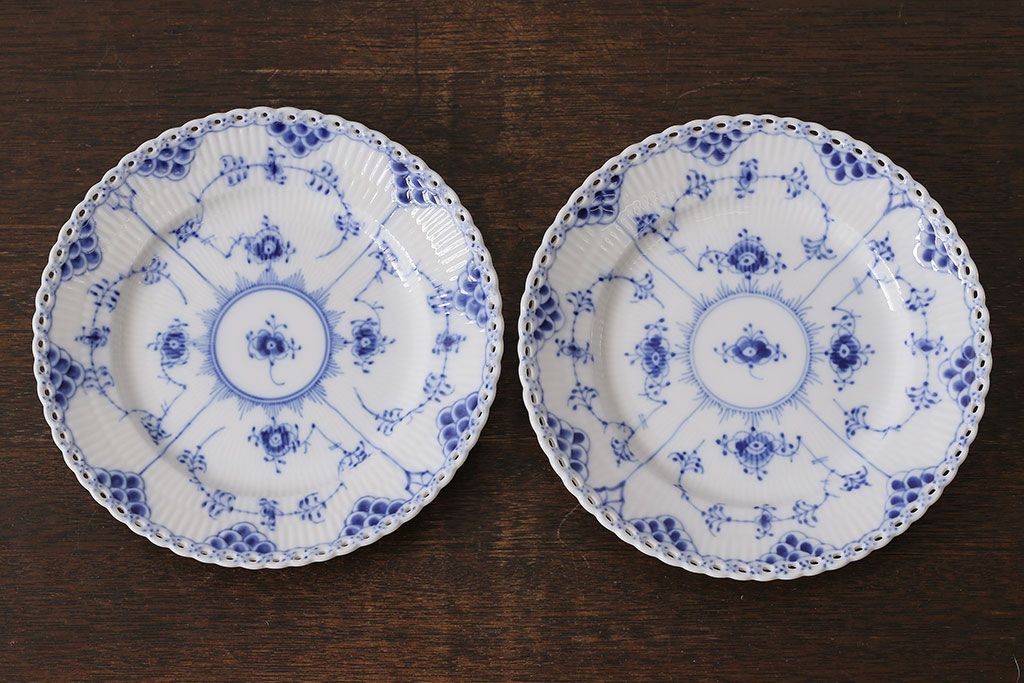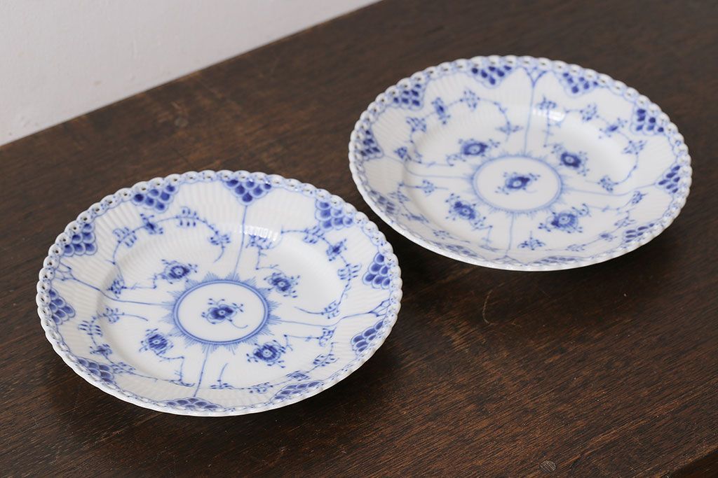 中古 ROYAL COPENHAGEN(ロイヤルコペンハーゲン) ブルーフルーテッド フルレース 19.5cmプレート2枚セット(洋食器)(定価約6万5千円)(3)