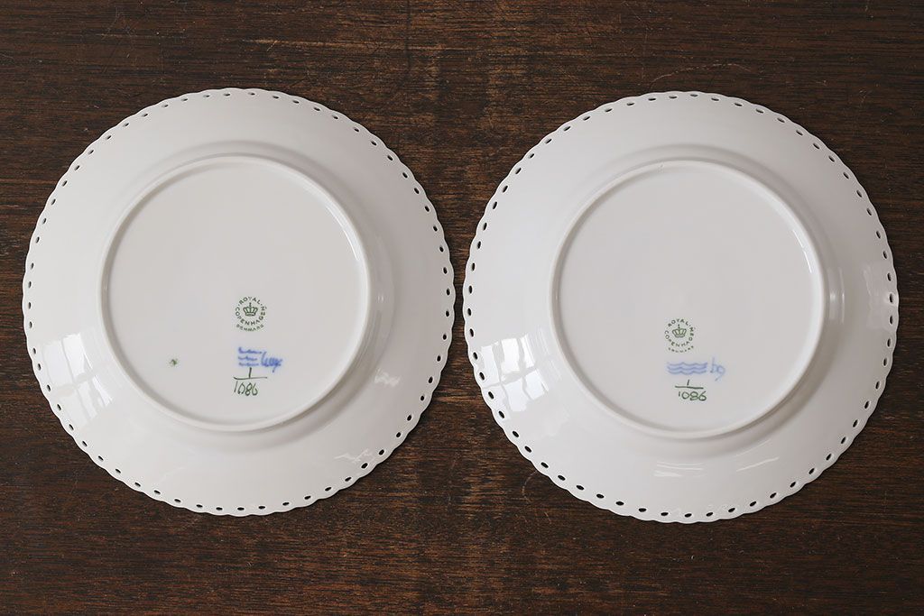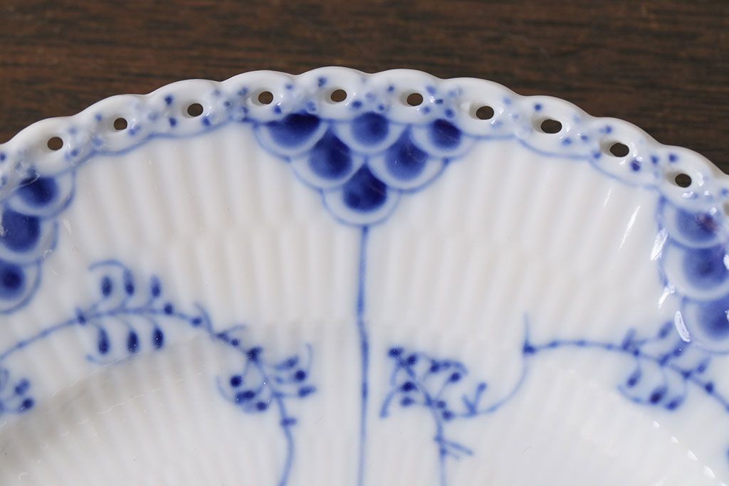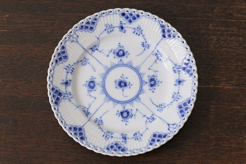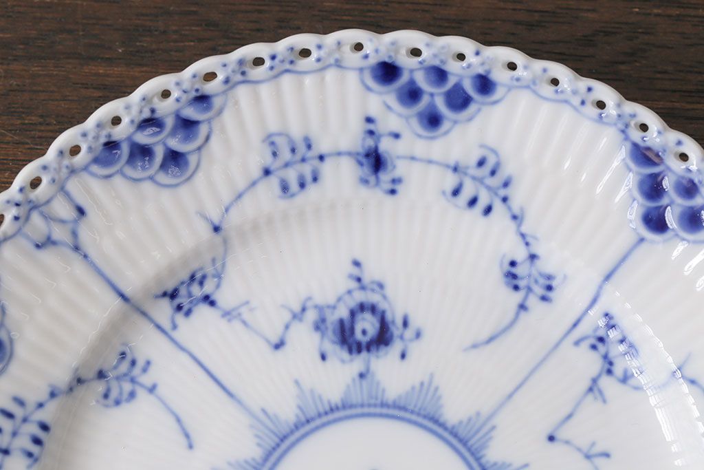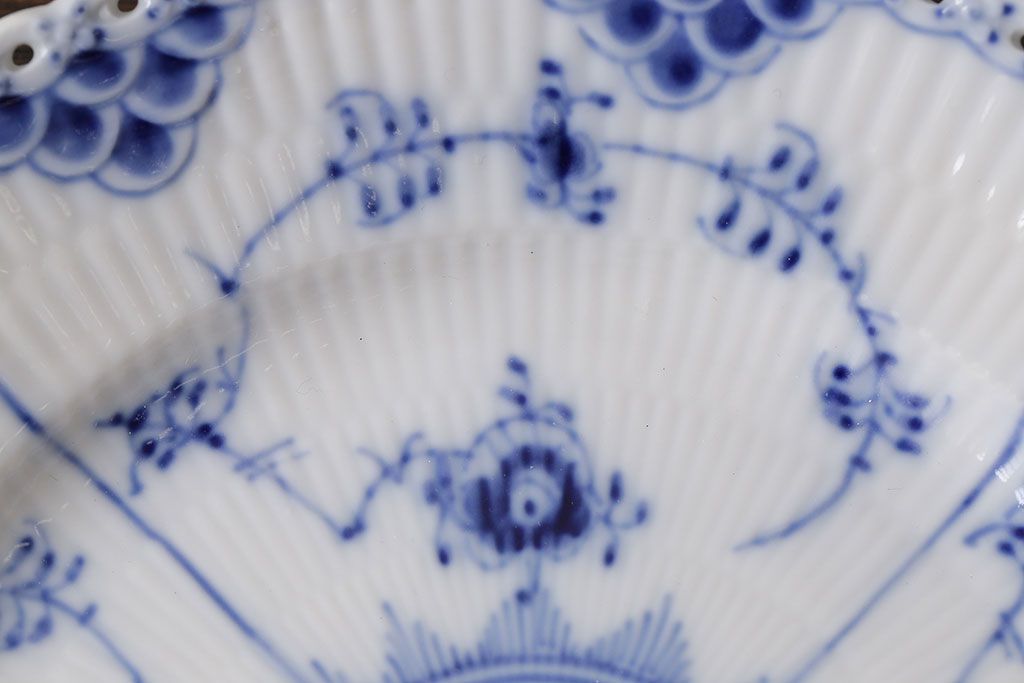 中古 ROYAL COPENHAGEN(ロイヤルコペンハーゲン) ブルーフルーテッド フルレース 19.5cmプレート2枚セット(洋食器)(定価約6万5千円)(3)