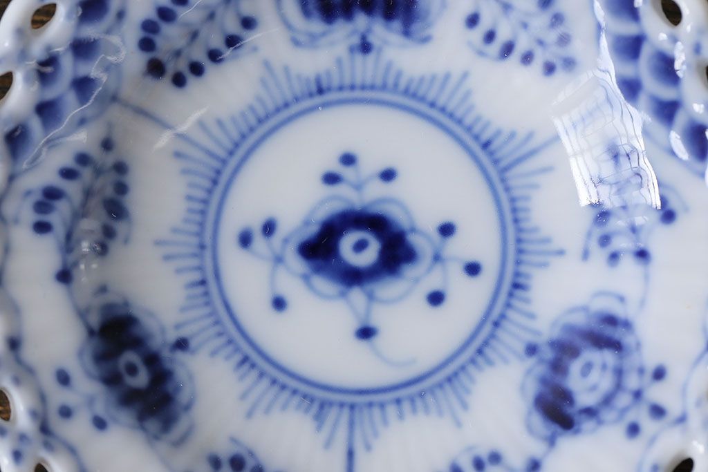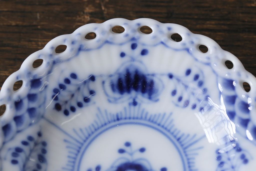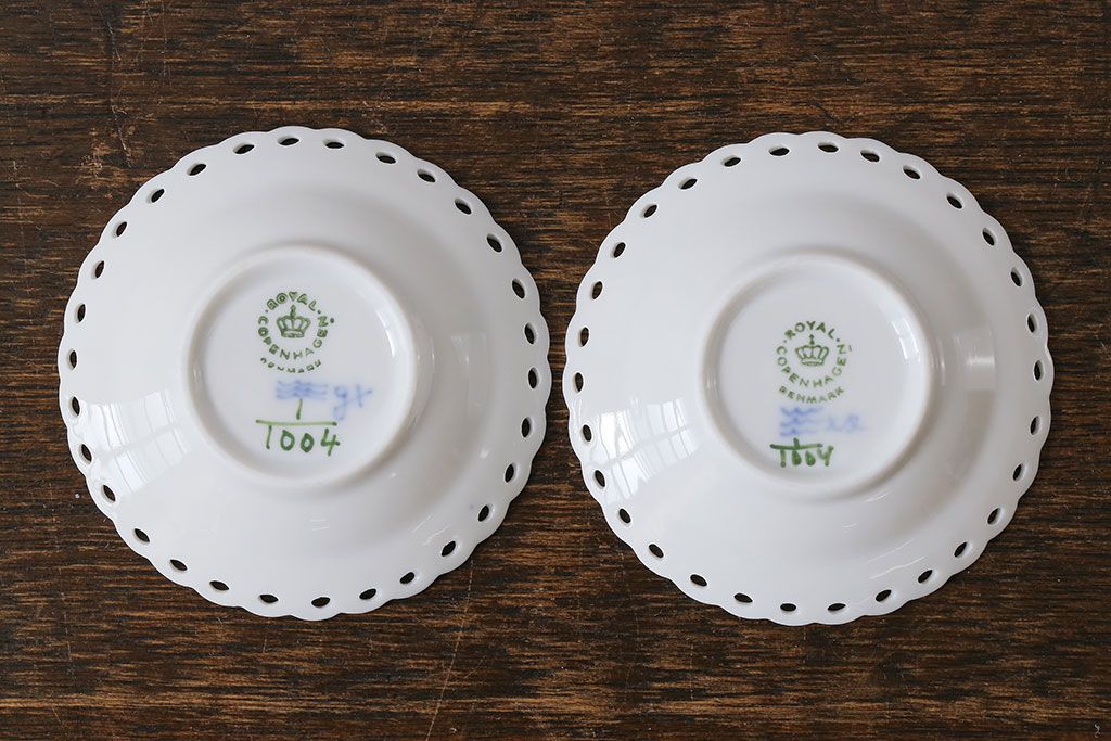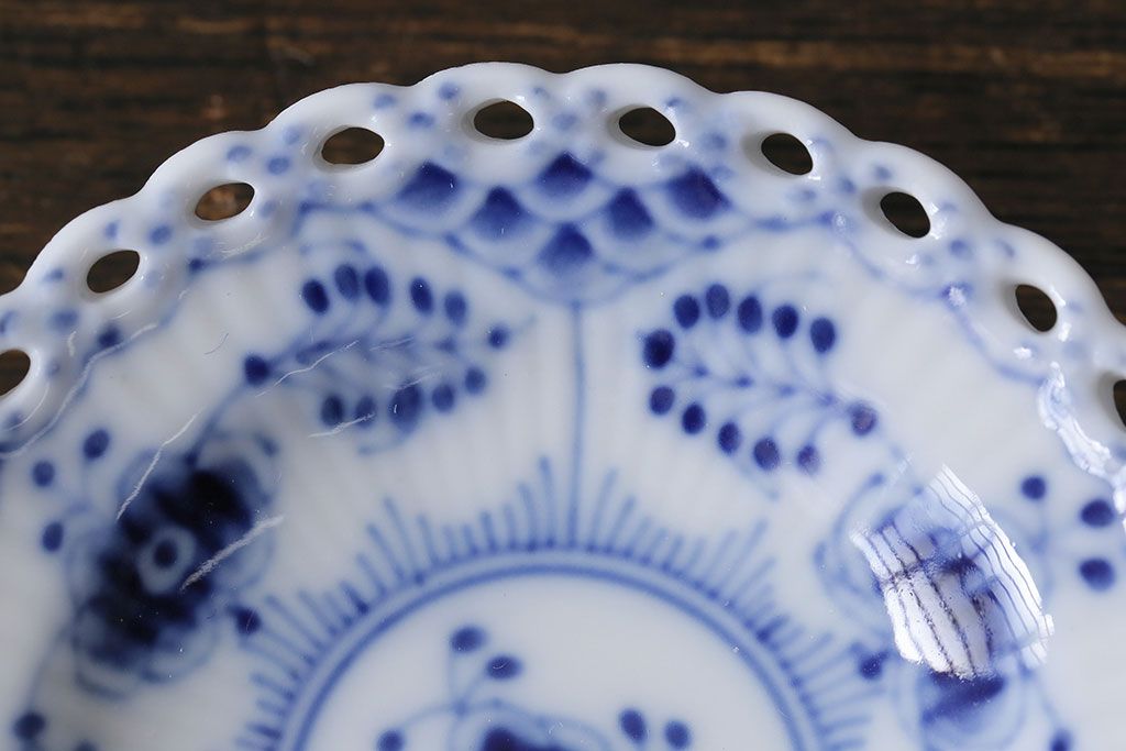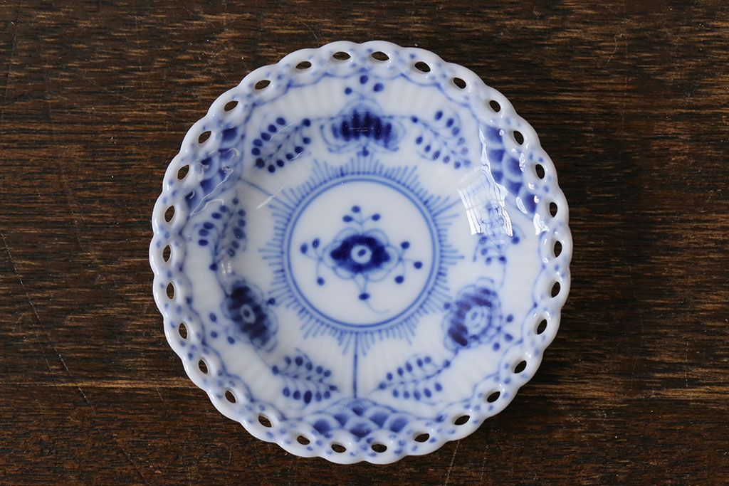 アンティーク雑貨 中古 ROYAL COPENHAGEN(ロイヤルコペンハーゲン) ブルーフルーテッド フルレース 7.5cmバタープレート2枚セット(ミニプレート)(定価約2万4千円)(3)