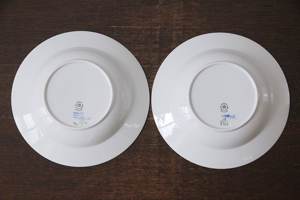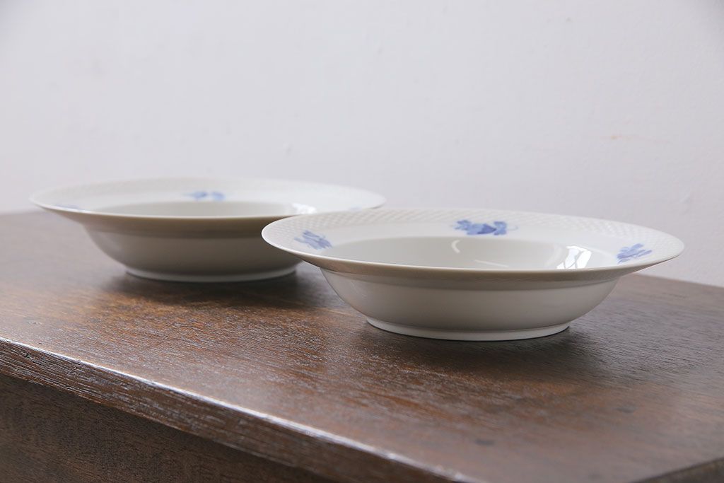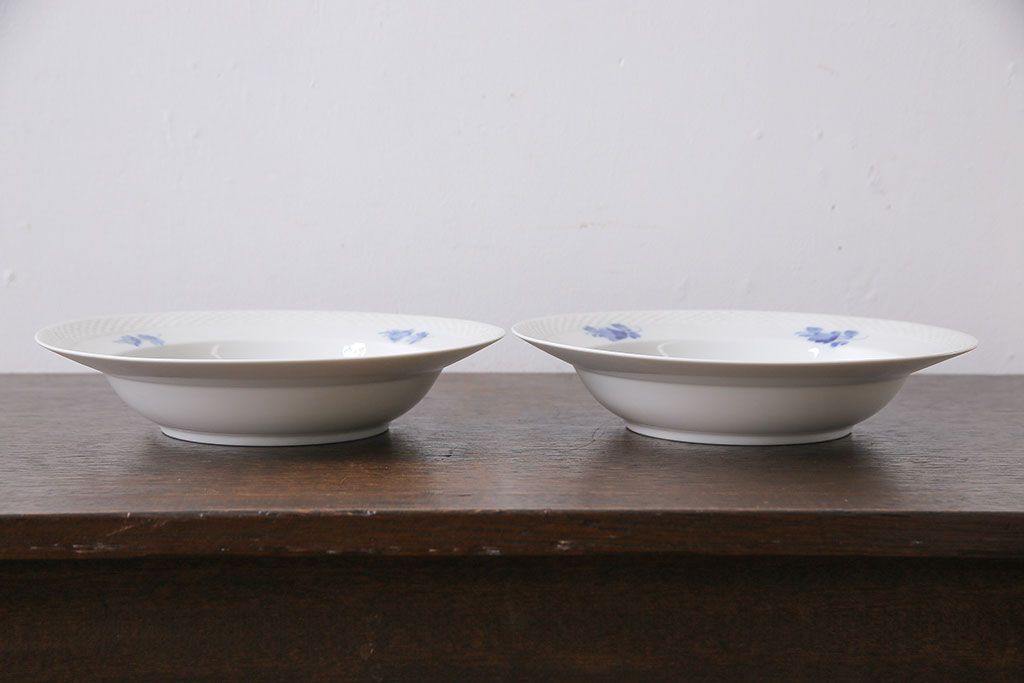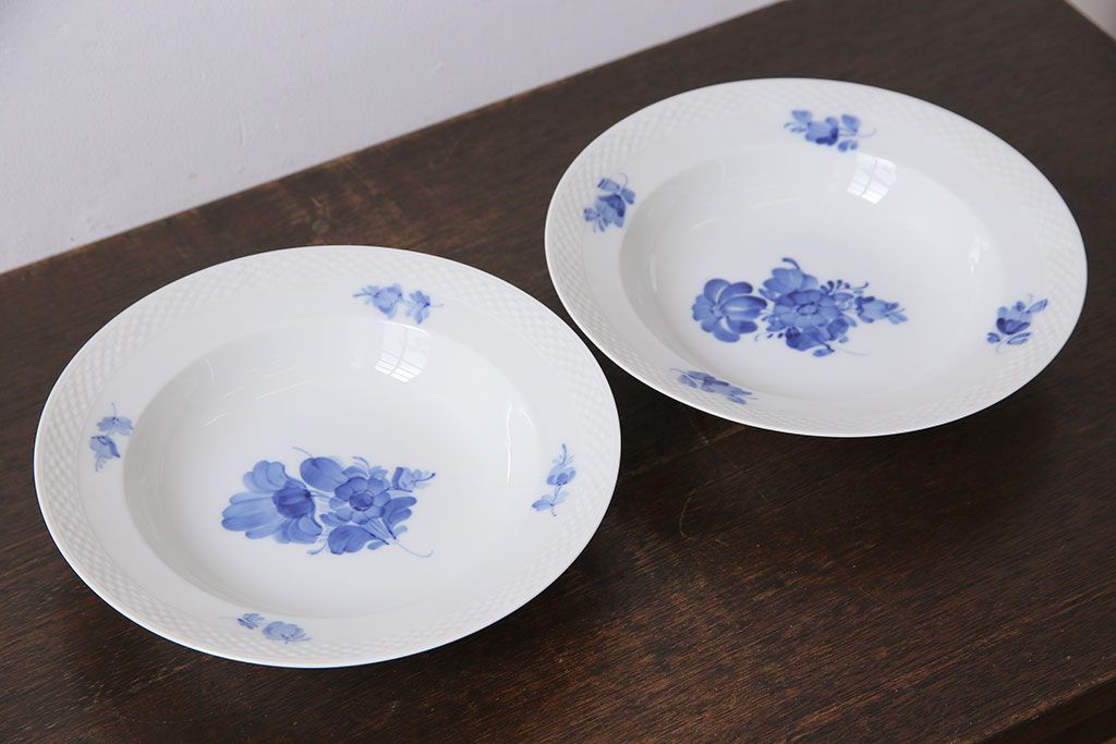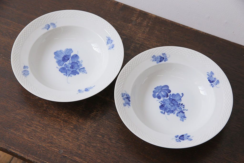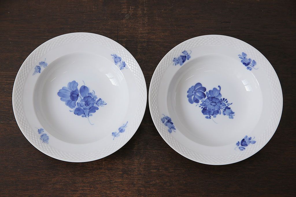 アンティーク雑貨 中古 ROYAL COPENHAGEN(ロイヤルコペンハーゲン) ブルーフラワー プレイン 23.5cmスープディッシュ2枚セット(ディーププレート)(1)