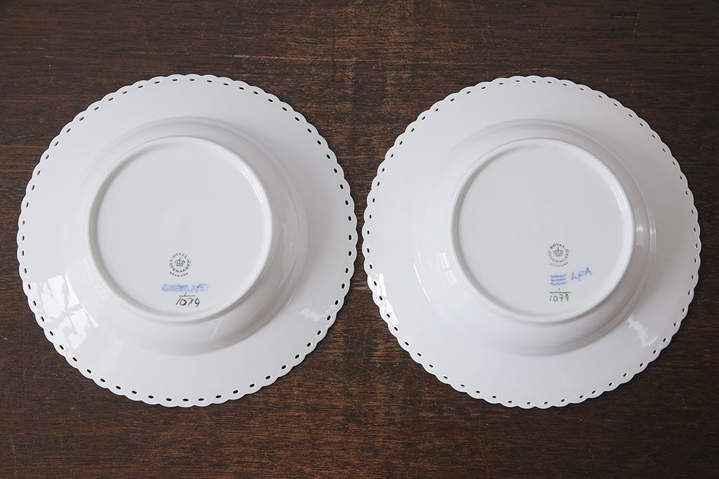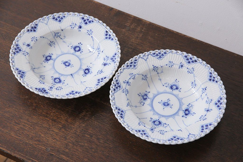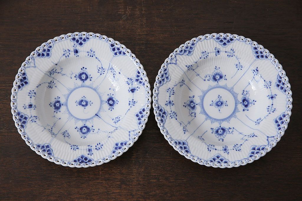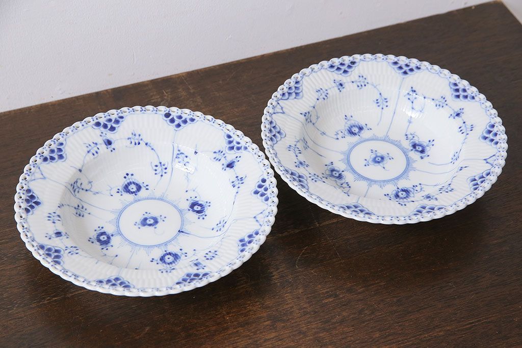 ラフジュ工房> 洋食器・キッチン用品> 皿・プレート > 中古 ROYAL COPENHAGEN(ロイヤルコペンハーゲン) ブルーフルーテッド フルレース 23cmディーププレート2枚セット(スープディッシュ)(定価約7万5千円)(2)