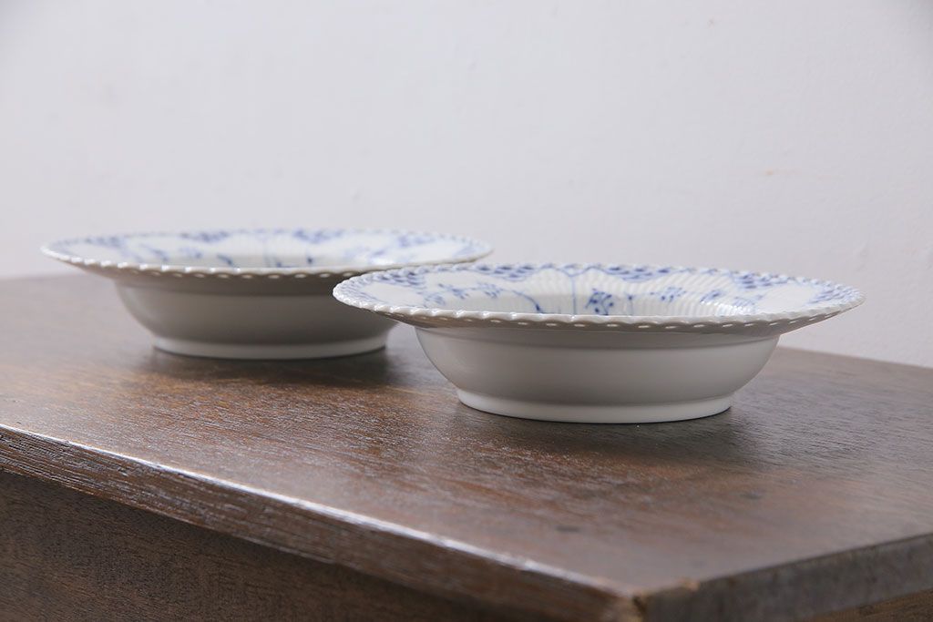 中古 ROYAL COPENHAGEN(ロイヤルコペンハーゲン) ブルーフルーテッド フルレース 23cmディーププレート2枚セット(スープディッシュ)(定価約7万5千円)(2)