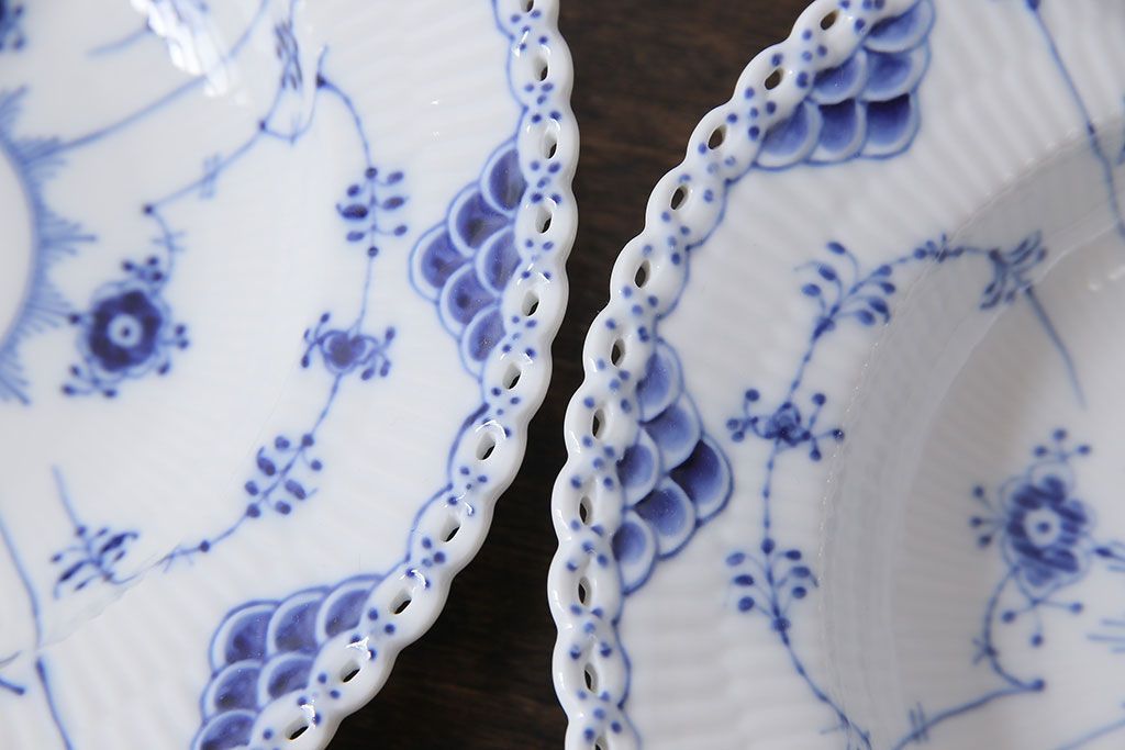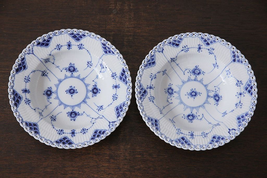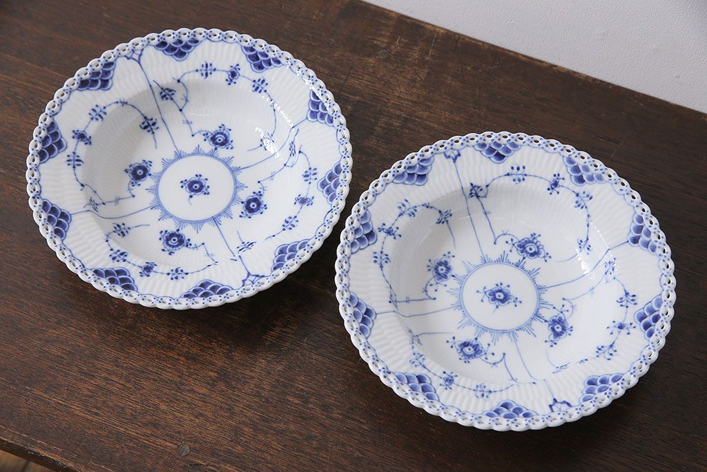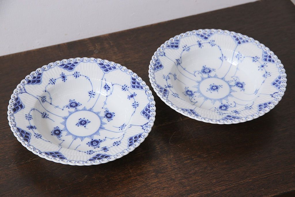 ラフジュ工房> 洋食器・キッチン用品> 皿・プレート > 中古 ROYAL COPENHAGEN(ロイヤルコペンハーゲン) ブルーフルーテッド フルレース 23cmディーププレート2枚セット(スープディッシュ)(定価約7万5千円)(3)