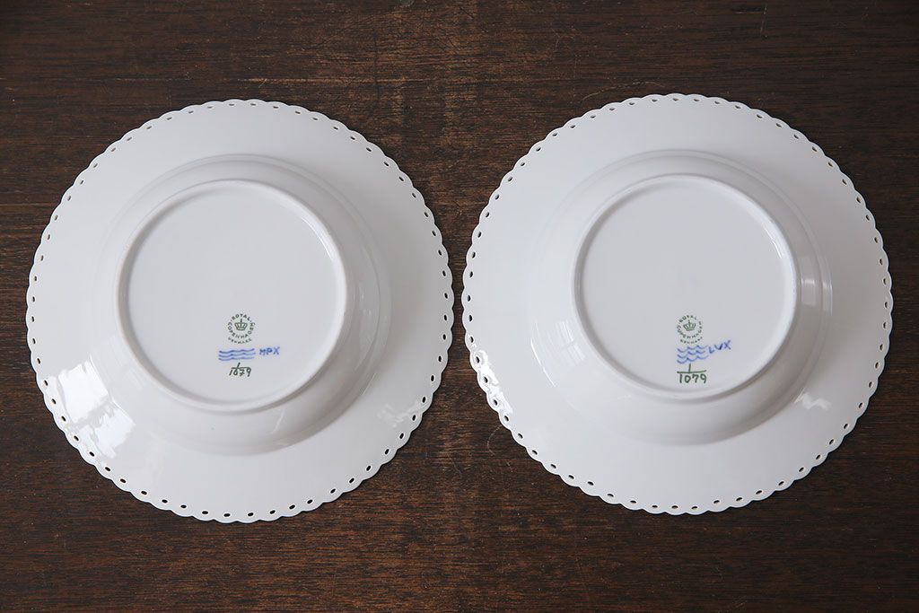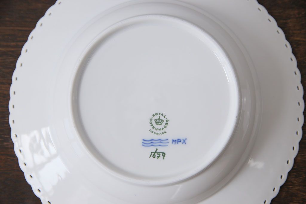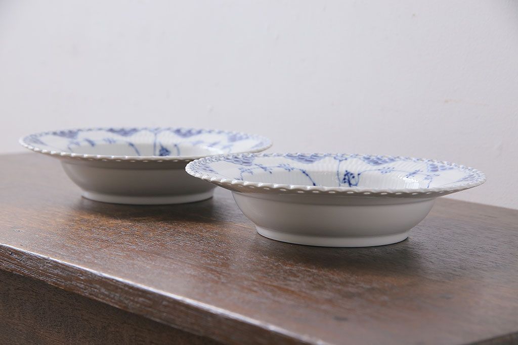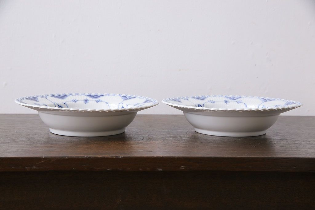 中古 ROYAL COPENHAGEN(ロイヤルコペンハーゲン) ブルーフルーテッド フルレース 23cmディーププレート2枚セット(スープディッシュ)(定価約7万5千円)(3)