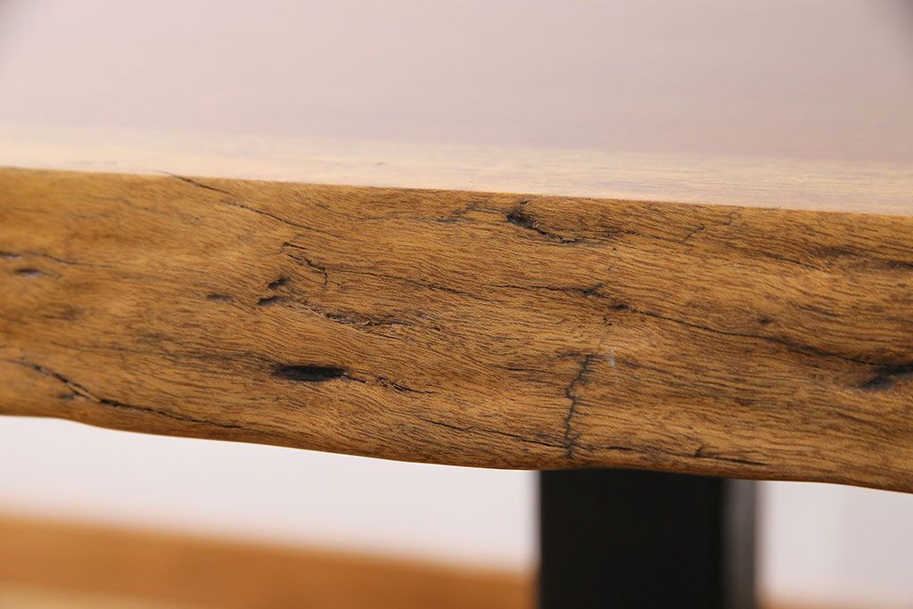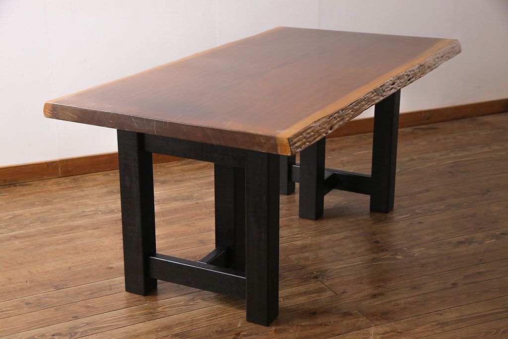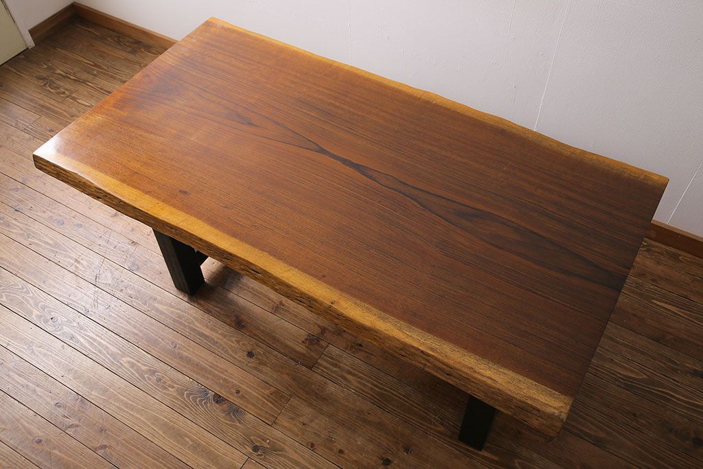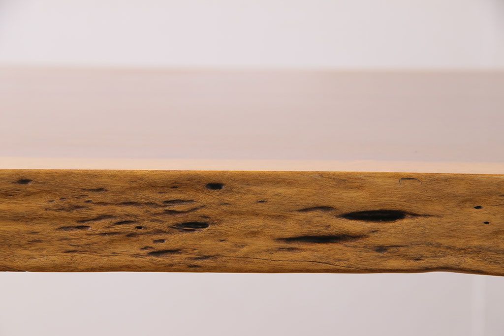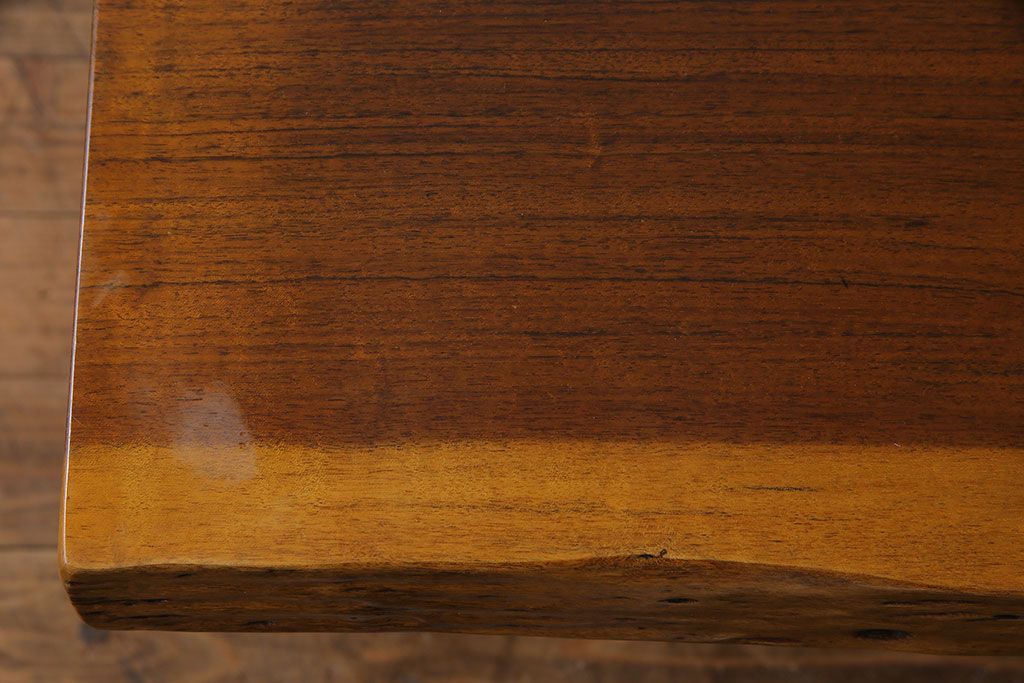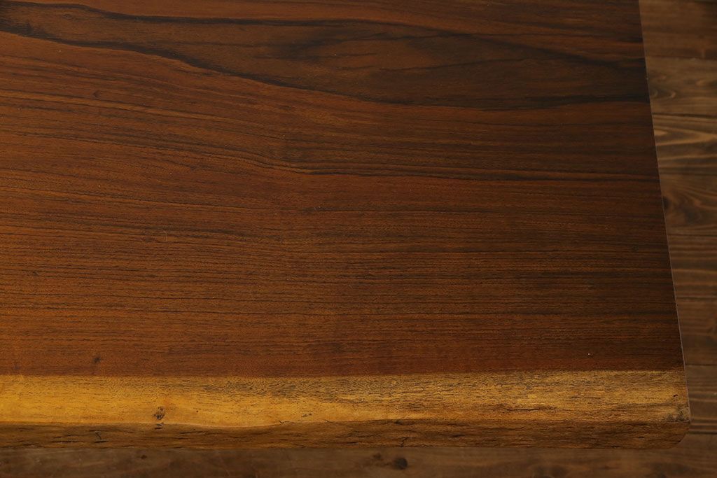 ラフジュ工房> テーブル> 4人用ダイニングテーブル > 中古 国産品 天板一枚板! モンキーポッド材 金褐色と木目が目を引くダイニングテーブル(作業台)