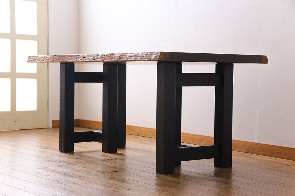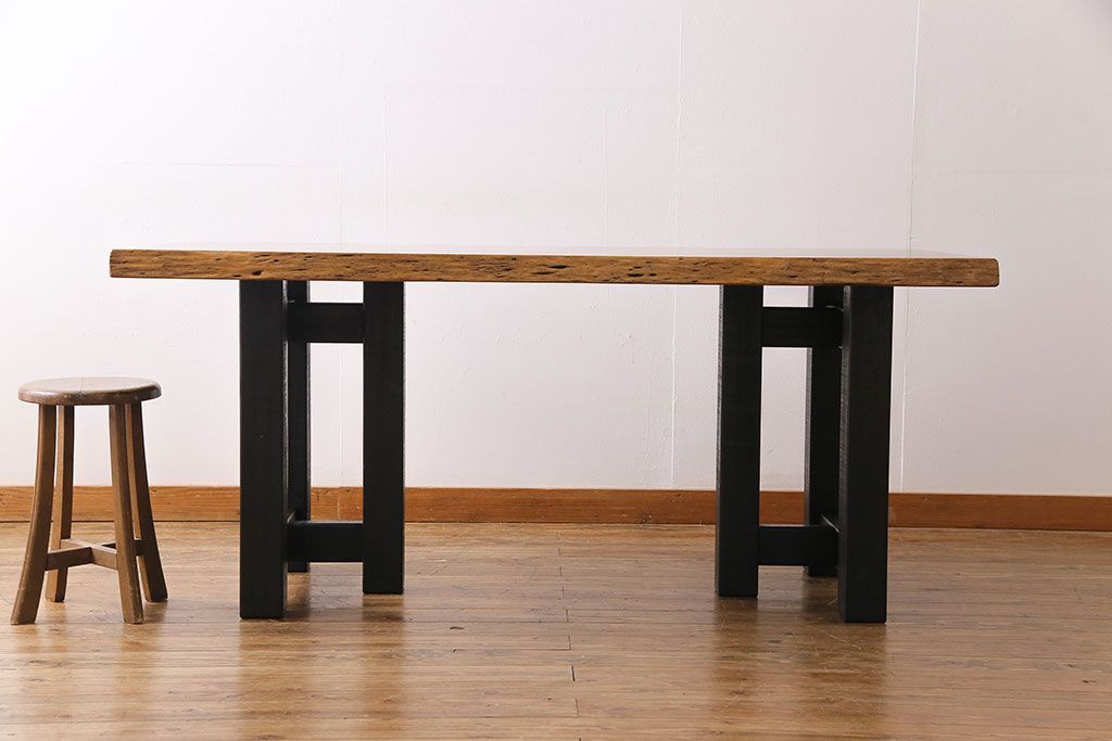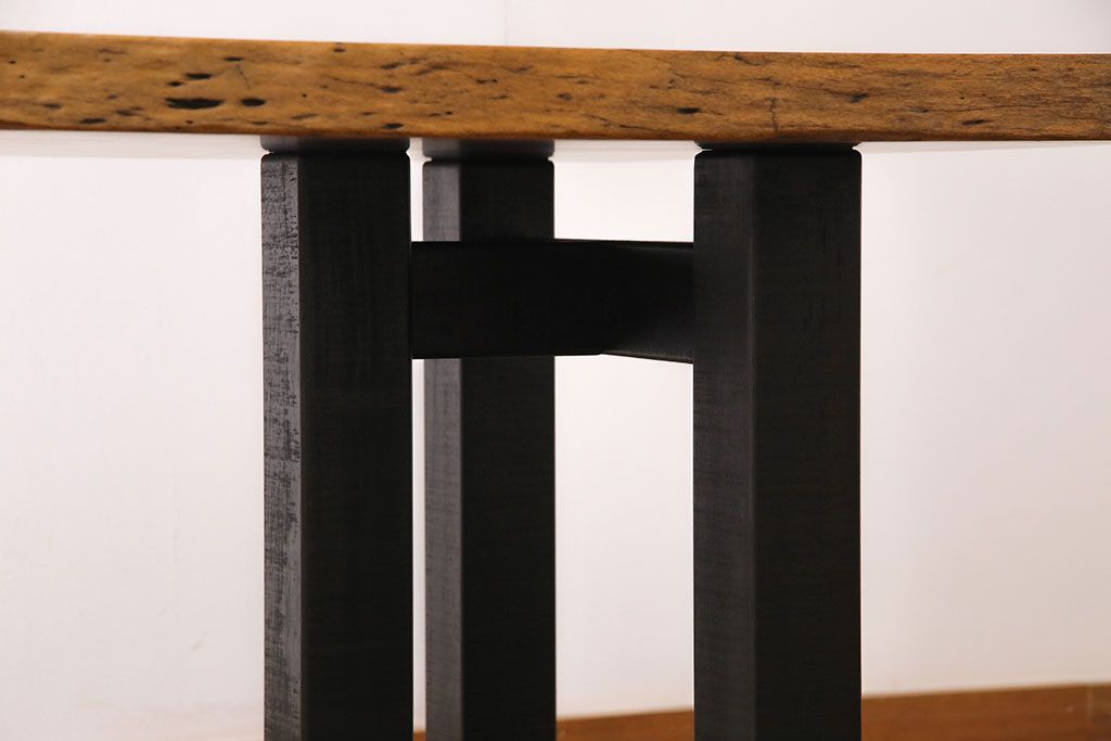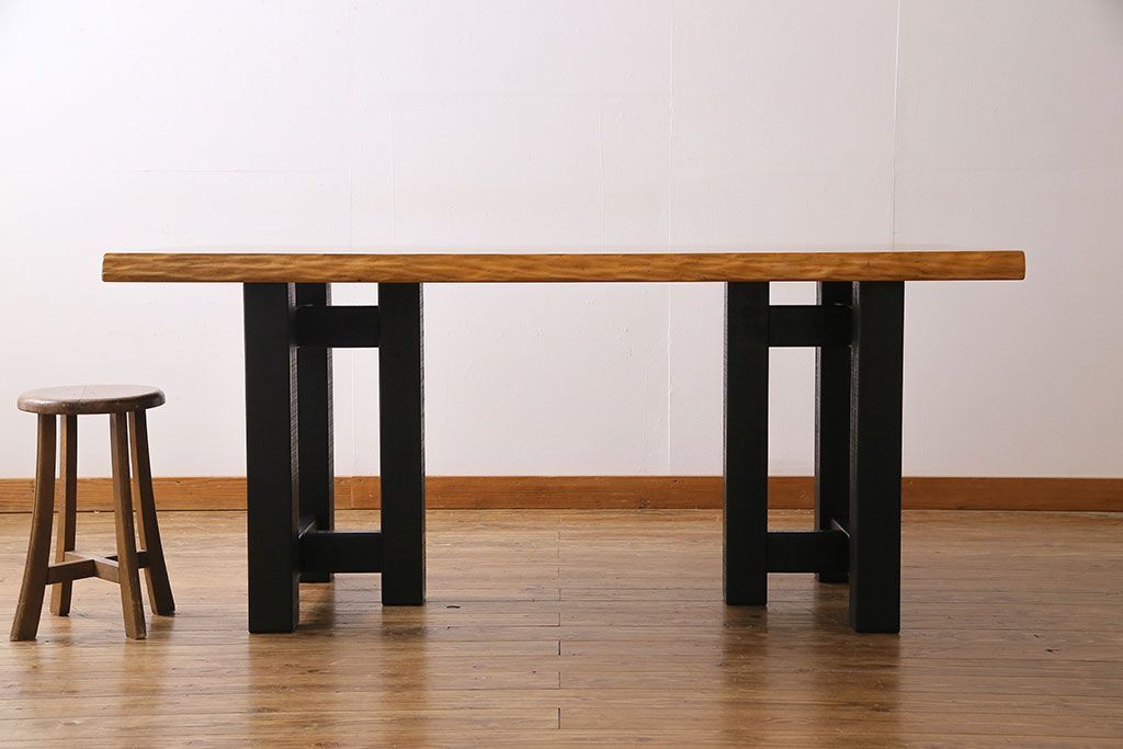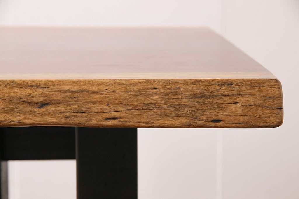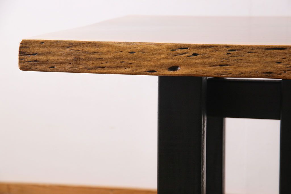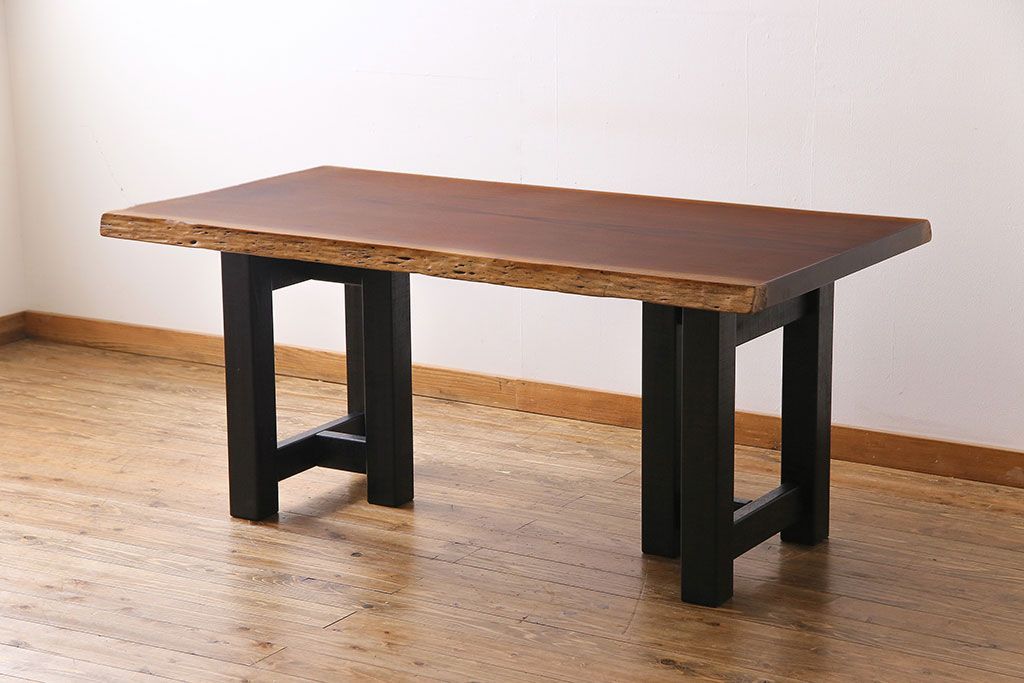 ラフジュ工房> テーブル> 4人用ダイニングテーブル > 中古 国産品 天板一枚板! モンキーポッド材 金褐色と木目が目を引くダイニングテーブル(作業台)