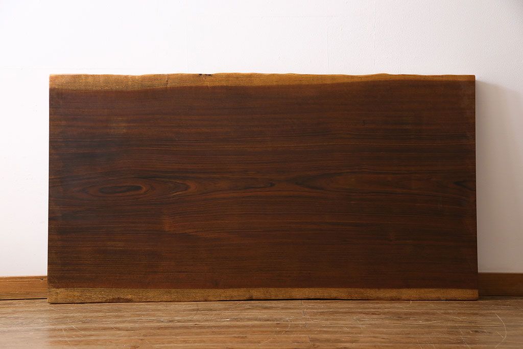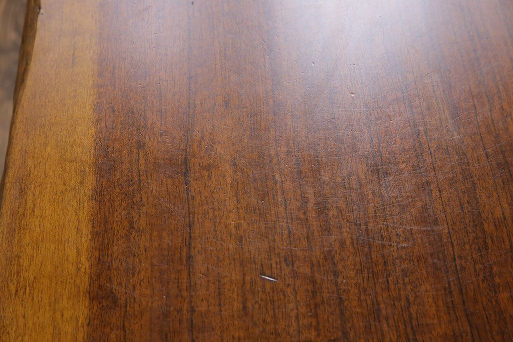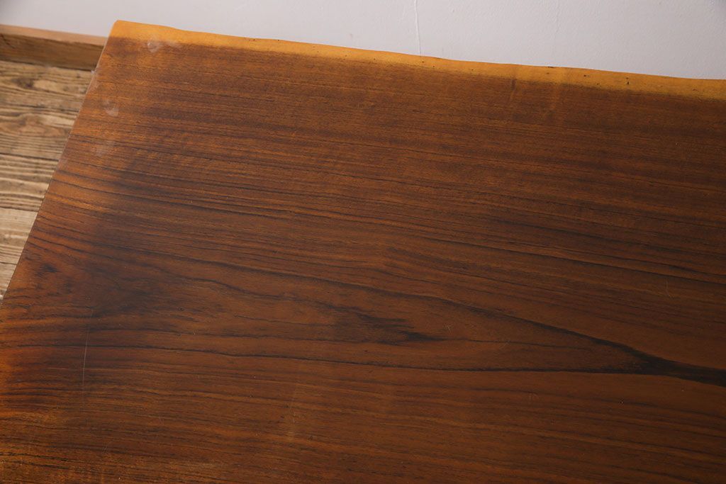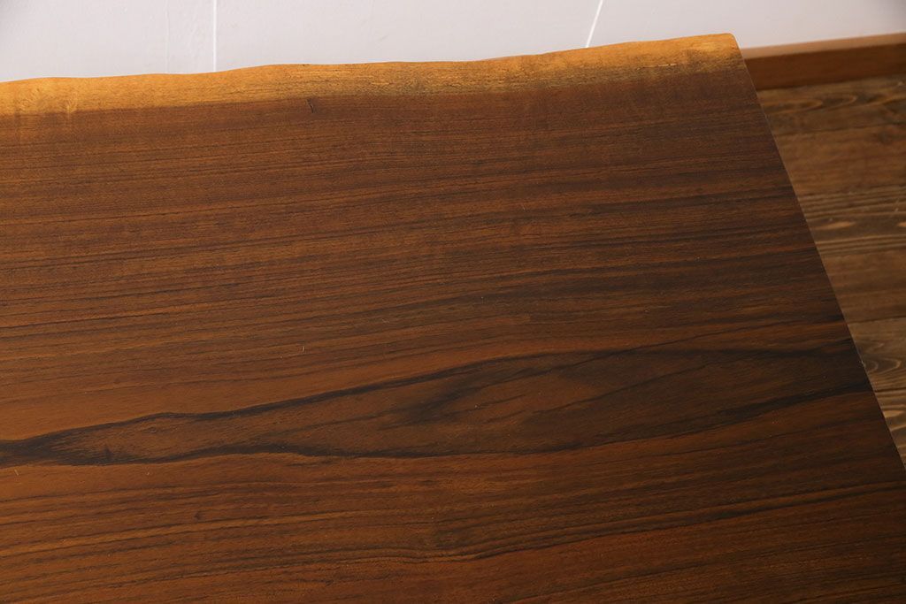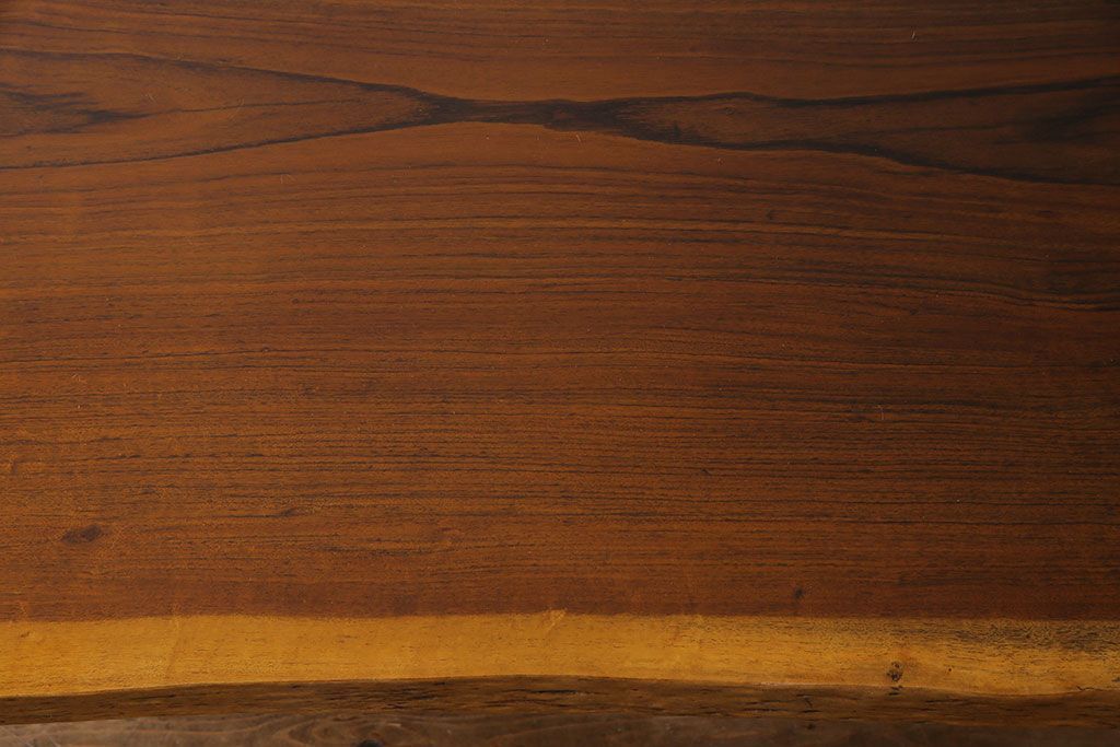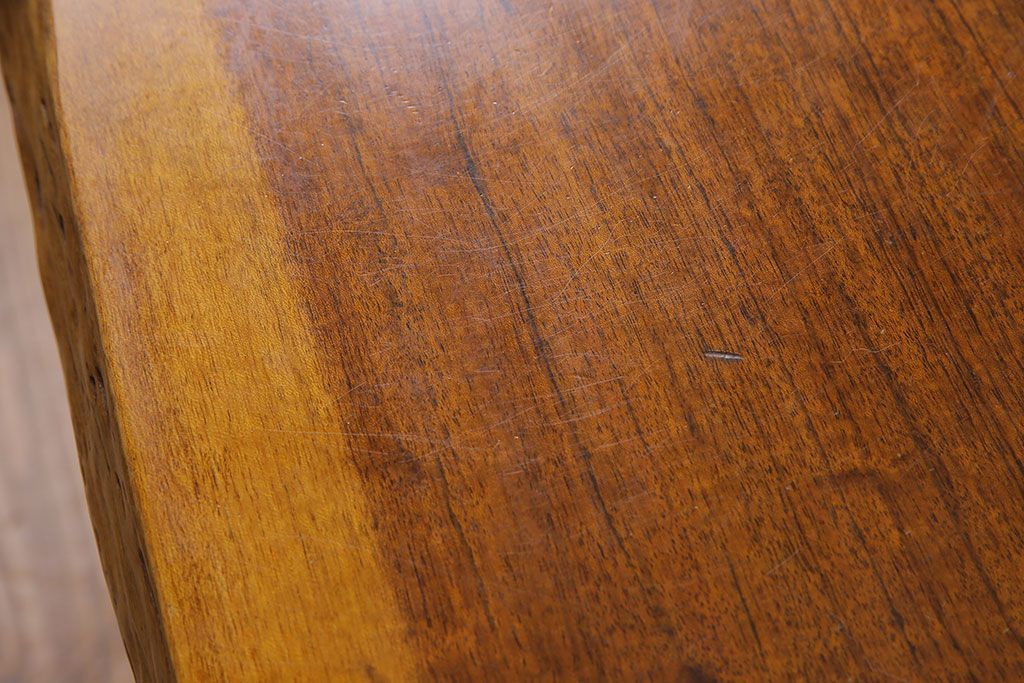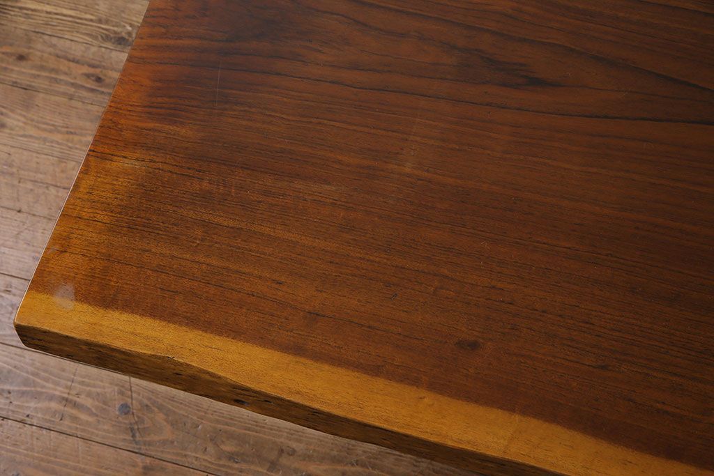 ラフジュ工房> テーブル > 中古 国産品 天板一枚板! モンキーポッド材 金褐色と木目が目を引くダイニングテーブル(作業台)