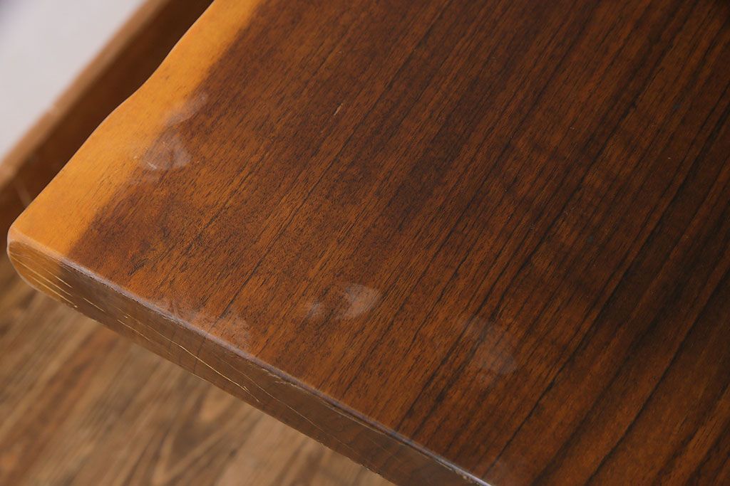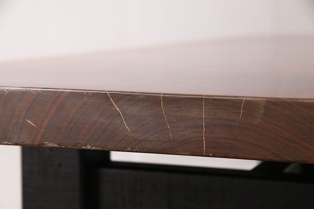 ラフジュ工房> デスク > 中古 国産品 天板一枚板! モンキーポッド材 金褐色と木目が目を引くダイニングテーブル(作業台)