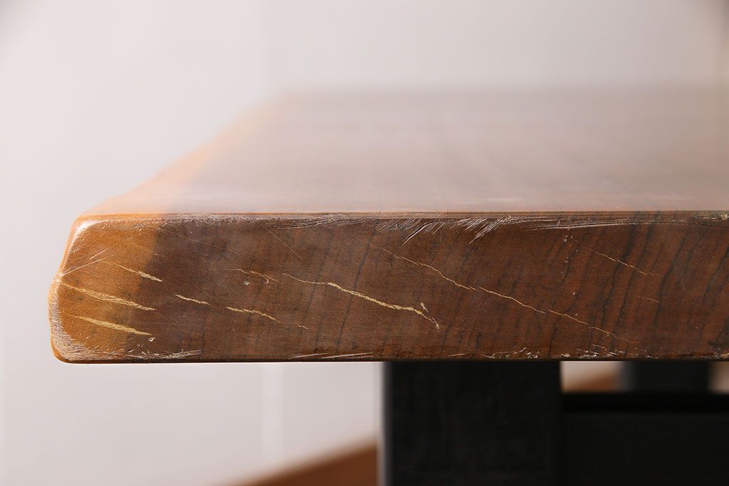 ラフジュ工房> テーブル> 作業台 > 中古 国産品 天板一枚板! モンキーポッド材 金褐色と木目が目を引くダイニングテーブル(作業台)