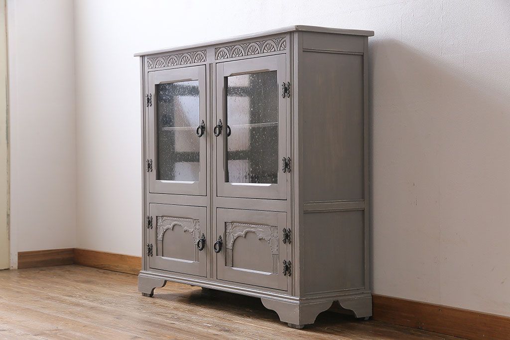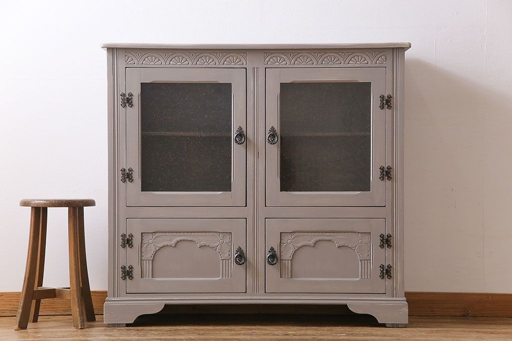 ヴィンテージ家具 イギリスビンテージ シャビーシックな雰囲気漂うペイントキャビネット(収納棚、戸棚)