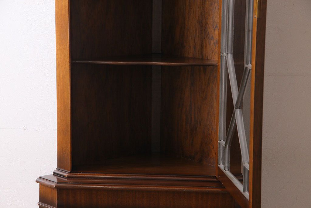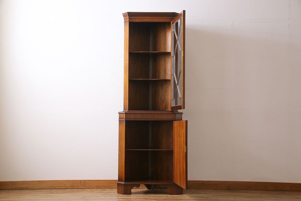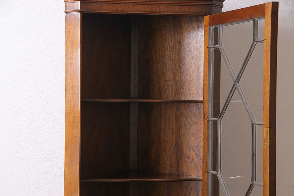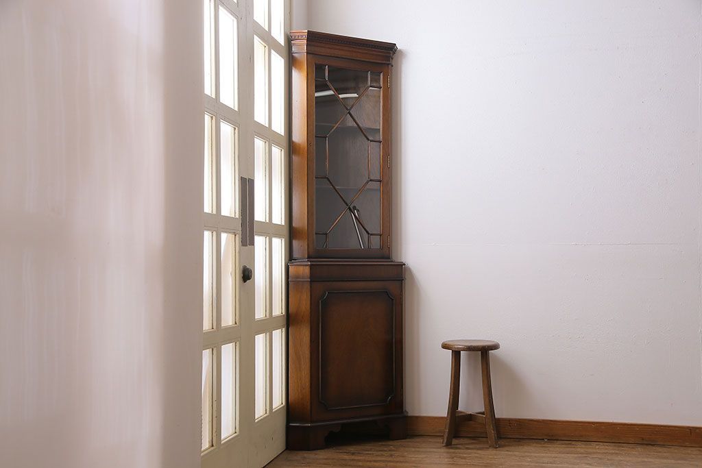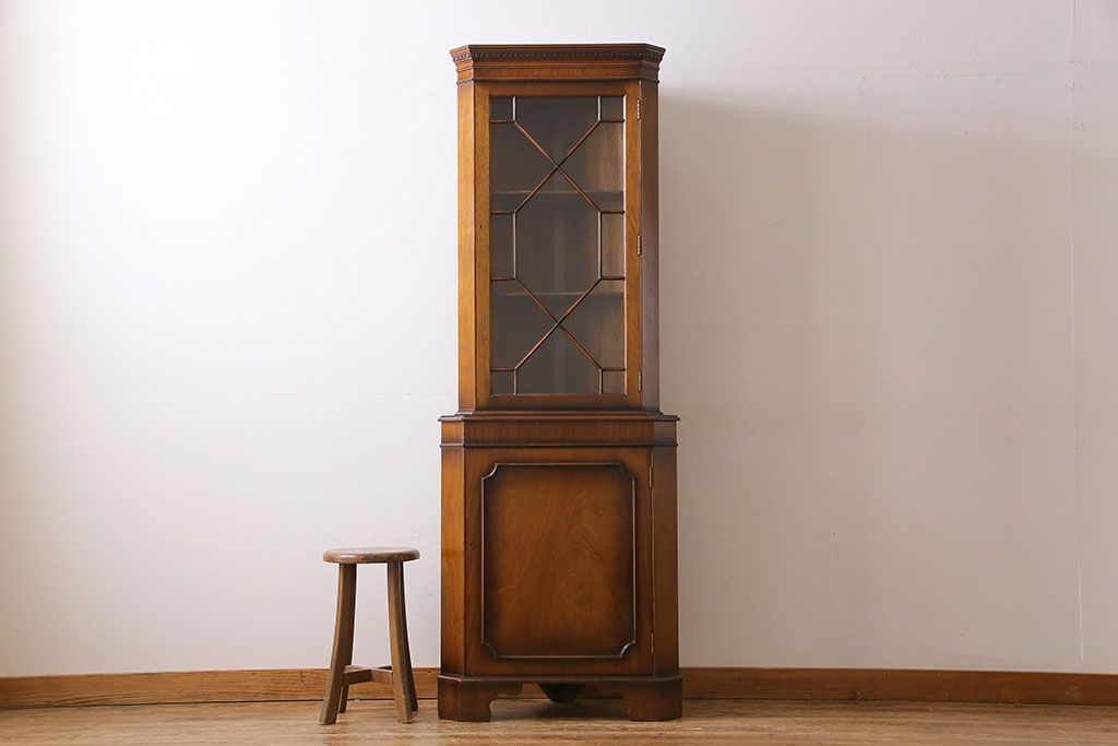 ヴィンテージ家具 イギリスビンテージ ウォールナット材の濃淡が味わい深いコーナーキャビネット(飾り棚、収納棚)