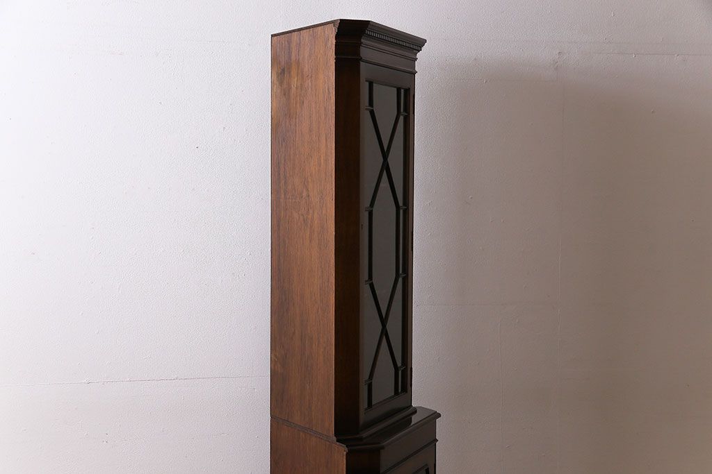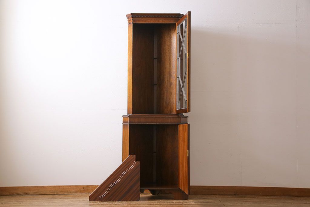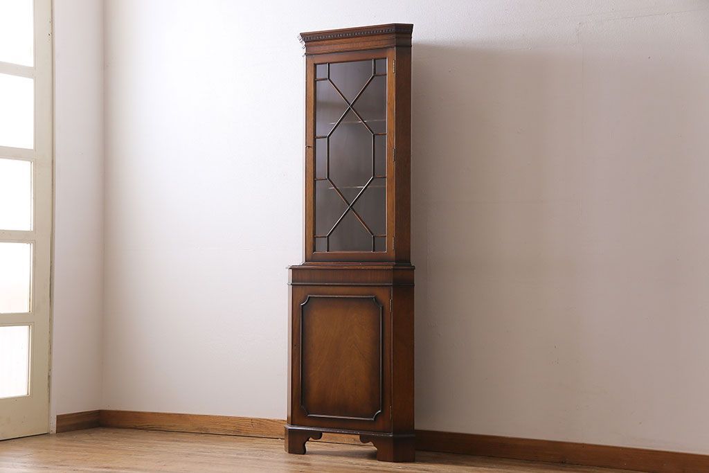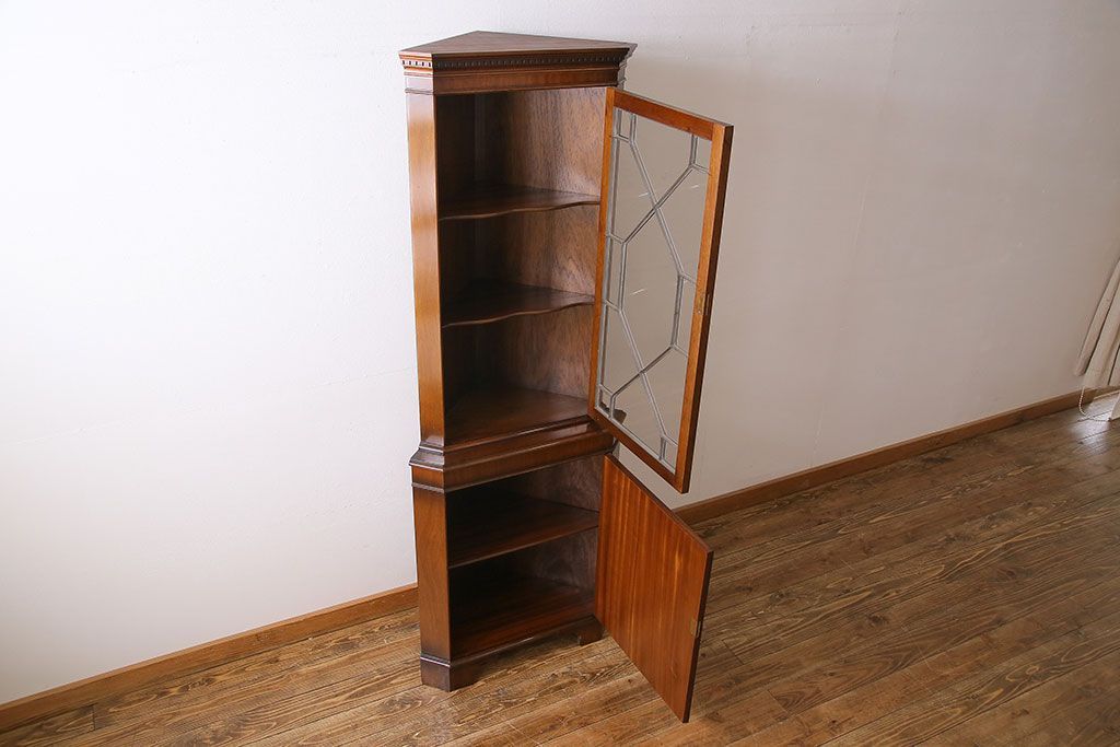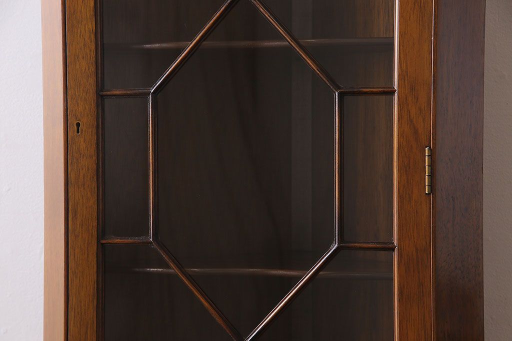 ヴィンテージ家具 イギリスビンテージ ウォールナット材の濃淡が味わい深いコーナーキャビネット(飾り棚、収納棚)