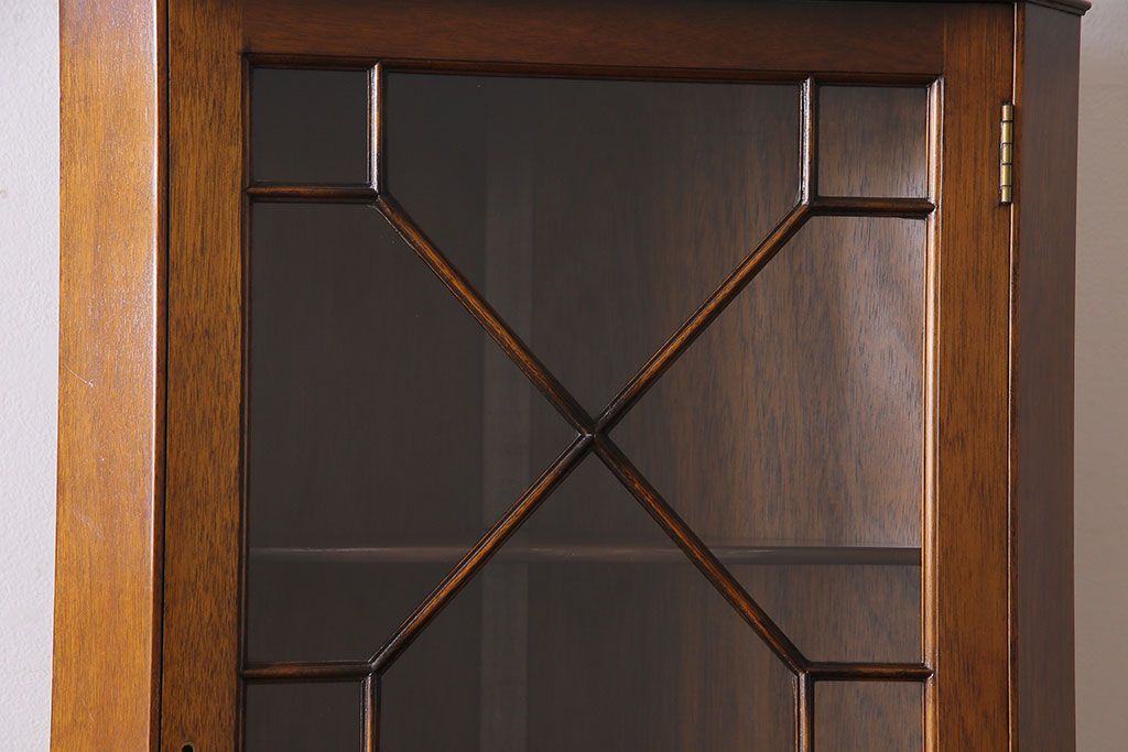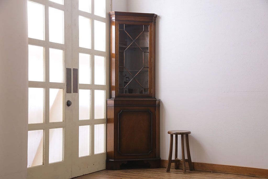ラフジュ工房> キャビネット・戸棚> コーナーキャビネット > ヴィンテージ家具 イギリスビンテージ ウォールナット材の濃淡が味わい深いコーナーキャビネット(飾り棚、収納棚)