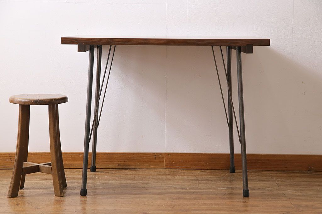 ラフジュ工房> デスク > ヒバ材使用 リメイク インダストリアルな空間作りにおすすめの鉄脚テーブル(サイドテーブル、カフェテーブル)