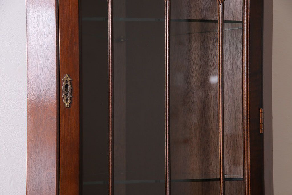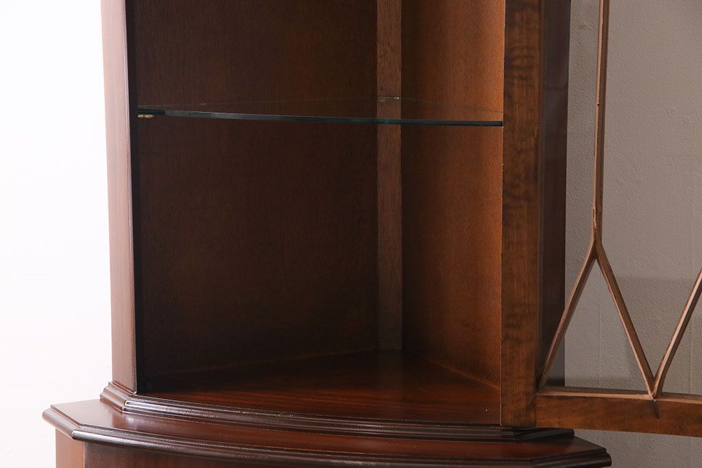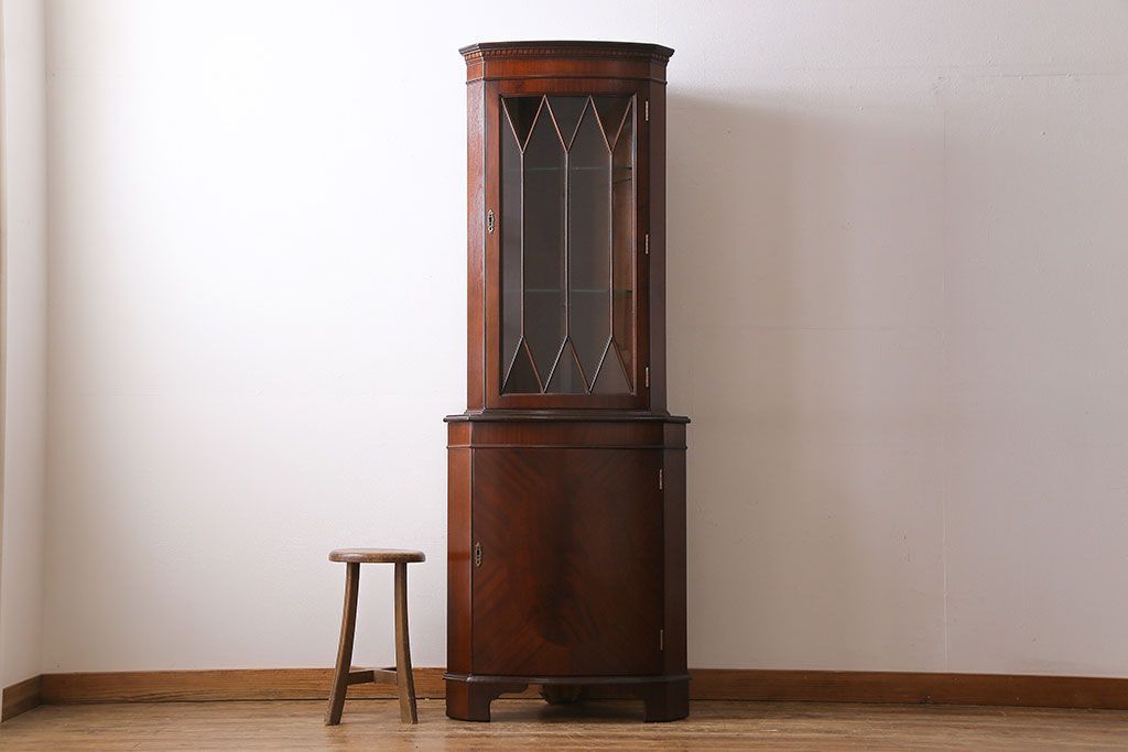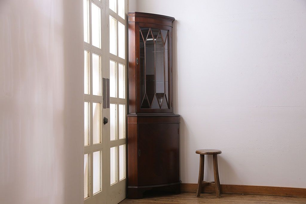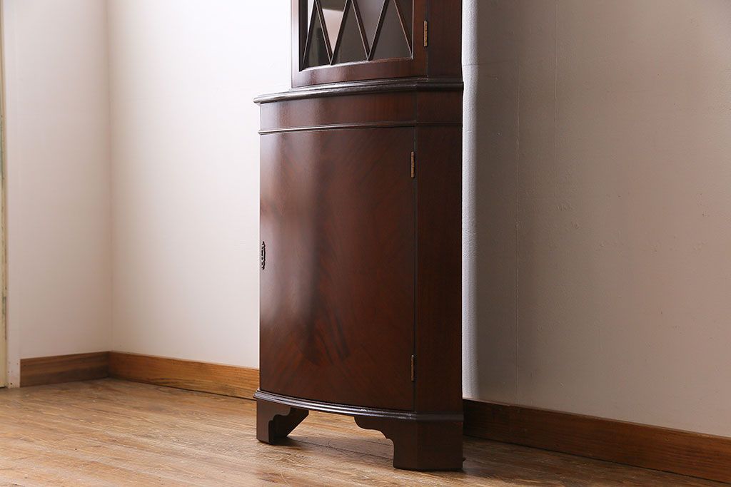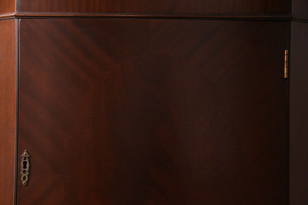 【I様ご成約済み】イギリスビンテージ マホガニー材 赤みがかった深い色味が魅力的なコーナーキャビネット(飾り棚、収納棚)