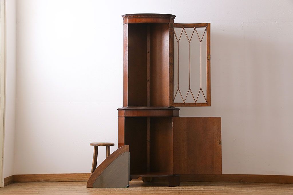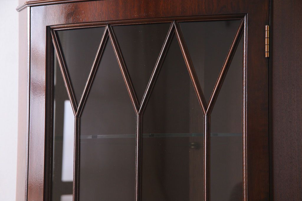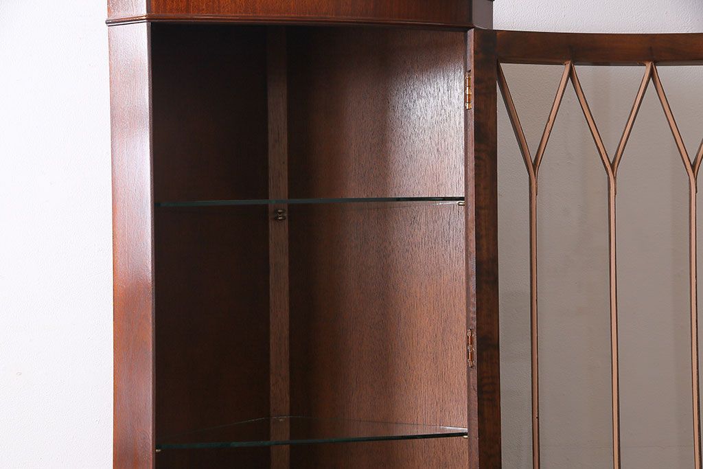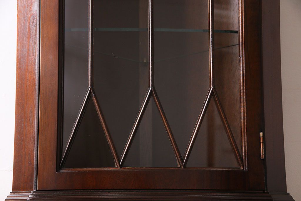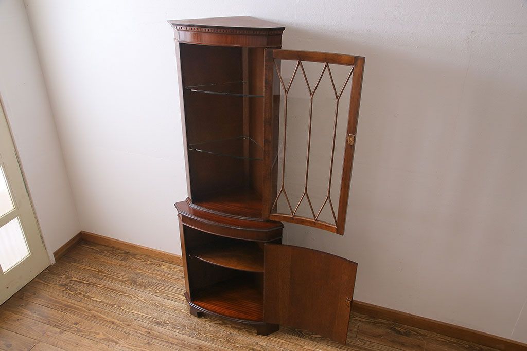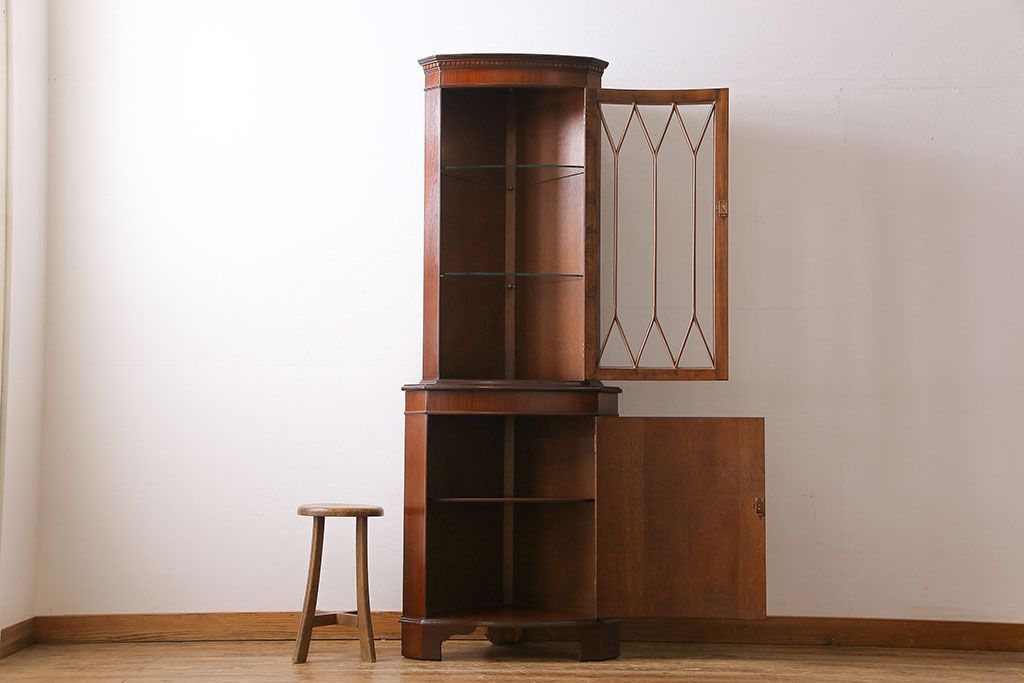 【I様ご成約済み】イギリスビンテージ マホガニー材 赤みがかった深い色味が魅力的なコーナーキャビネット(飾り棚、収納棚)