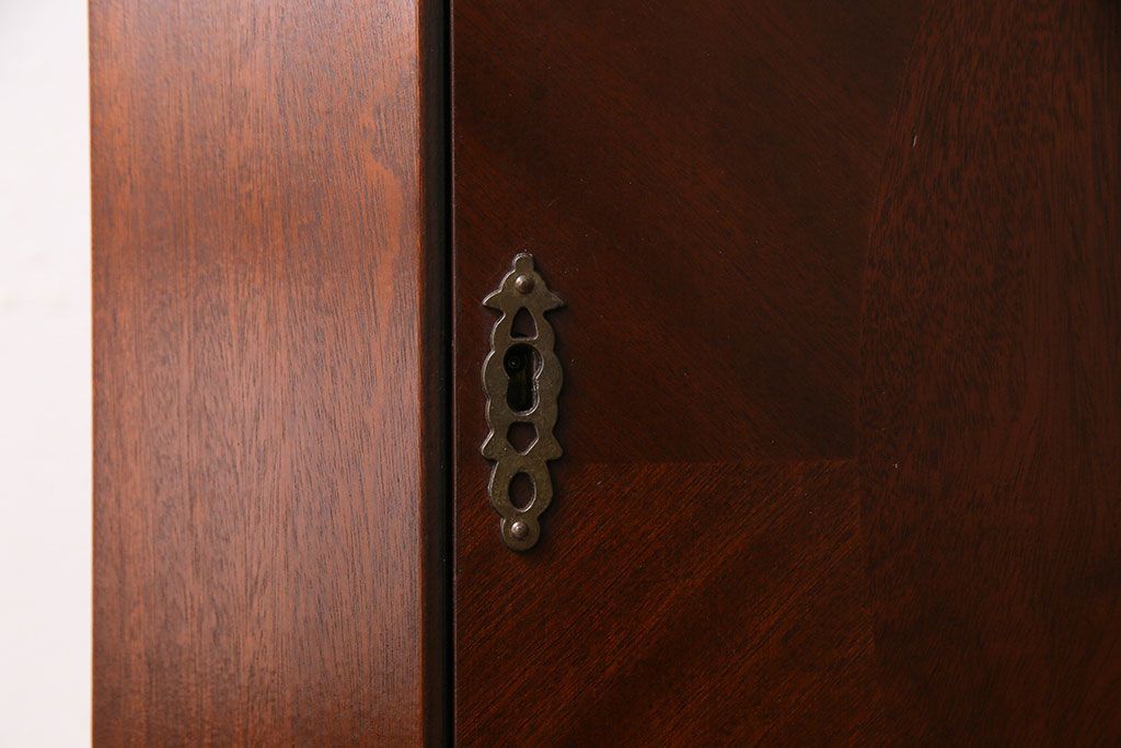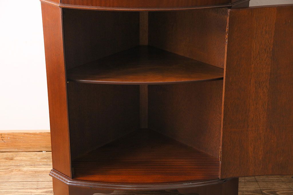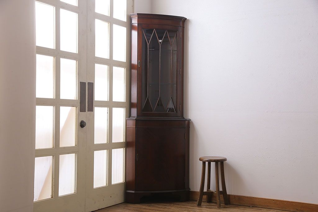 ラフジュ工房> キャビネット・戸棚> コーナーキャビネット > 【I様ご成約済み】イギリスビンテージ マホガニー材 赤みがかった深い色味が魅力的なコーナーキャビネット(飾り棚、収納棚)