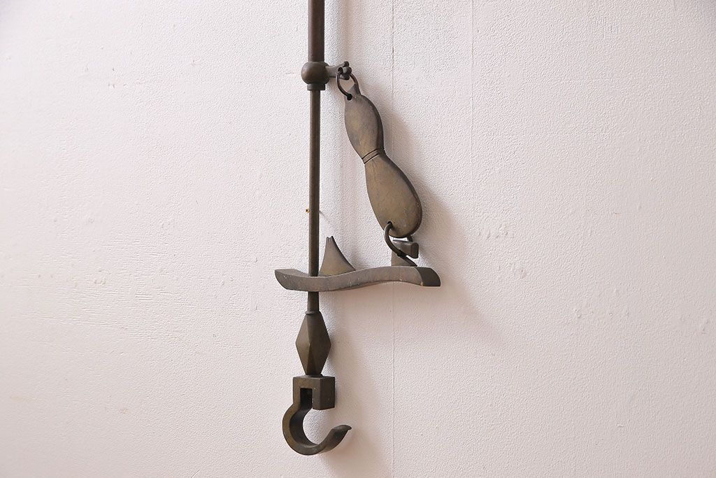 アンティーク雑貨 古民具・骨董 真鍮製 風情を感じる中通し式自在鉤(じざいかぎ)