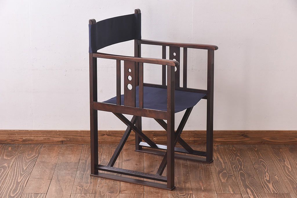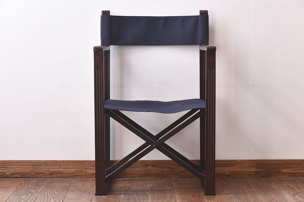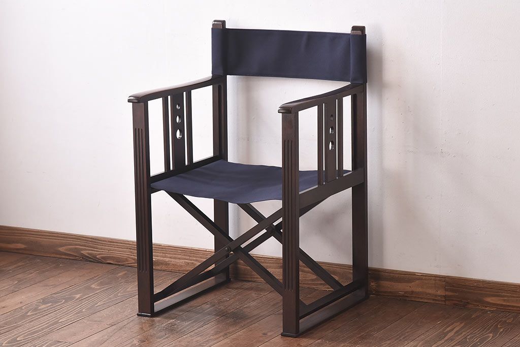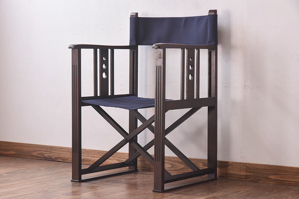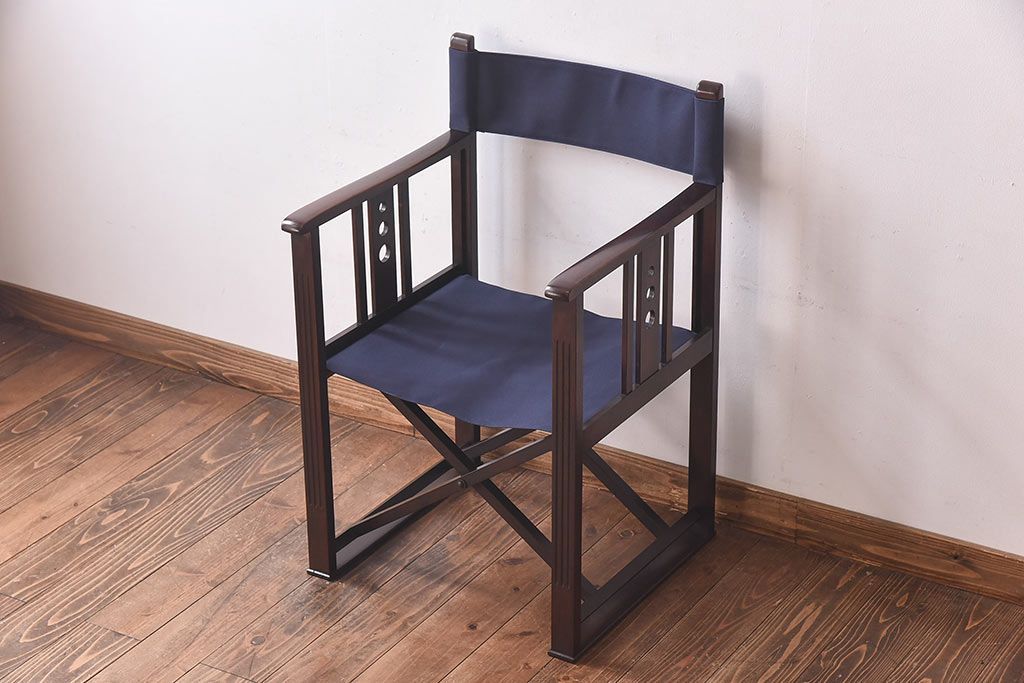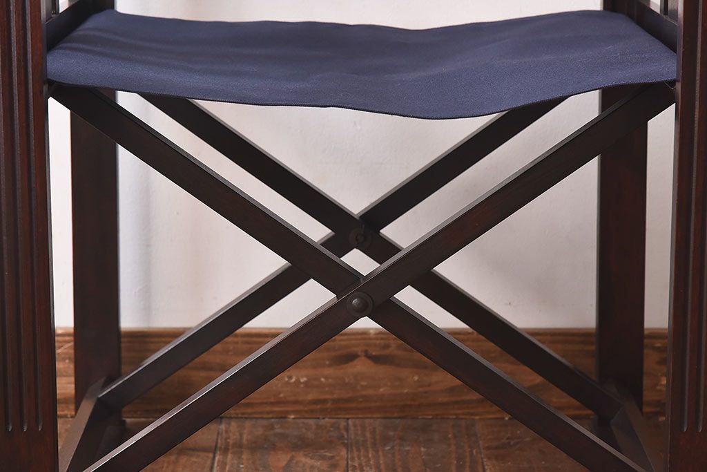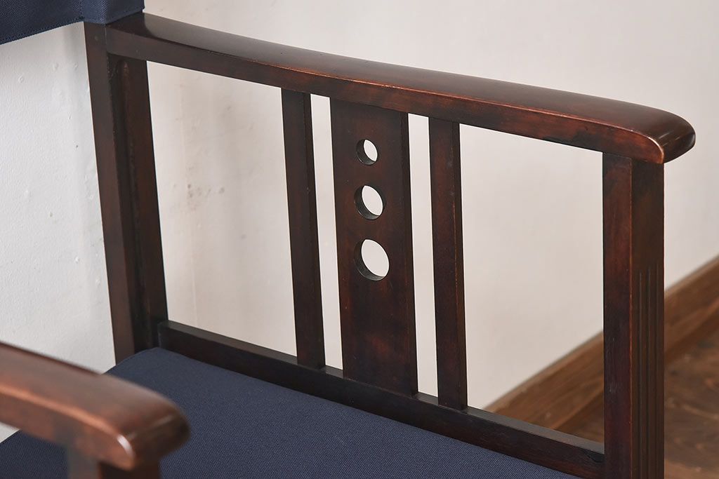ラフジュ工房> 椅子・ベンチ> アームチェア > アンティーク家具 日本楽器・山葉(ヤマハ) 和モダンテイストの上質なフォールディングチェア・青(文化椅子、折りたたみ式チェア、イス)(2)