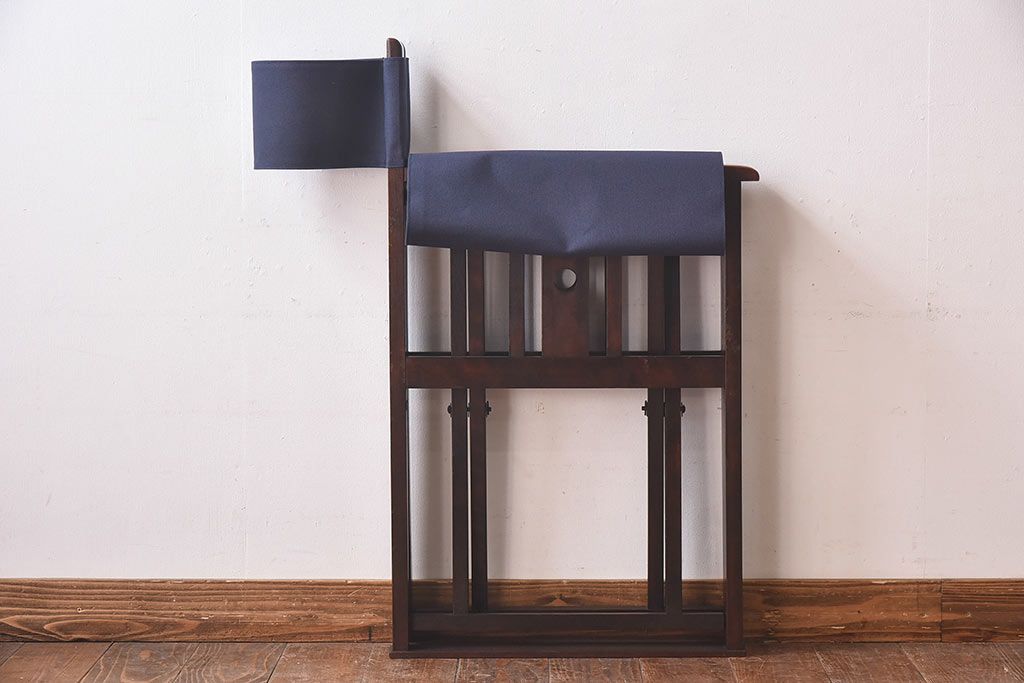 ラフジュ工房> 椅子・ベンチ> 折りたたみチェア > アンティーク家具 日本楽器・山葉(ヤマハ) 和モダンテイストの上質なフォールディングチェア・青(文化椅子、折りたたみ式チェア、イス)(2)