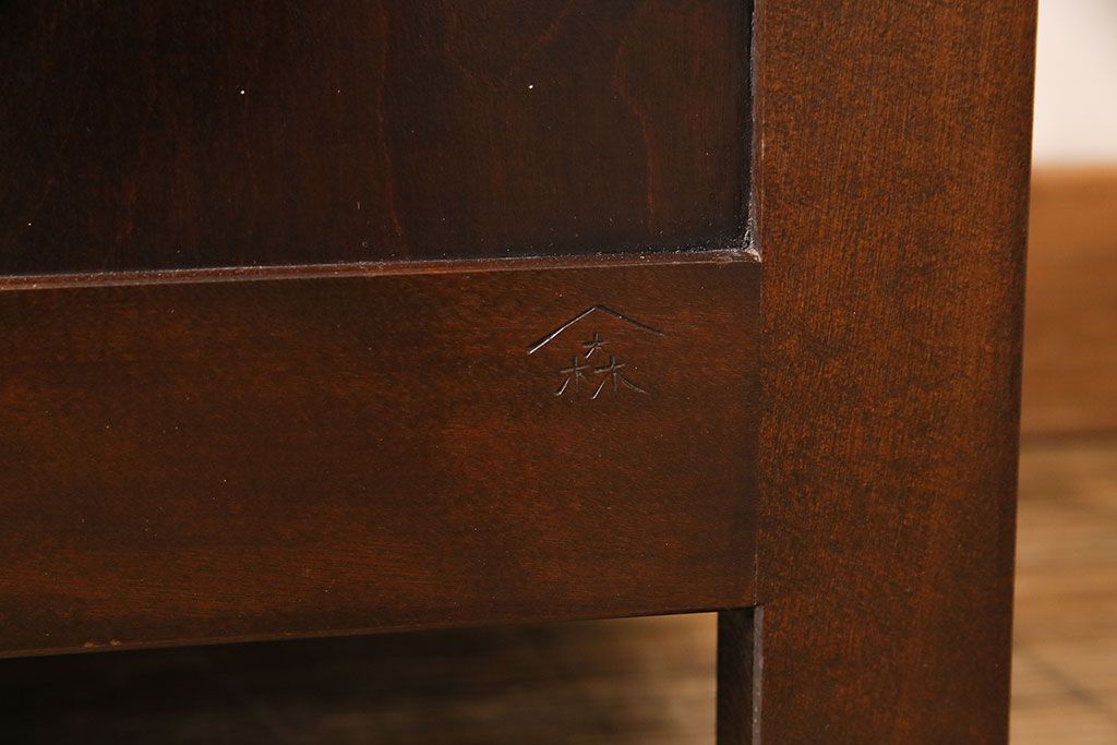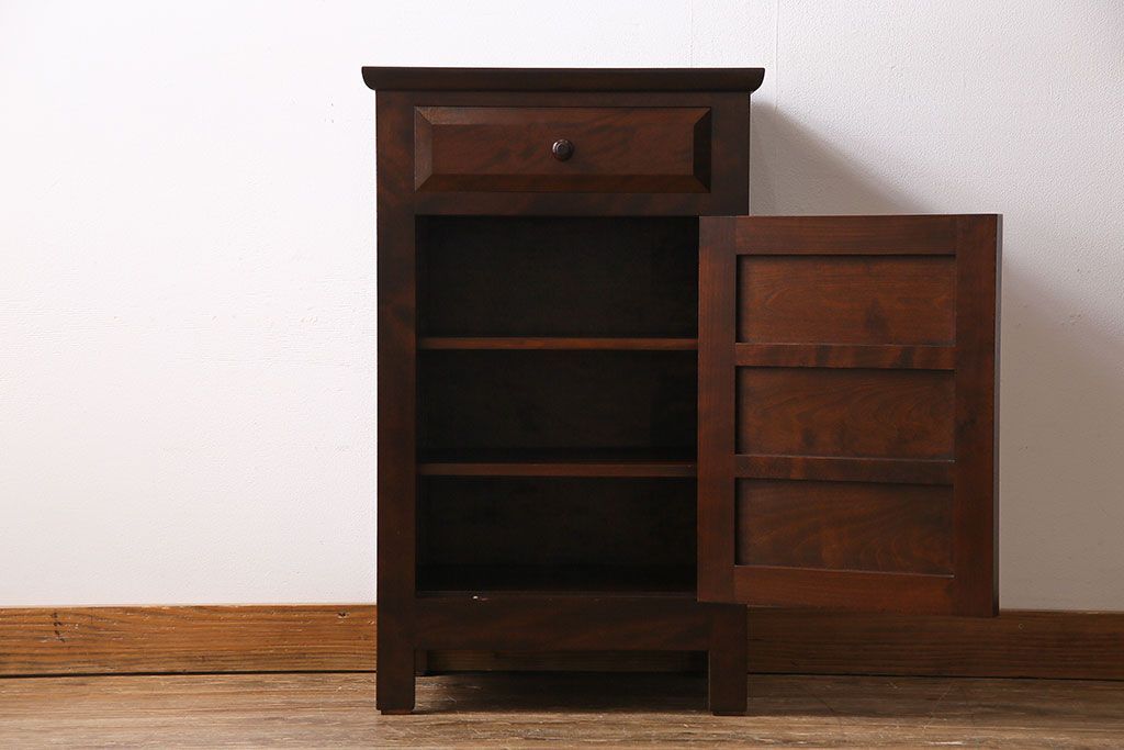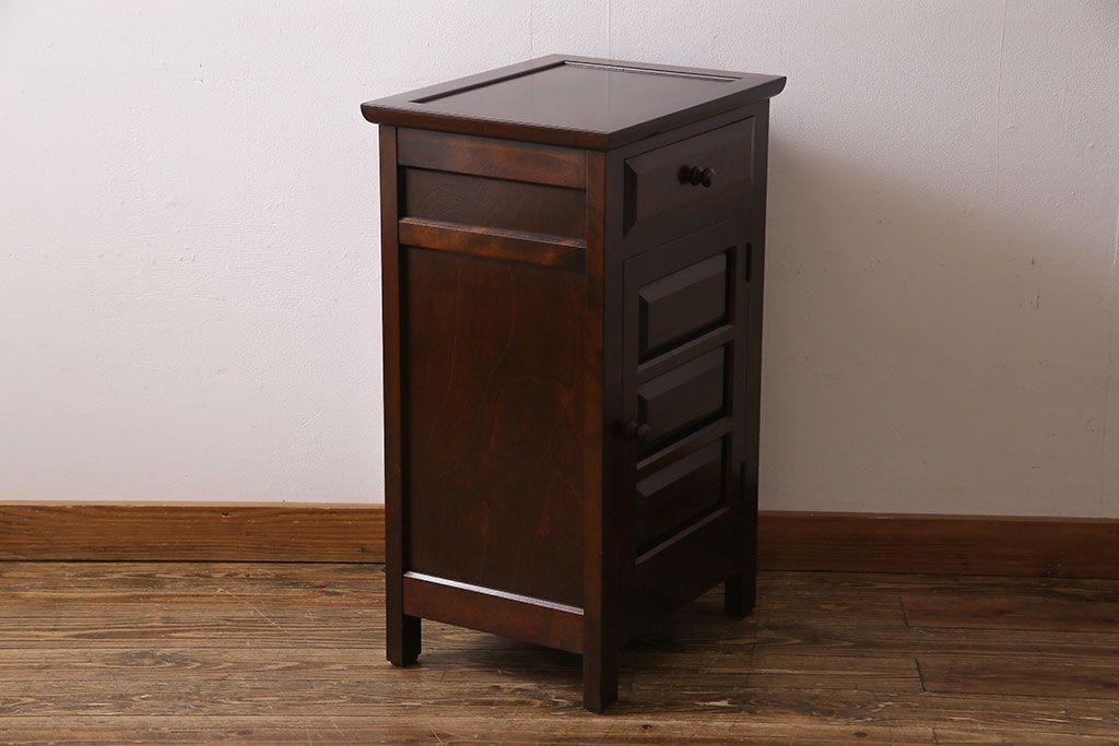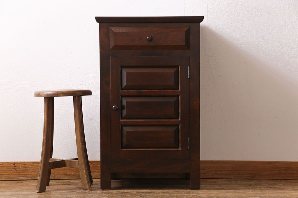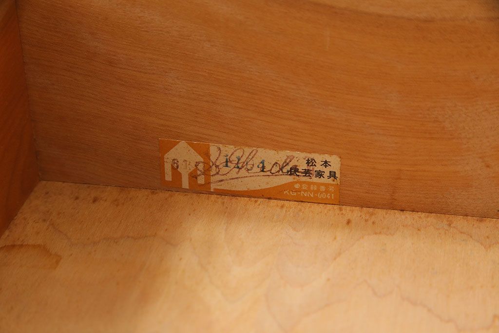 中古 松本民芸家具 シックな雰囲気漂うC型電話台(サイドチェスト、引き出し)(定価約11万円)