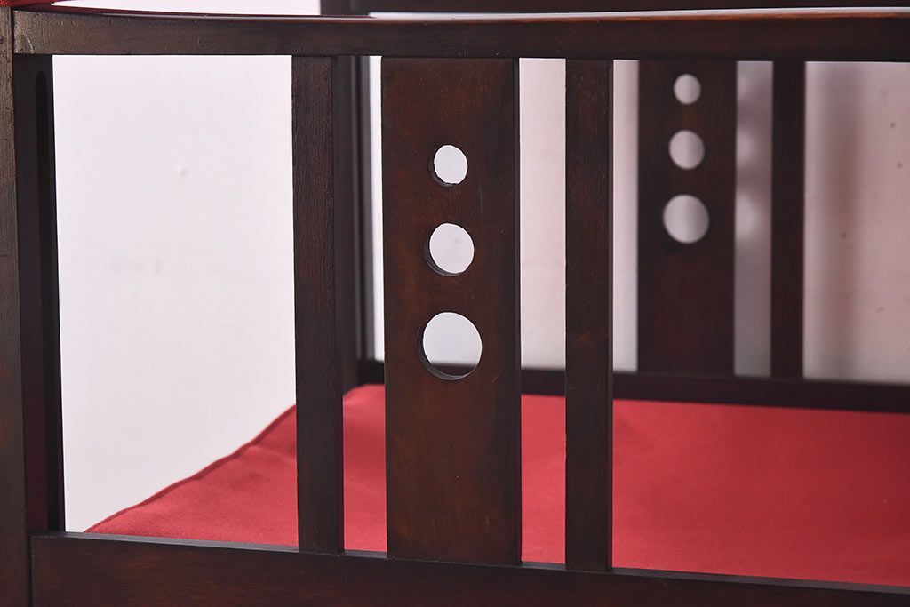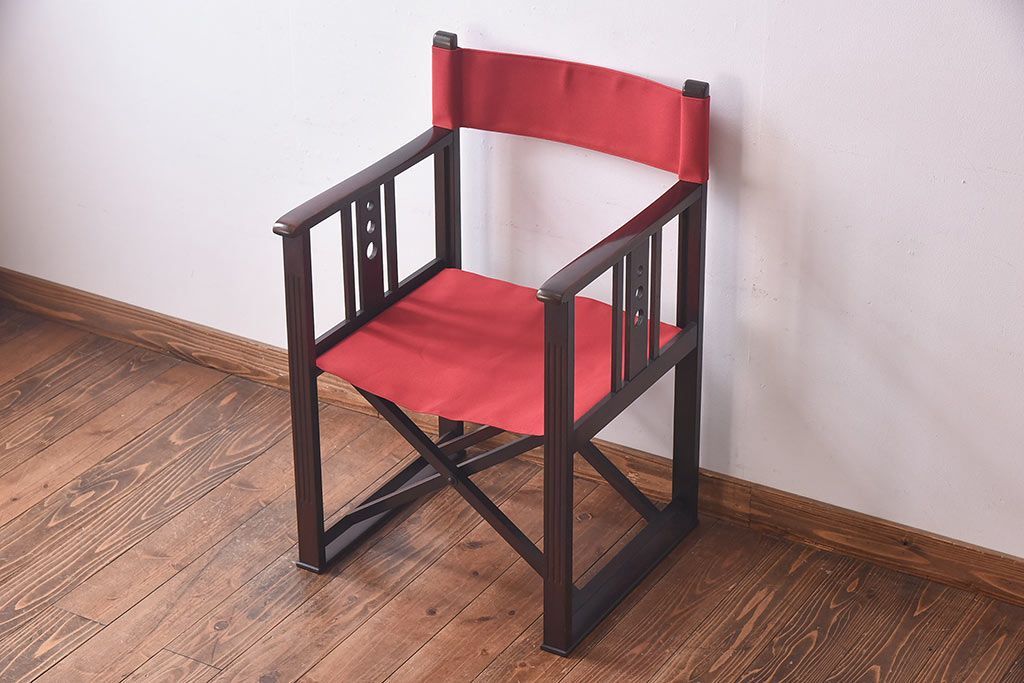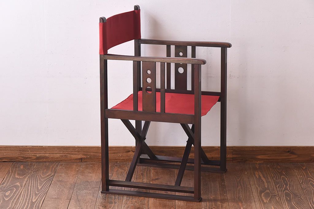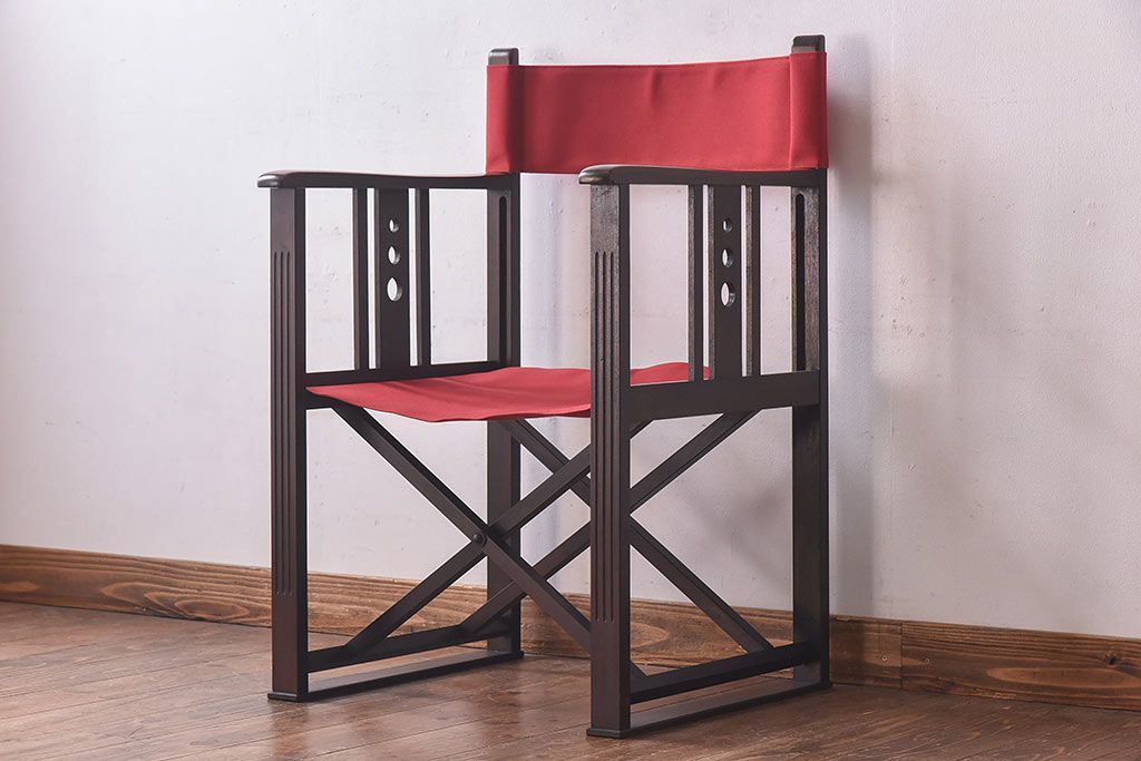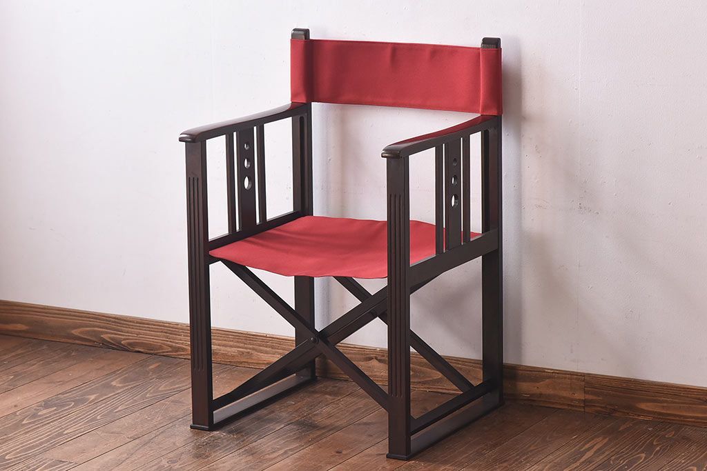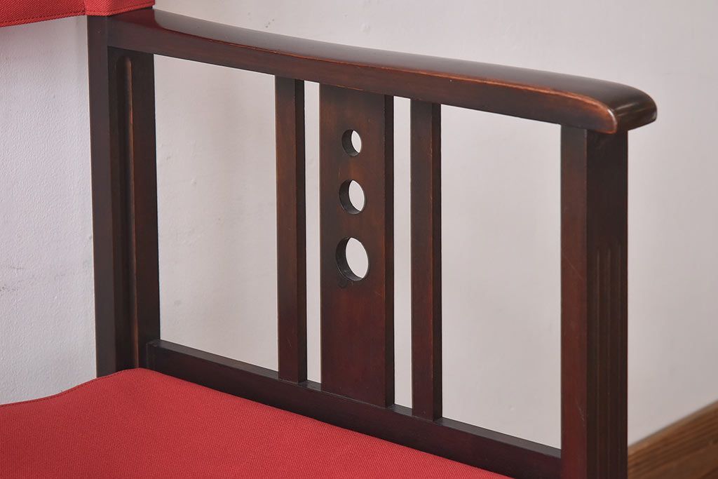 ラフジュ工房> 椅子・ベンチ> アームチェア > アンティーク家具 日本楽器・山葉(ヤマハ) 和モダンテイストの上質なフォールディングチェア・赤(文化椅子、折りたたみ式チェア、イス)(2)