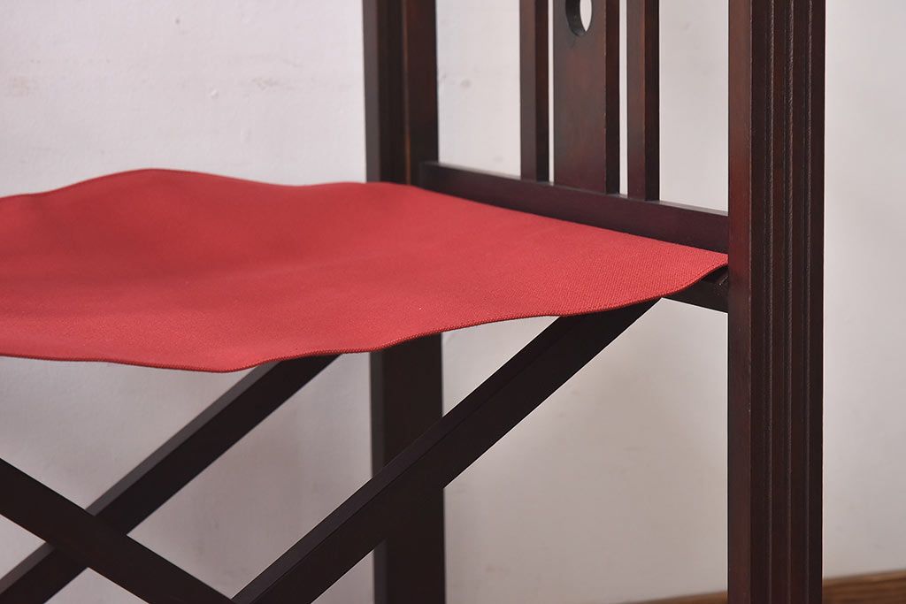 アンティーク家具 日本楽器・山葉(ヤマハ) 和モダンテイストの上質なフォールディングチェア・赤(文化椅子、折りたたみ式チェア、イス)(2)