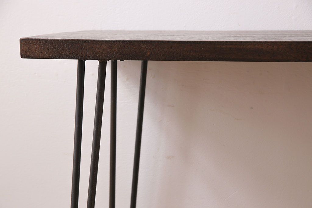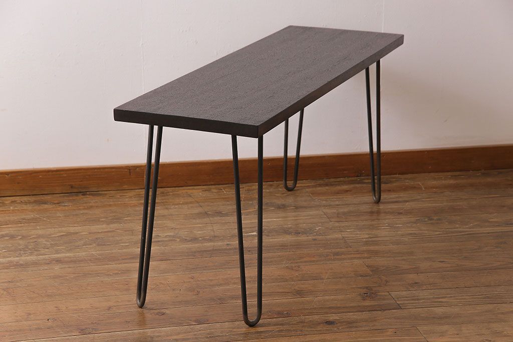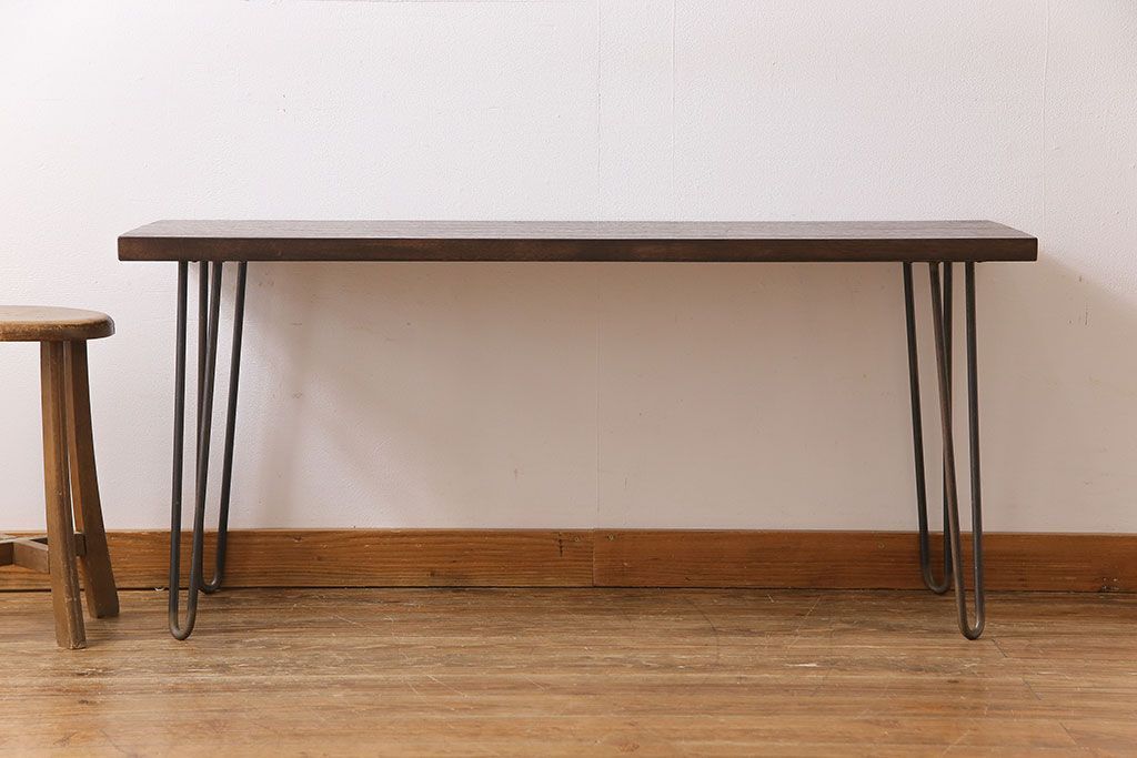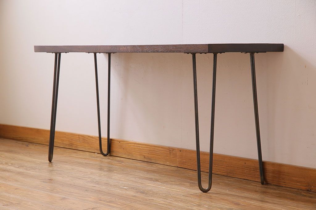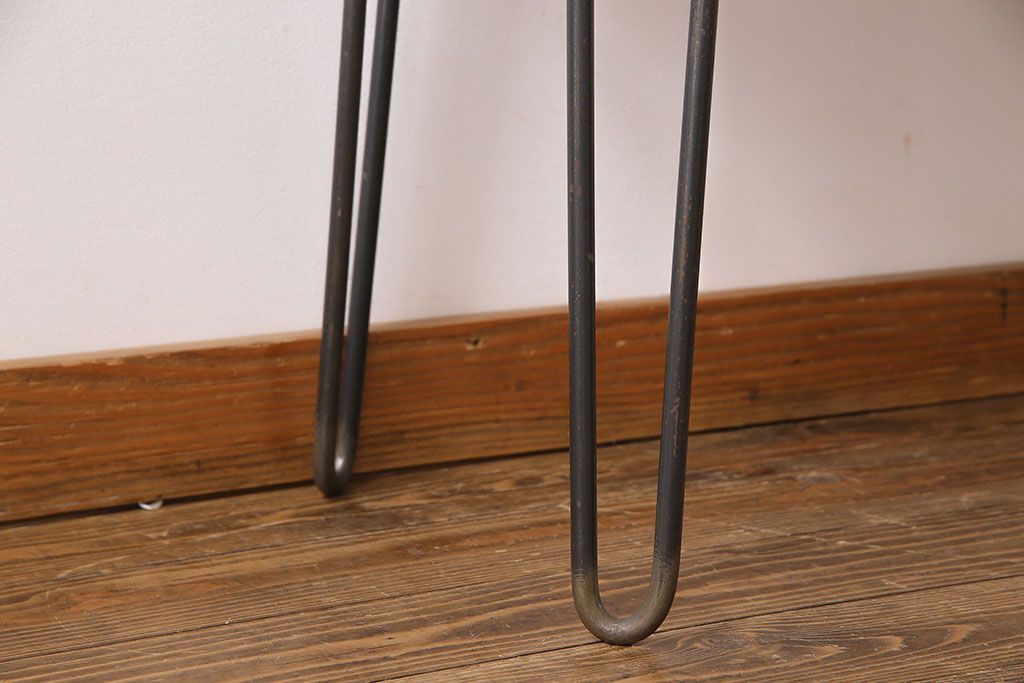 アンティーク雑貨 リメイク U字の脚が特徴的な古材を使った鉄脚テーブル(サイドテーブル、飾り台)
