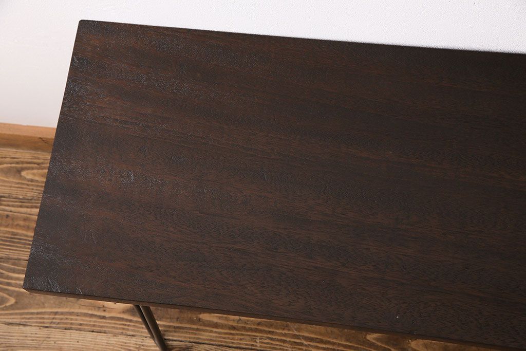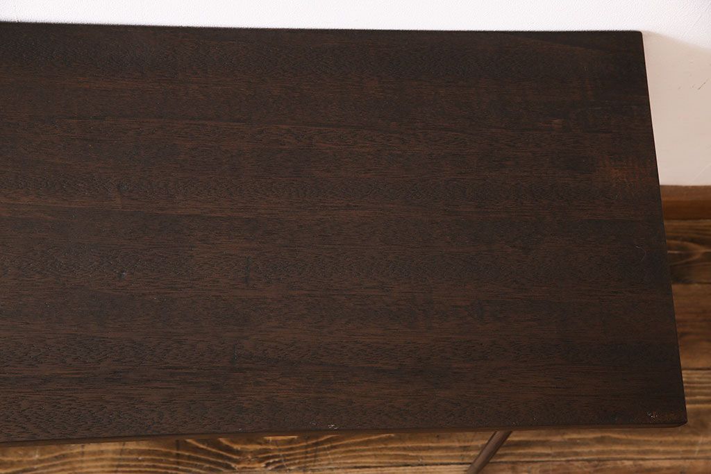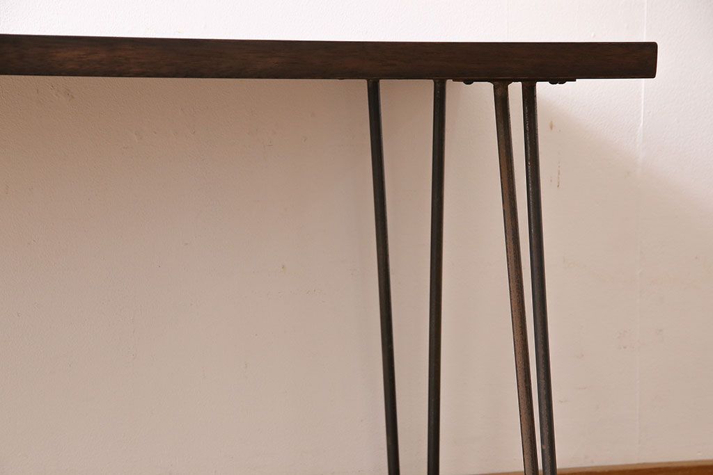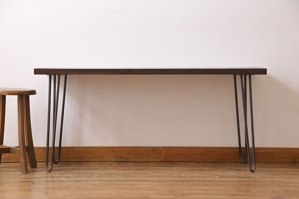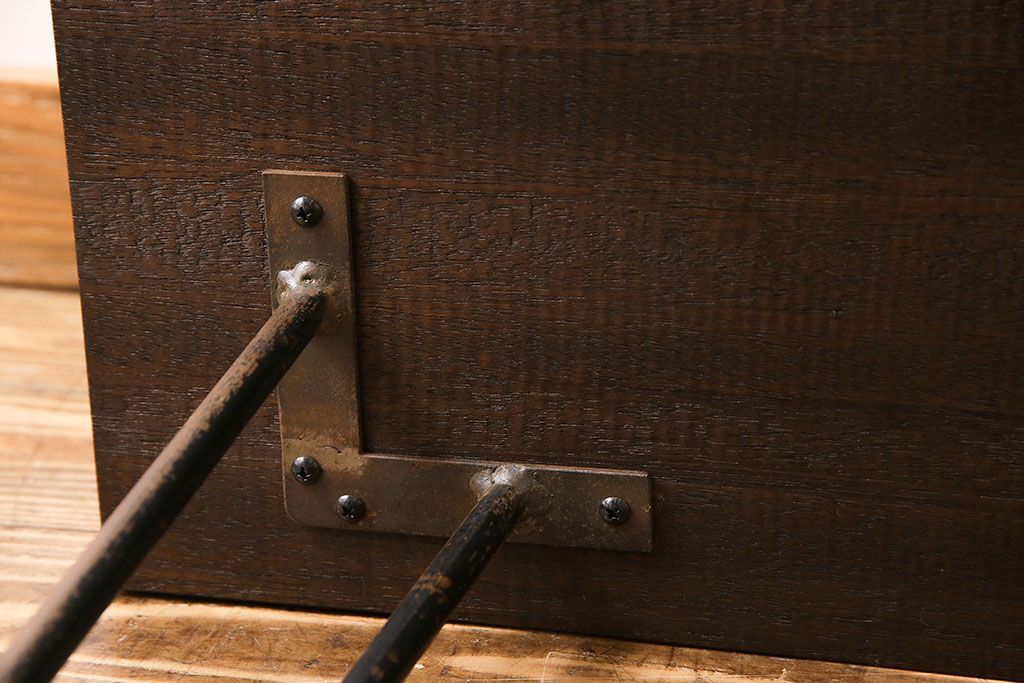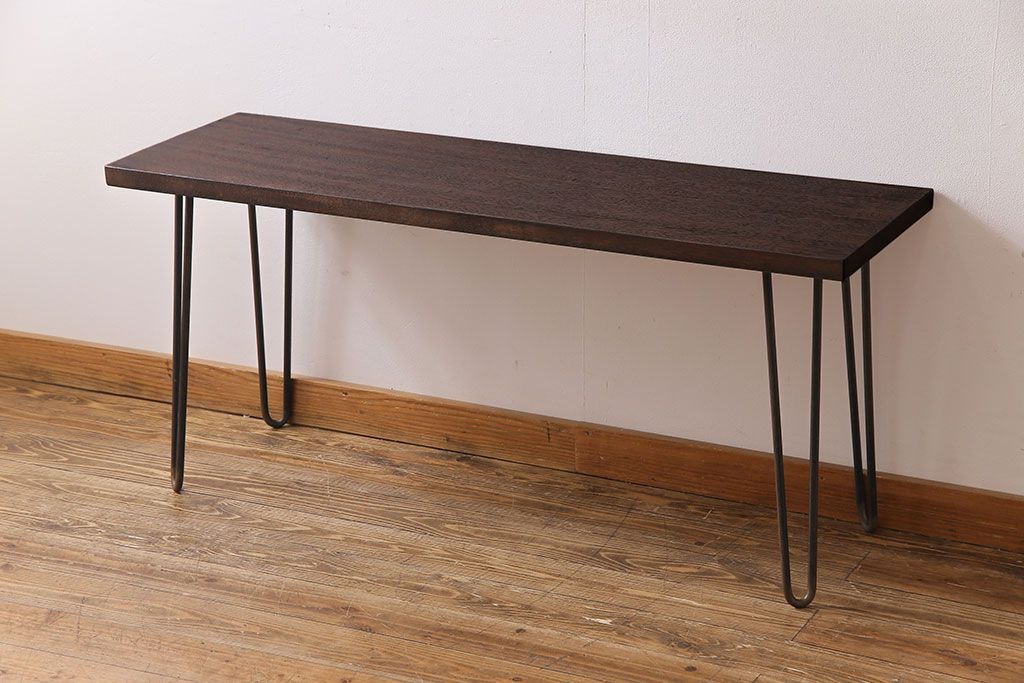 アンティーク雑貨 リメイク U字の脚が特徴的な古材を使った鉄脚テーブル(サイドテーブル、飾り台)