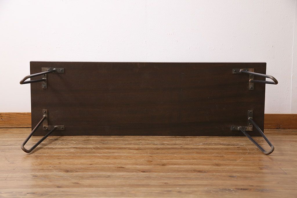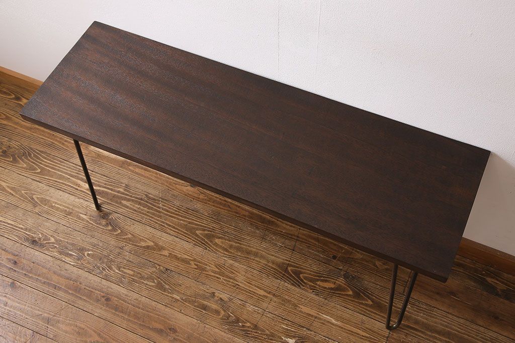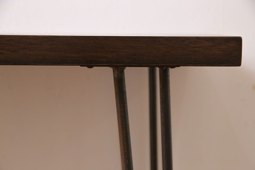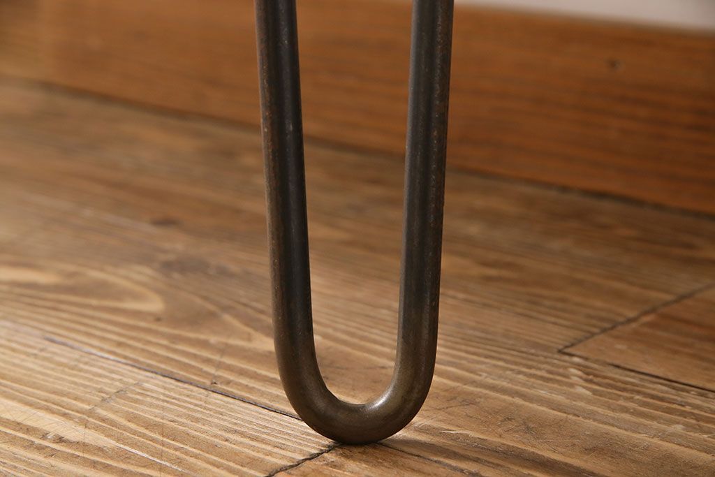 ラフジュ工房> 店舗什器 > アンティーク雑貨 リメイク U字の脚が特徴的な古材を使った鉄脚テーブル(サイドテーブル、飾り台)
