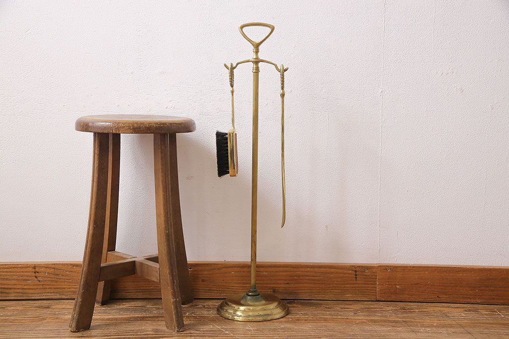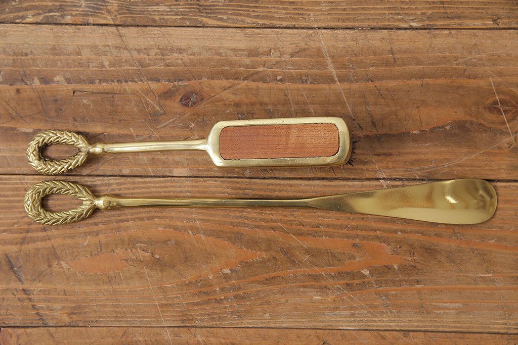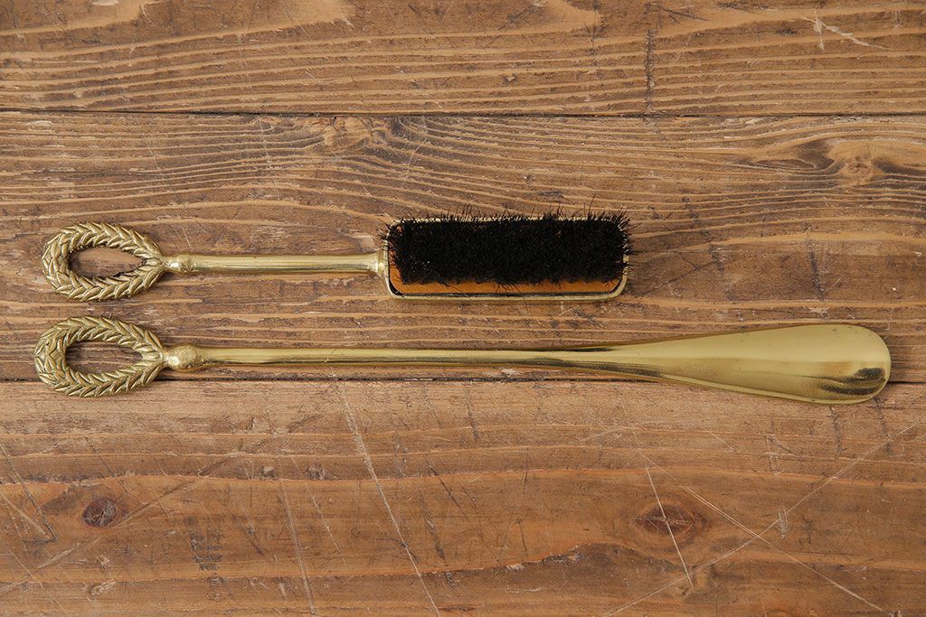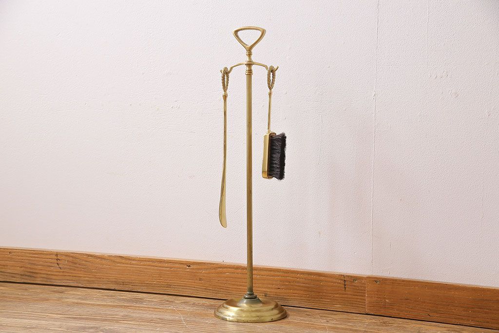 アンティーク雑貨 海外製 真鍮 靴べら・ブラシセットのスタンドラック