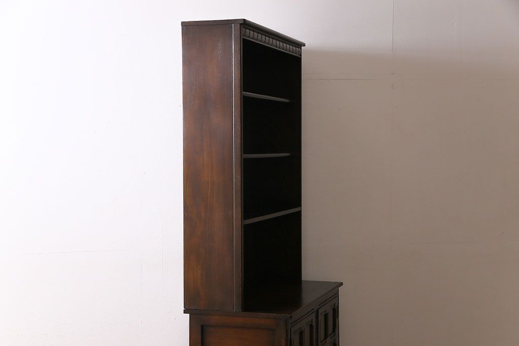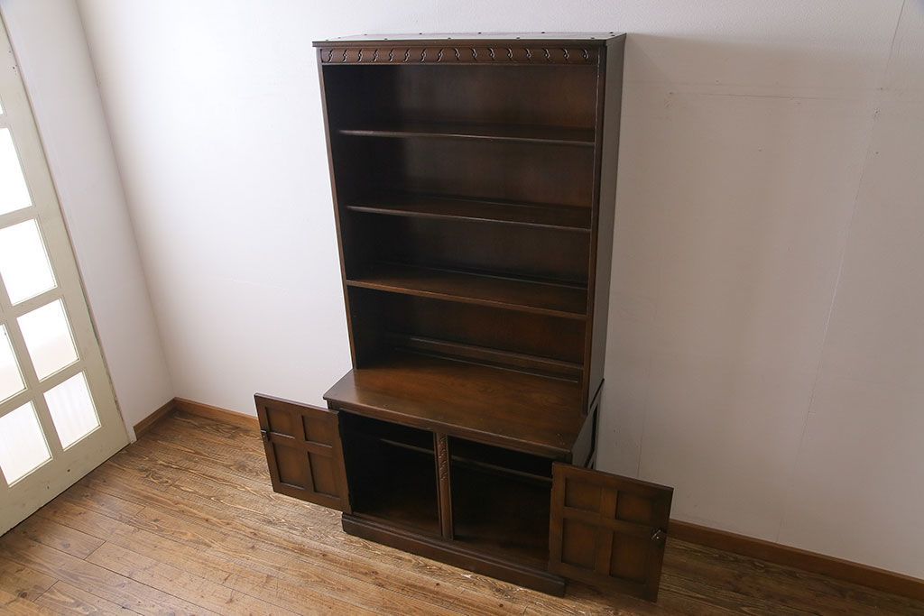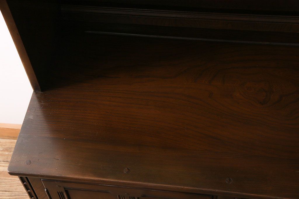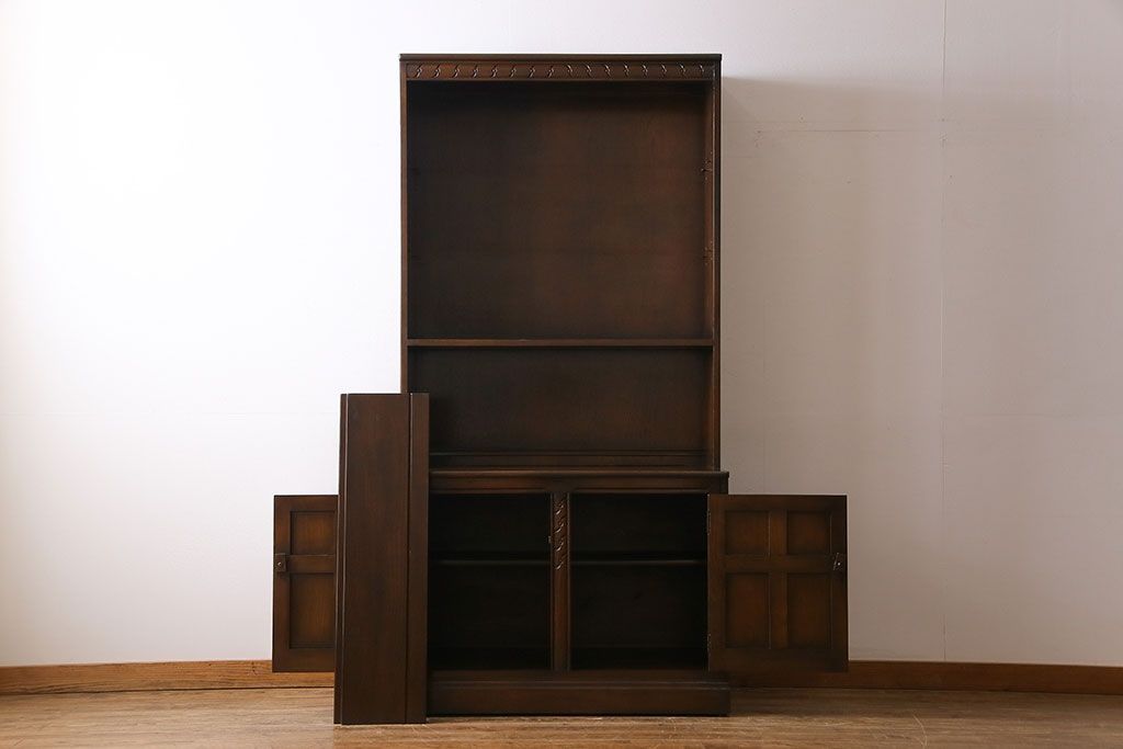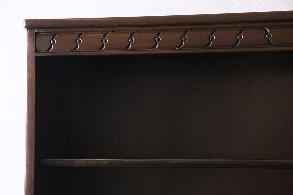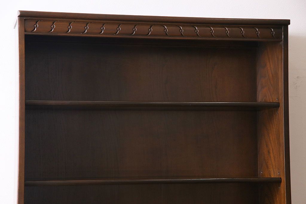 キャビネット・戸棚> 食器棚・カップボード > ヴィンテージ家具 ERCOL(アーコール) イギリスビンテージ Old Colonial(オールドコロニアル) ニレ材 気品と風格が漂うオープンブックケース(本棚、ブックシェルフ、食器棚)
