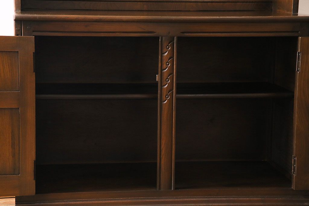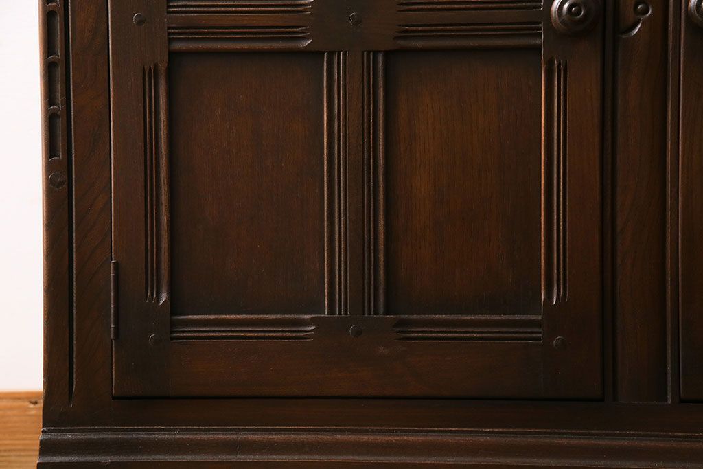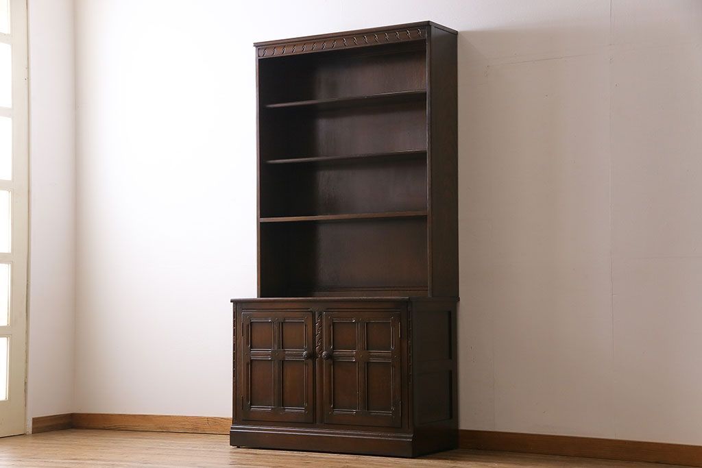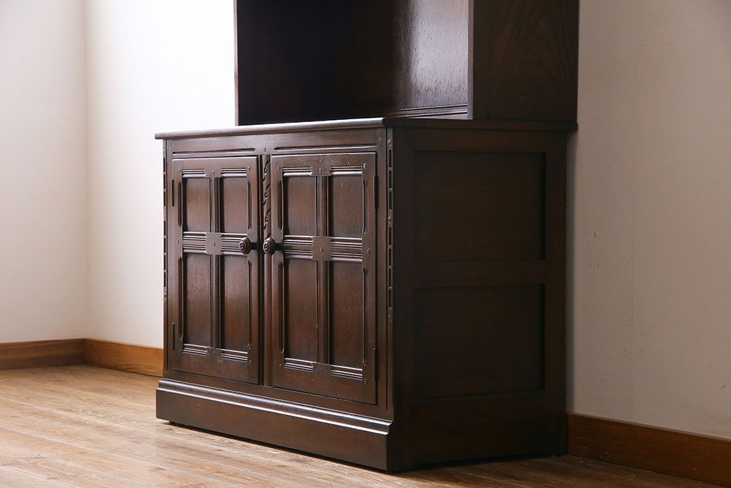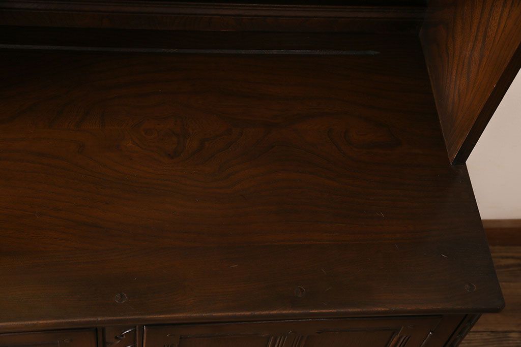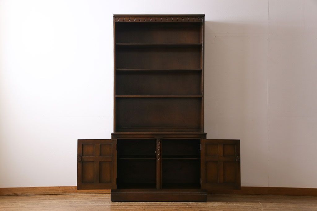 キャビネット・戸棚> 食器棚・カップボード > ヴィンテージ家具 ERCOL(アーコール) イギリスビンテージ Old Colonial(オールドコロニアル) ニレ材 気品と風格が漂うオープンブックケース(本棚、ブックシェルフ、食器棚)