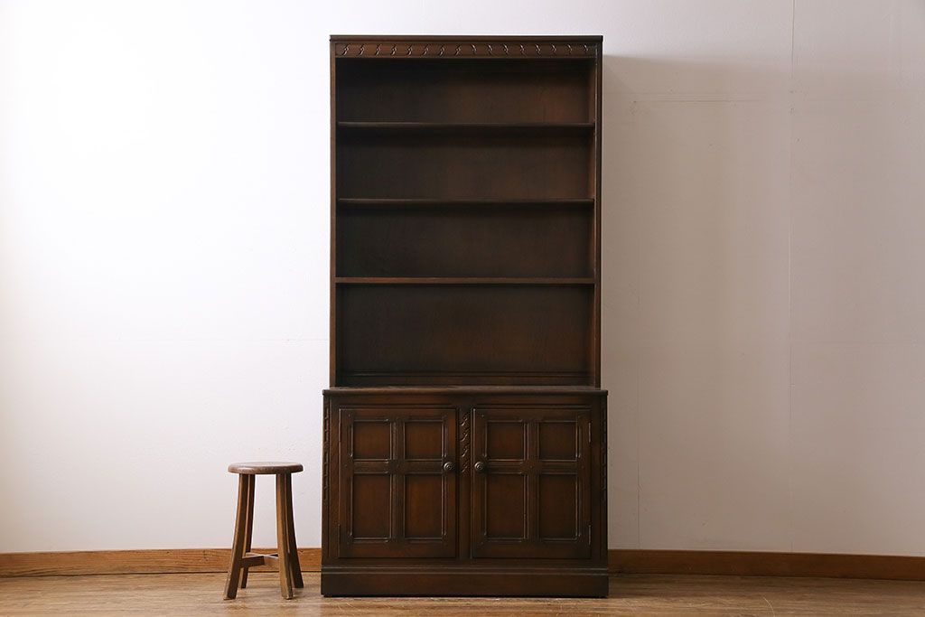 オープンラック・シェルフ> 本棚 > ヴィンテージ家具 ERCOL(アーコール) イギリスビンテージ Old Colonial(オールドコロニアル) ニレ材 気品と風格が漂うオープンブックケース(本棚、ブックシェルフ、食器棚)