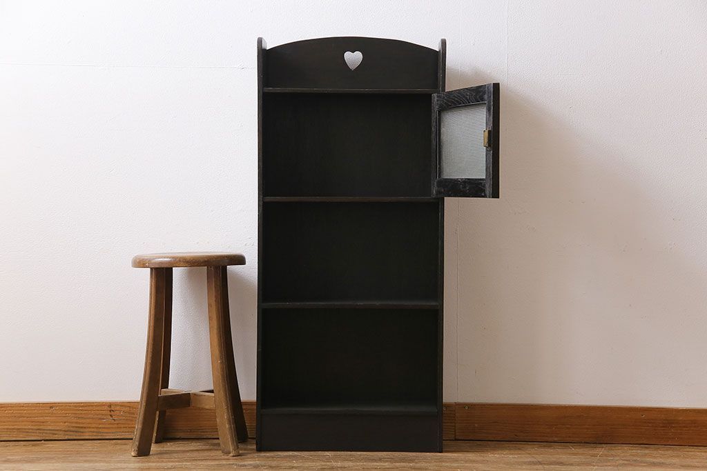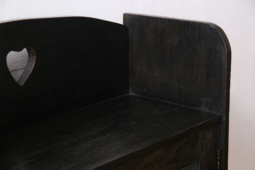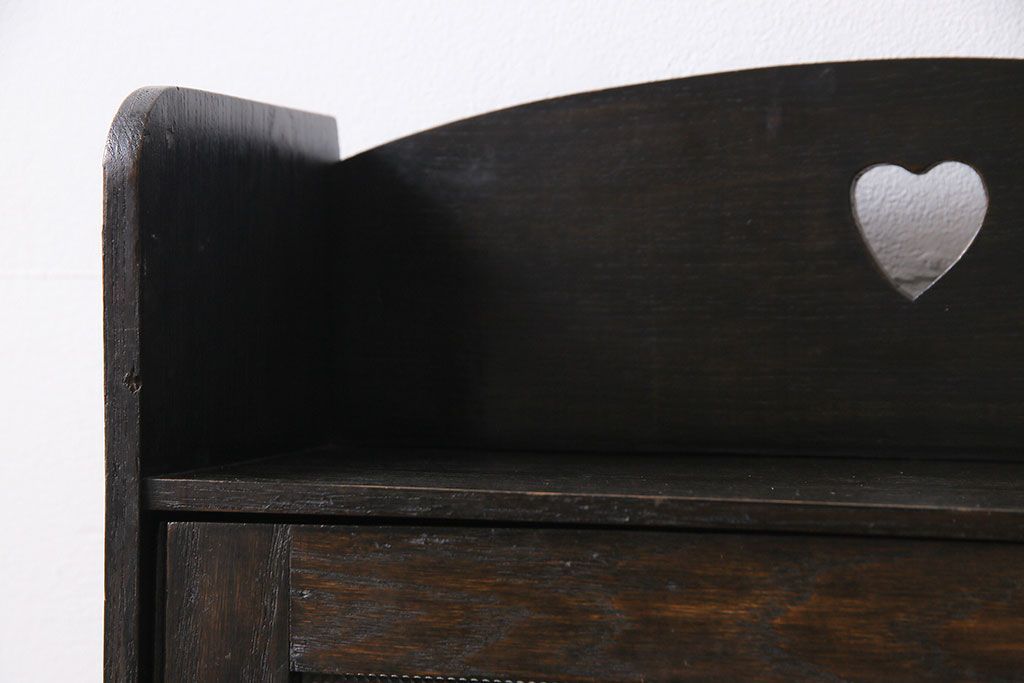 アンティーク家具 イギリスアンティーク オーク材 ハートの彫りが愛らしい素朴な本箱(本棚、収納棚、飾り棚)