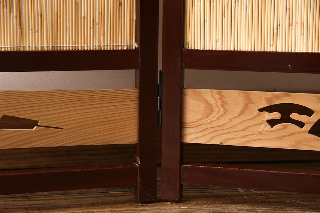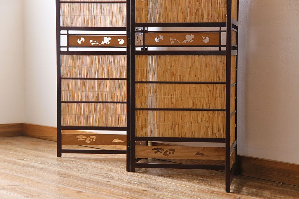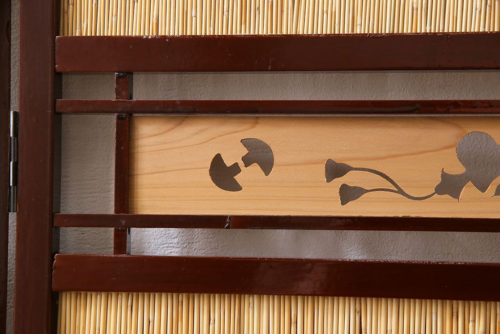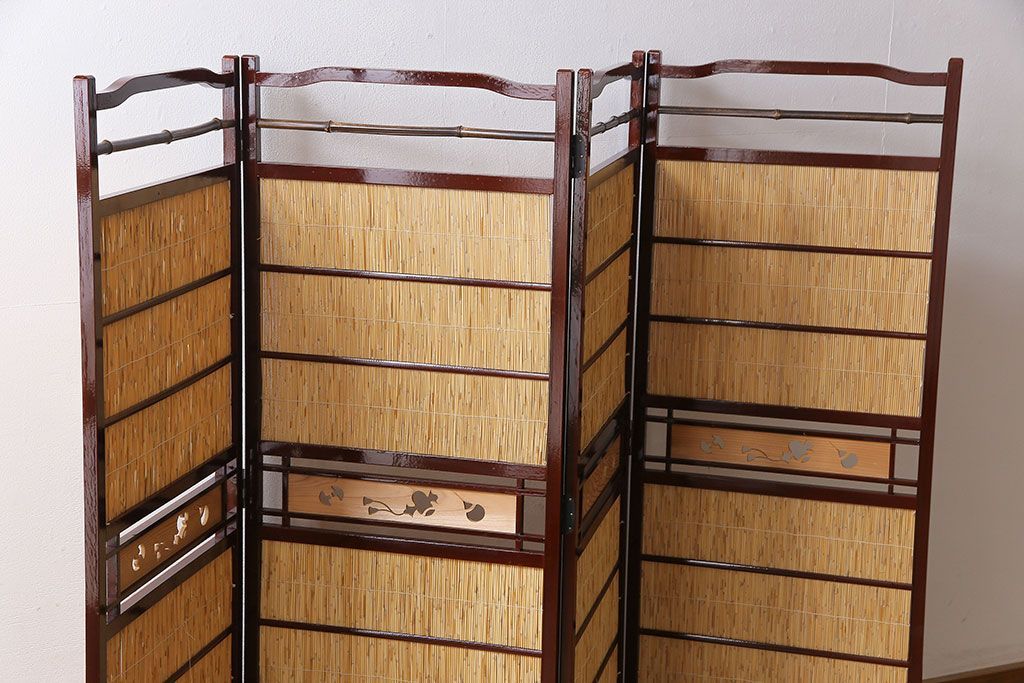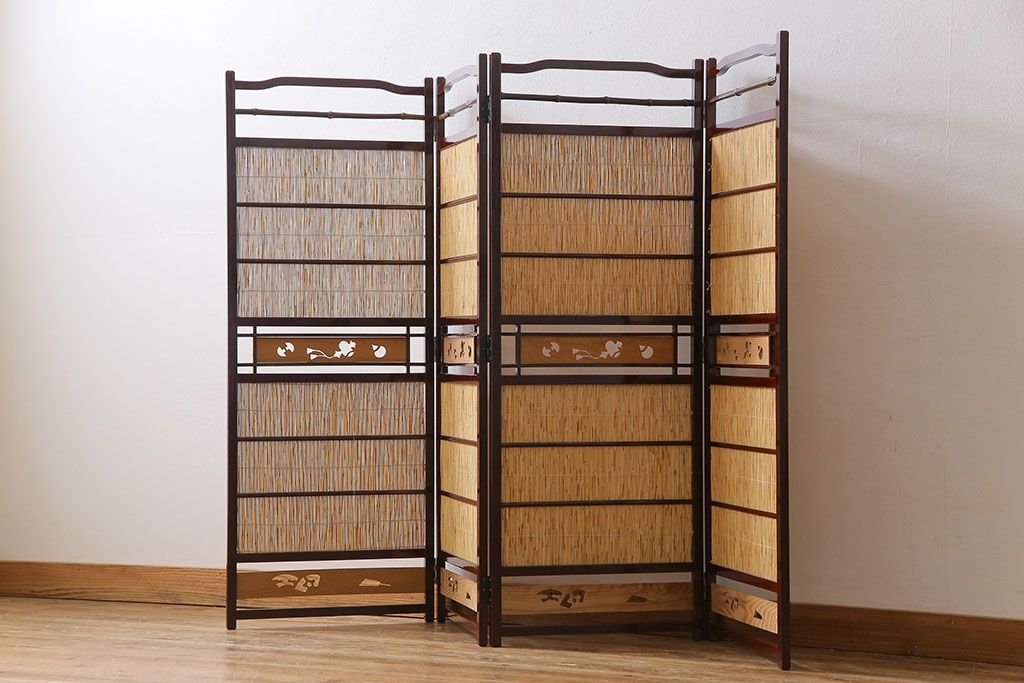 ラフジュ工房> 衝立・パーテーション> 折りたたみパーテーション > アンティーク雑貨 昭和中期 透かし彫りが上品な四連折り畳み式パーテーション(衝立、仕切り)