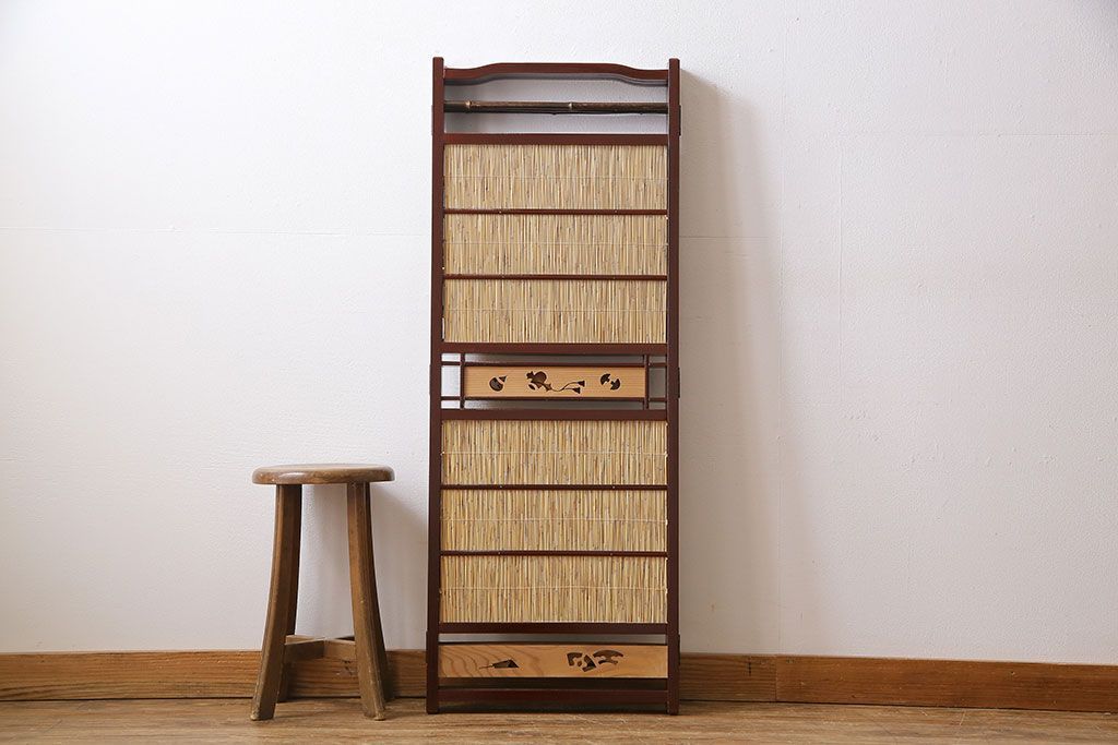 ラフジュ工房> 衝立・パーテーション > アンティーク雑貨 昭和中期 透かし彫りが上品な四連折り畳み式パーテーション(衝立、仕切り)