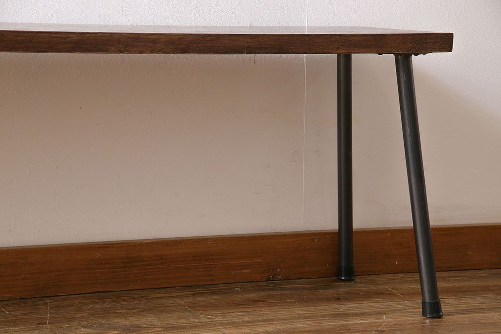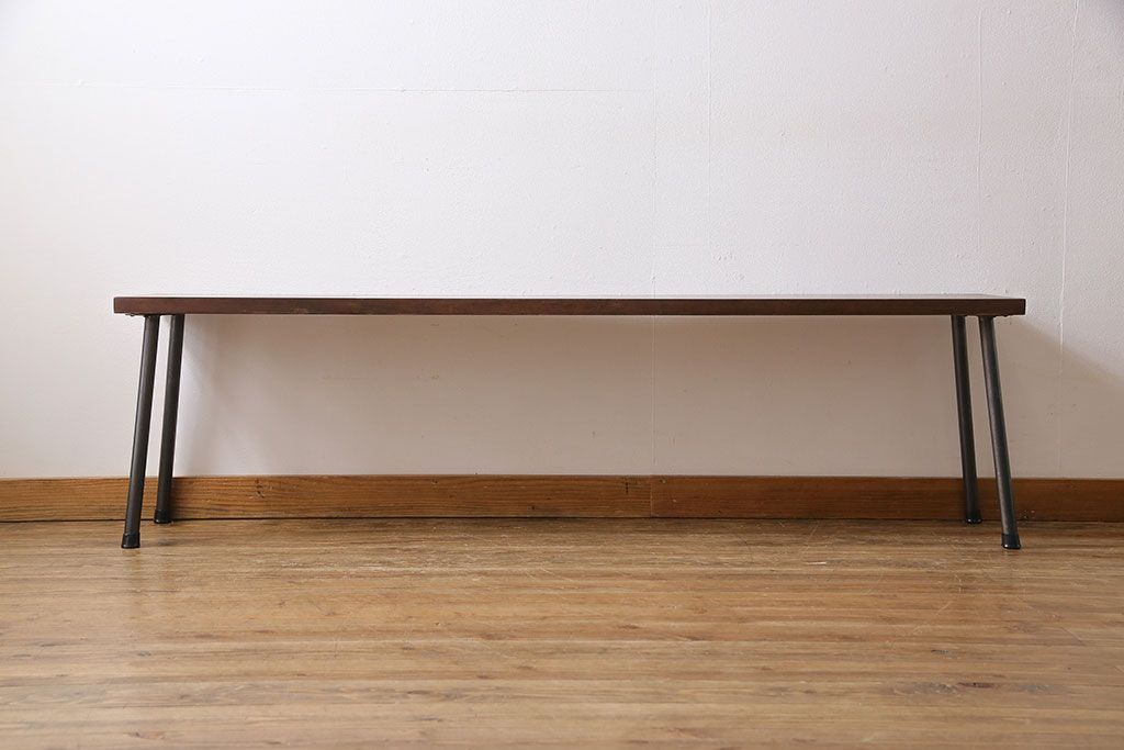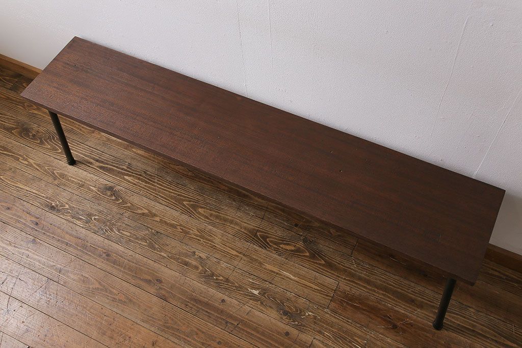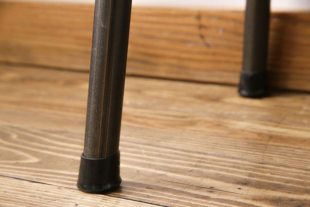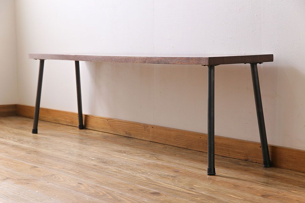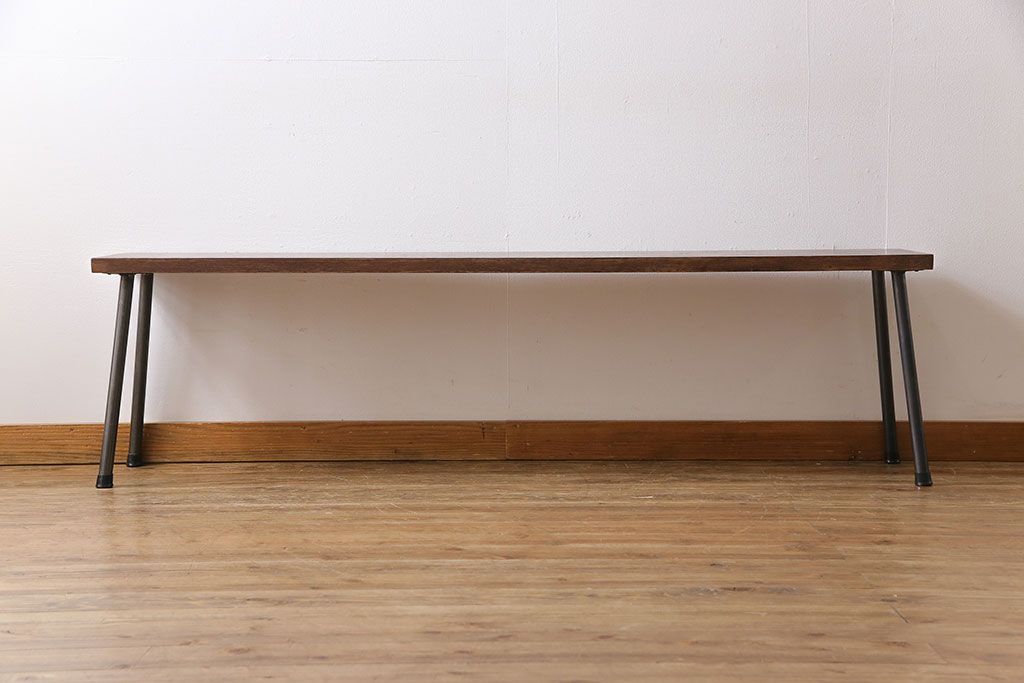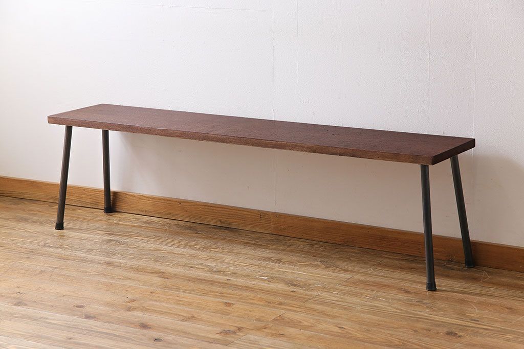 アンティーク家具 昭和中期 古材使用 シンプルなデザインが使いやすい鉄脚ベンチ(板座チェア、椅子)(1)