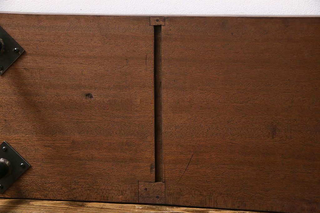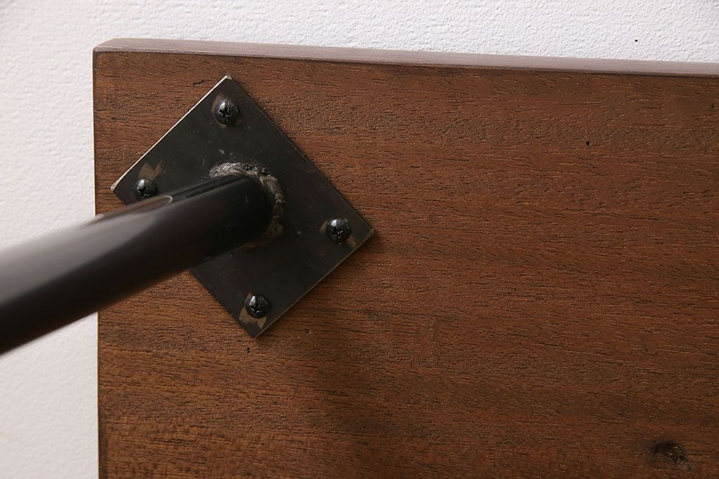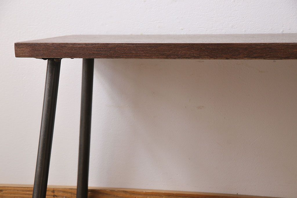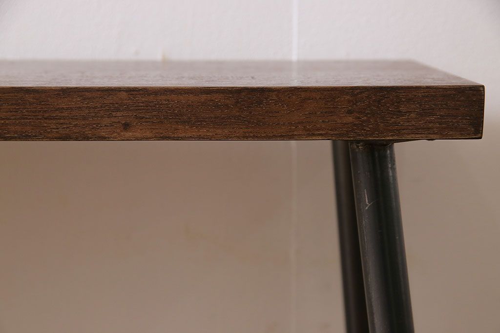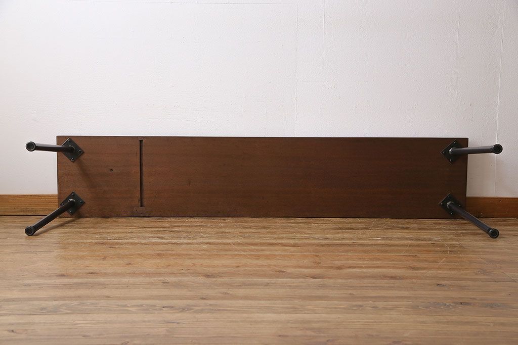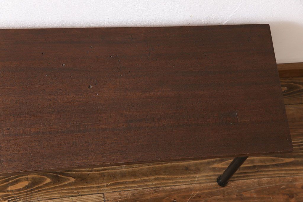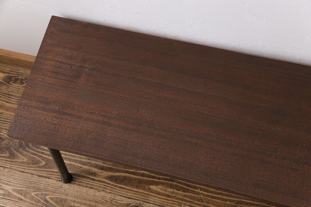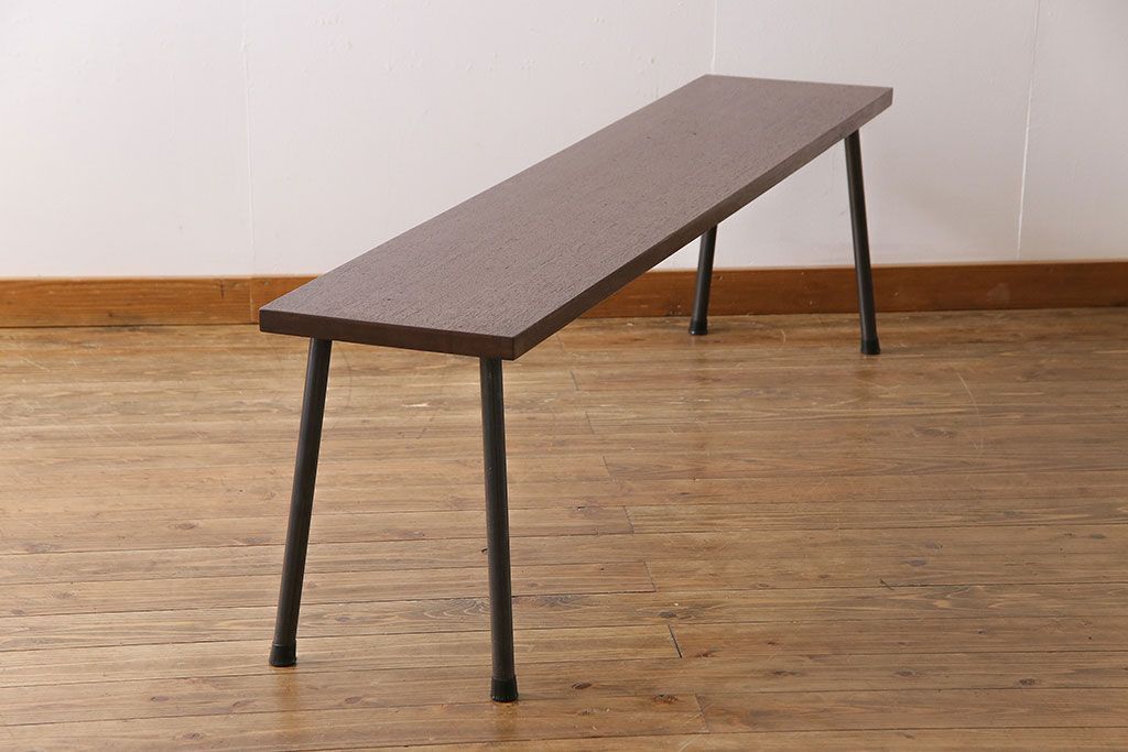 アンティーク家具 昭和中期 古材使用 シンプルなデザインが使いやすい鉄脚ベンチ(板座チェア、椅子)(1)