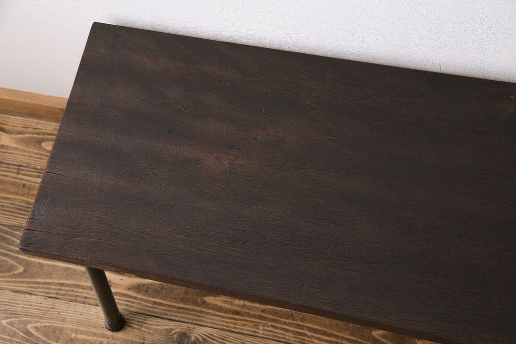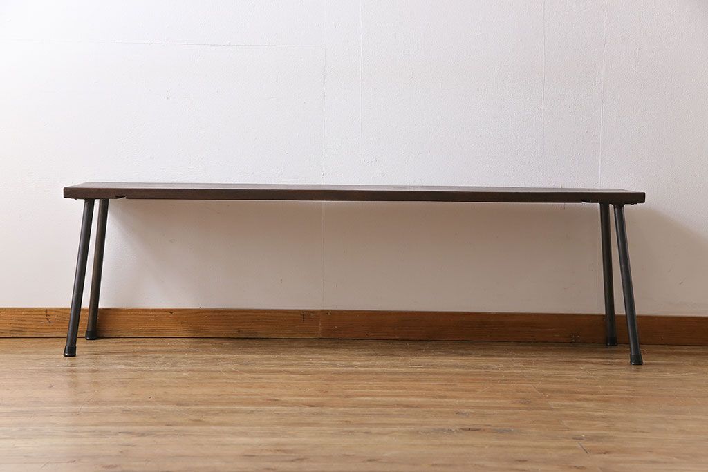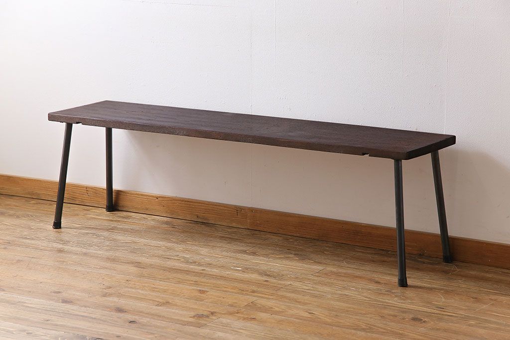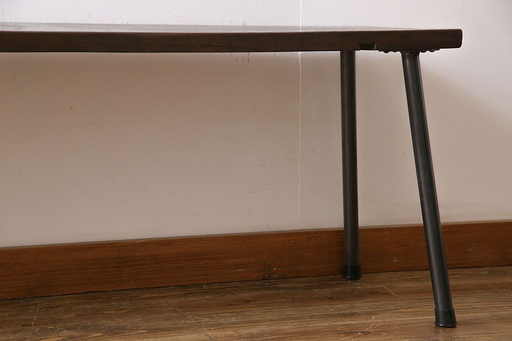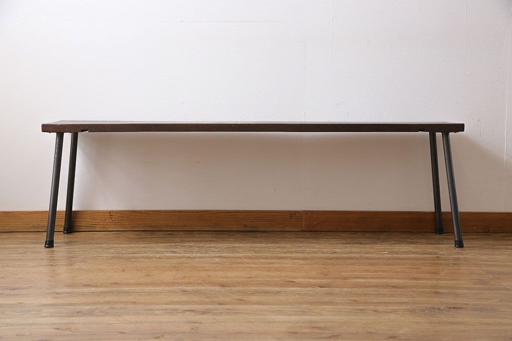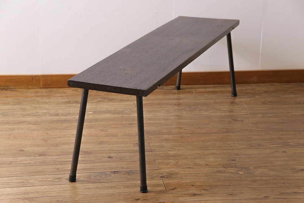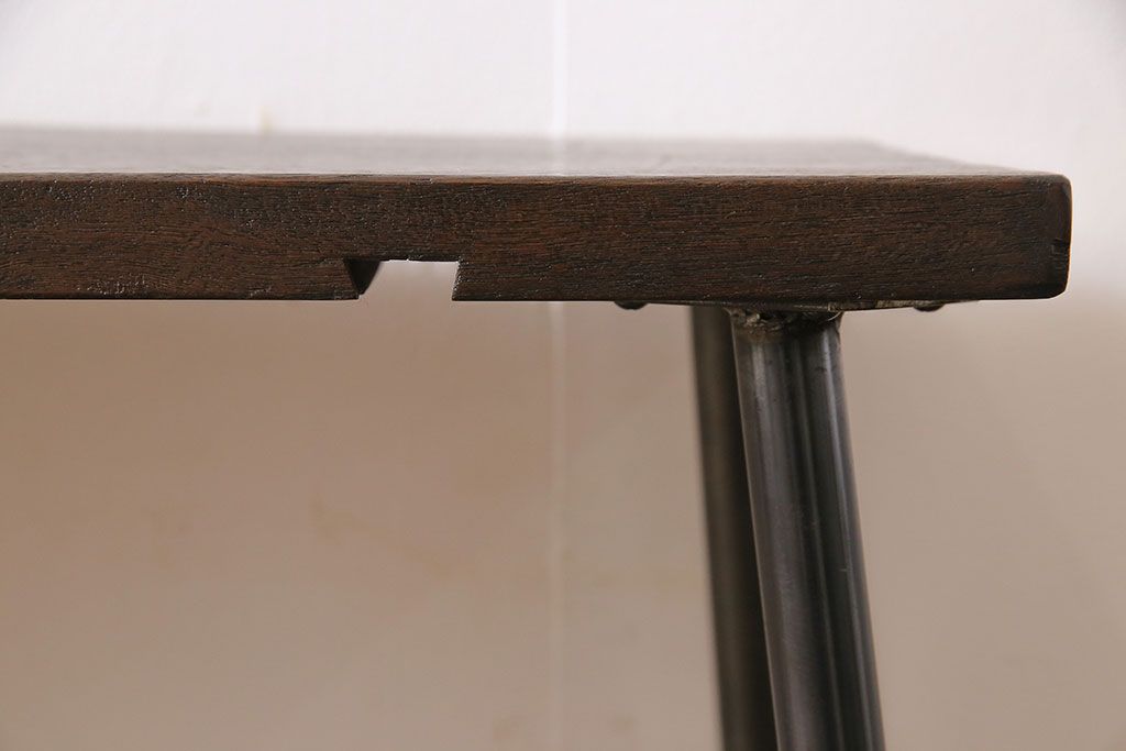 アンティーク家具 昭和中期 古材使用 シンプルなデザインが使いやすい鉄脚ベンチ(板座チェア、椅子)(2)