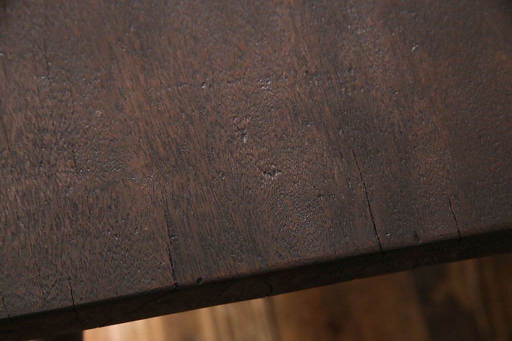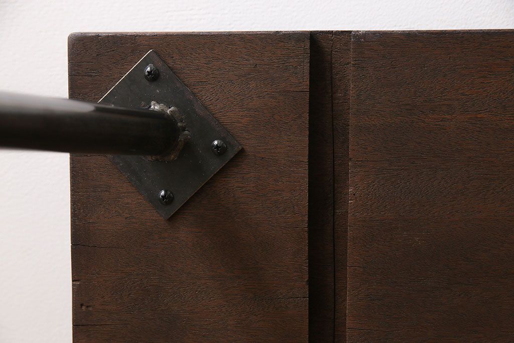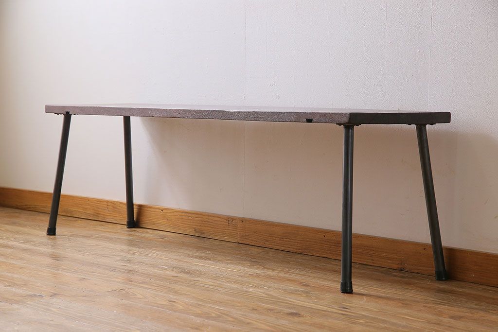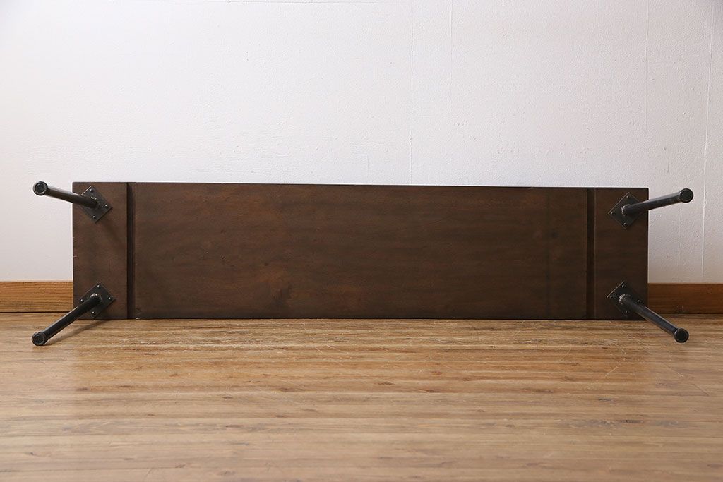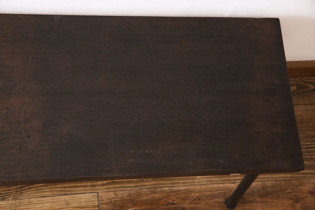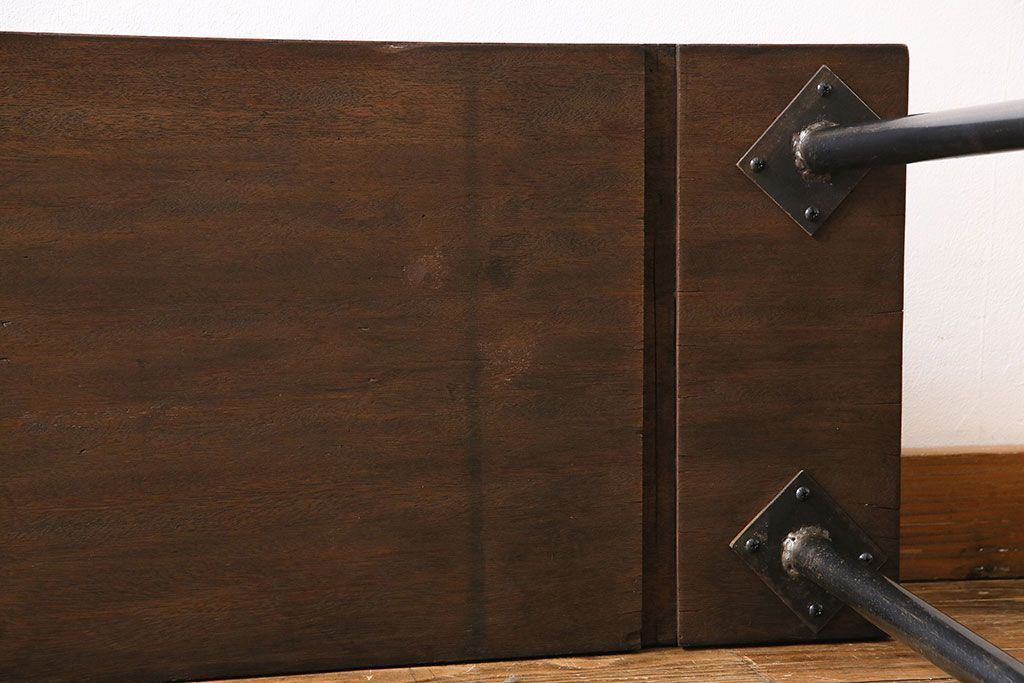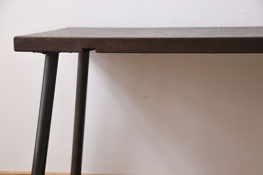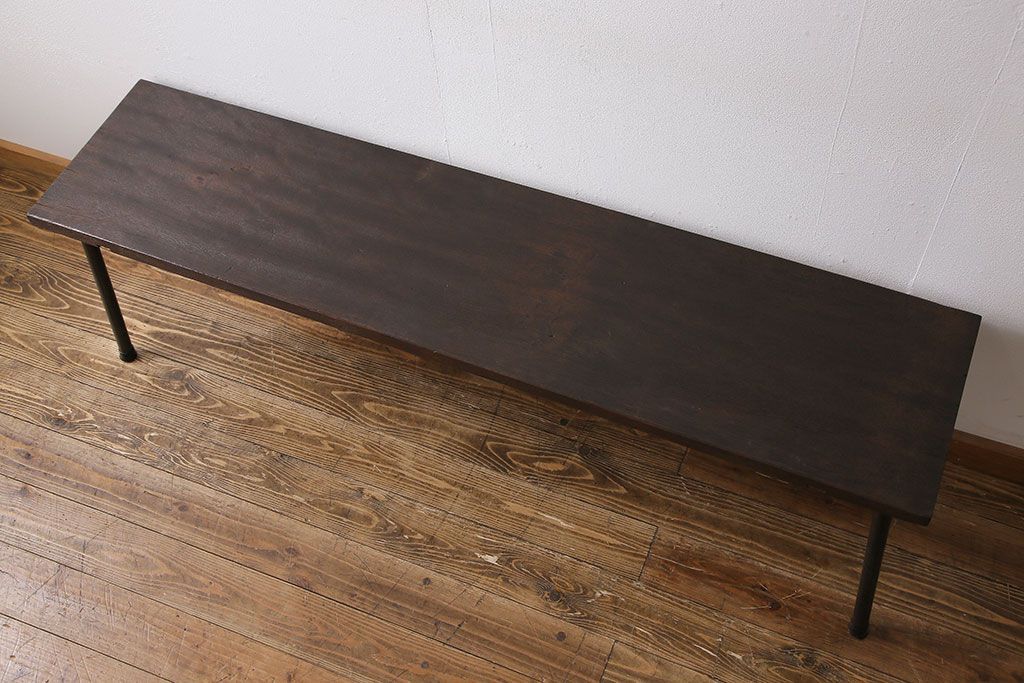 アンティーク家具 昭和中期 古材使用 シンプルなデザインが使いやすい鉄脚ベンチ(板座チェア、椅子)(2)